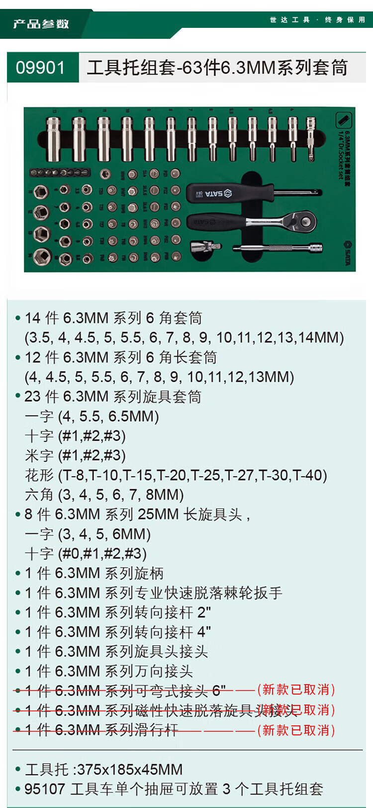 Shida tool holder set socket wrench pliers file screwdriver socket quick wrench 09901-09915 63 pieces 6.3MM series socket 09901