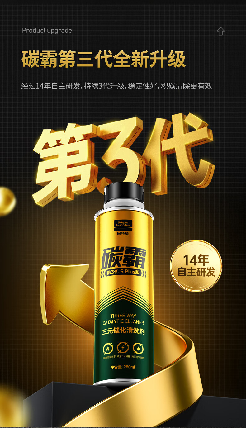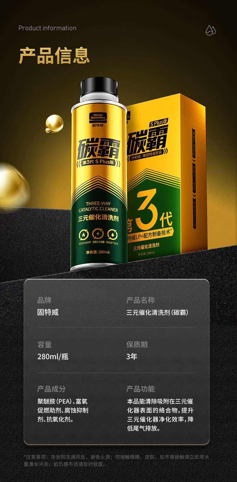 Goodway three-way catalytic converter fuel treasure two-in-one carbon deposition cleaning agent, deep cleaning inside the engine, gasoline addition, gold three-way 3-way bottle, 50,000-120,000 kilometers