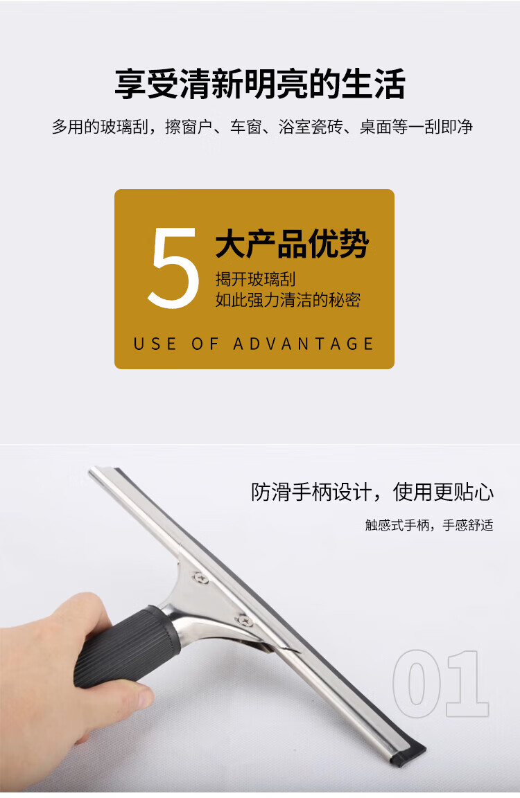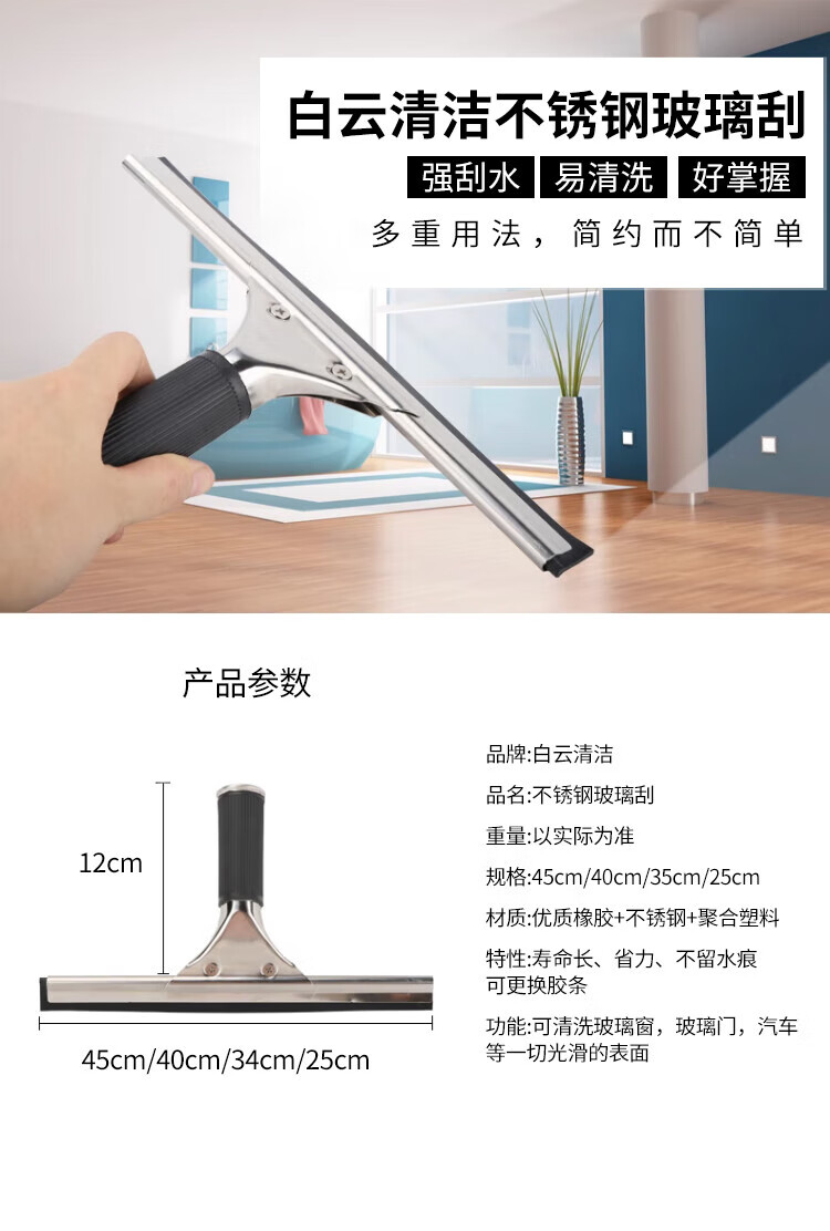 Baiyun Cleaning glass wiper window cleaner household stainless steel telescopic scraper scraper car window property cleaning stainless steel handle 35CM scraper strip