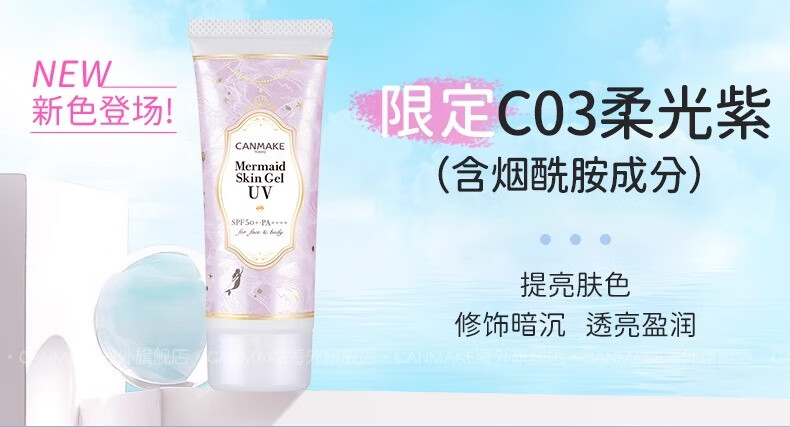 CANMAKE Makeup Primer Ida Mermaid Isolation Cream Pore Primer Hide Pores Oil Control Refreshing Lasting Makeup Waterproof Holiday Gift. C03# Soft Light Purple