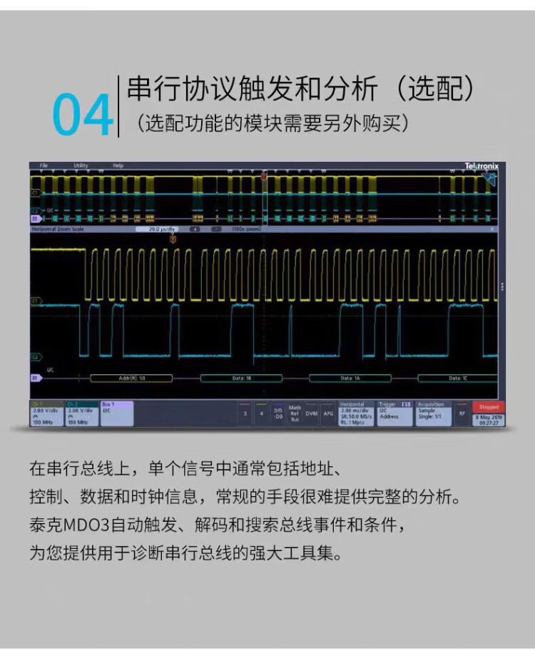 TEKTRONIX Tektronix MDO34 four-channel mixed domain oscilloscope Tektronix oscilloscope touch, 100M-1G high bandwidth MDO34 3-BW-200