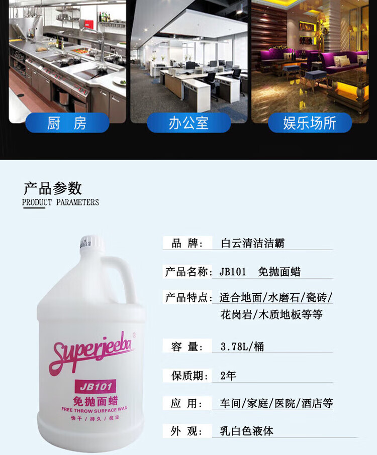 Baiyun Clean and Clean Polishing Wax-Free Marble Granite Glue Floor Epoxy Polyurethane Terrazzo Floor Ceramic Tile Maintenance and Care Glazing Wax 4 bottles (one box)/15.12L.