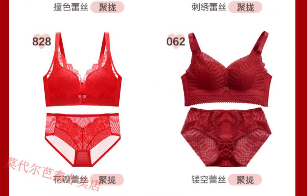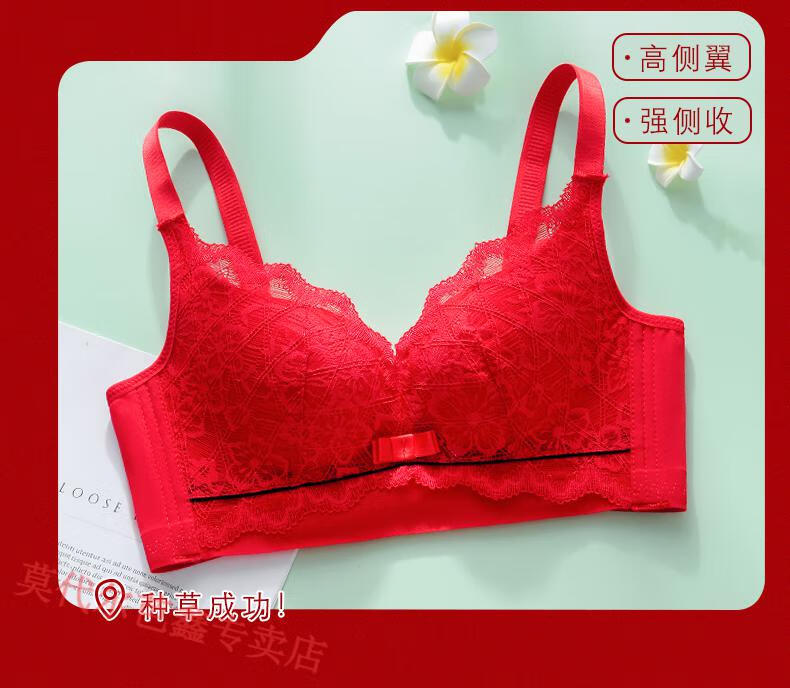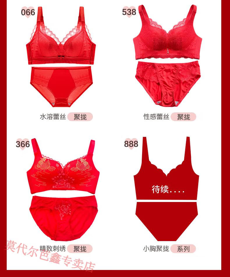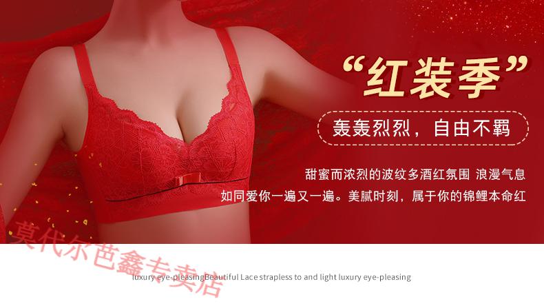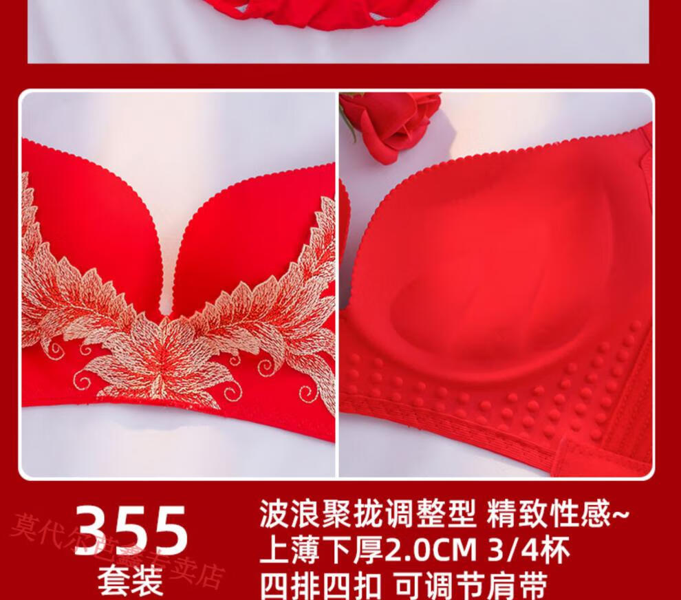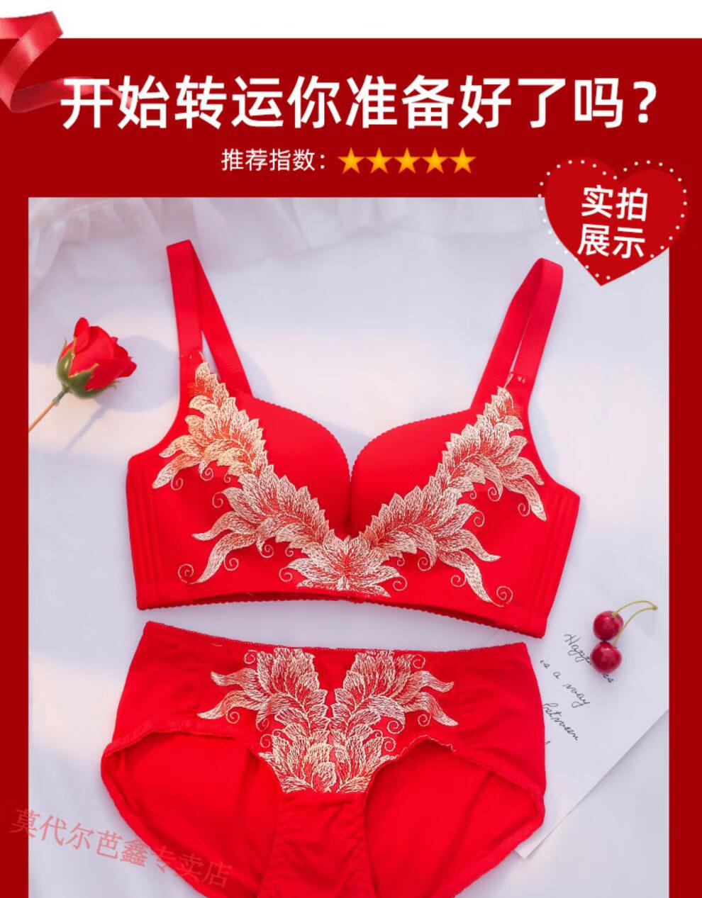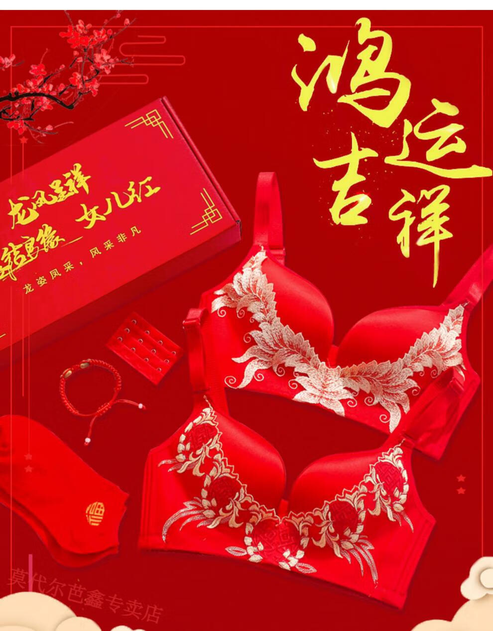 Modal Year of the Horse zodiac year Qiji red underwear for women with small breasts gathered New Year bride wedding without wire bra and panties set 355 big red suit + gift package set 85B 38