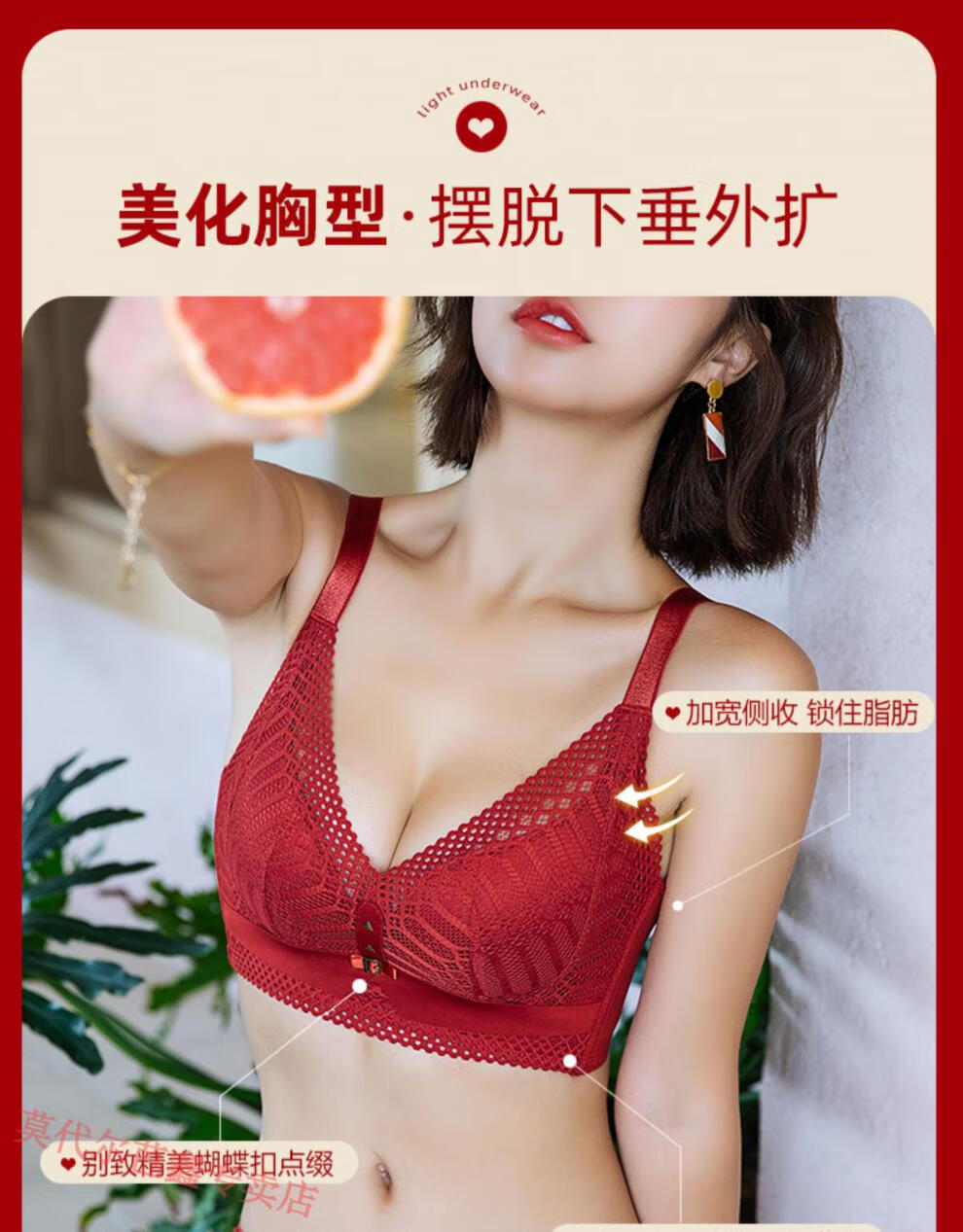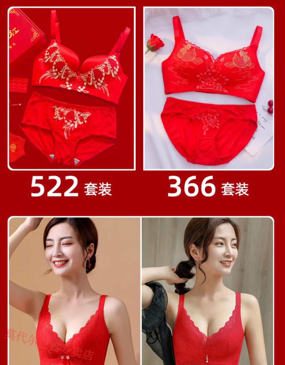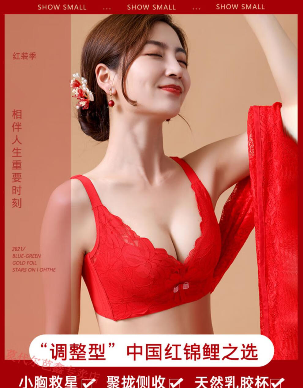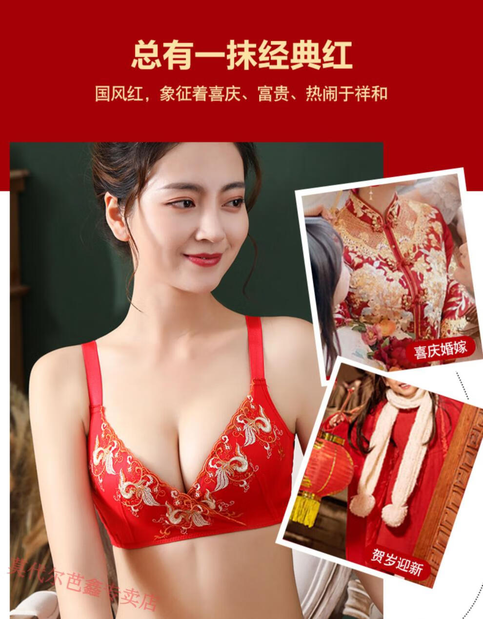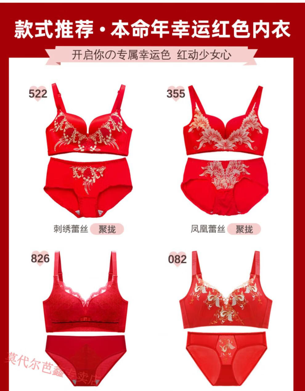 Modal Year of the Horse zodiac year Qiji red underwear for women with small breasts gathered New Year bride wedding without wire bra and panties set 355 big red suit + gift package set 85B 38