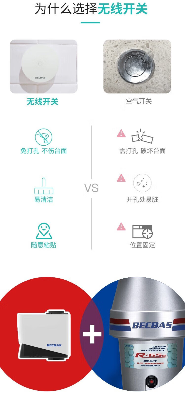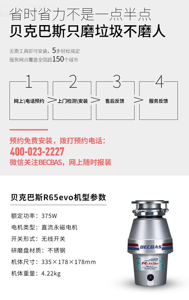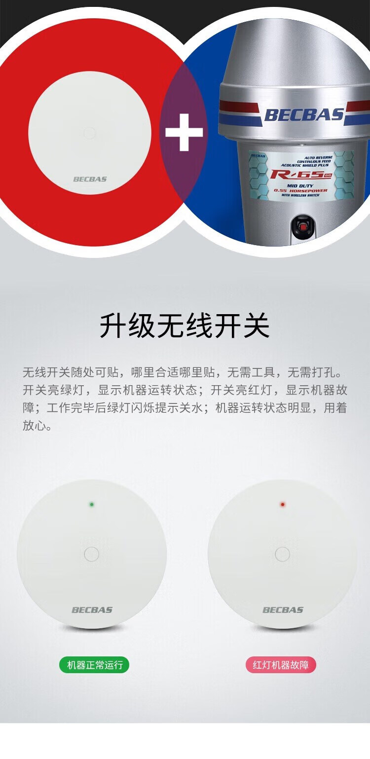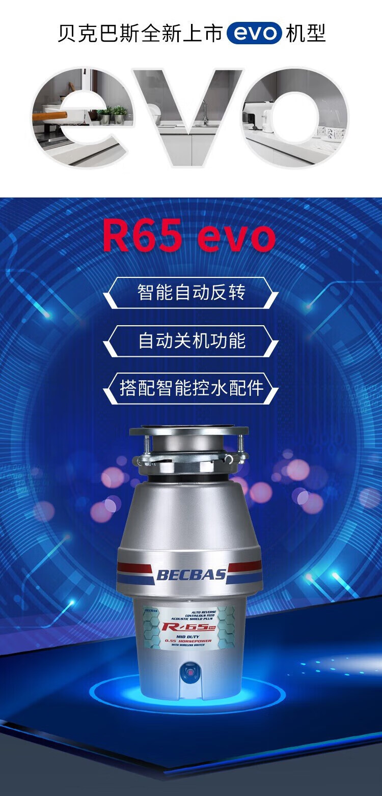 BECBAS BECBAS R65 garbage disposal kitchen grinder automatic reverse BECBAS R65