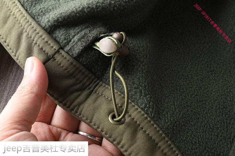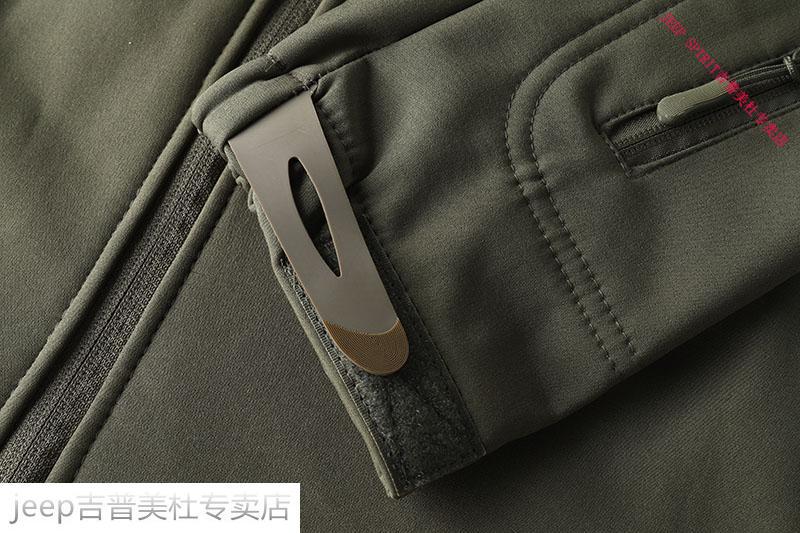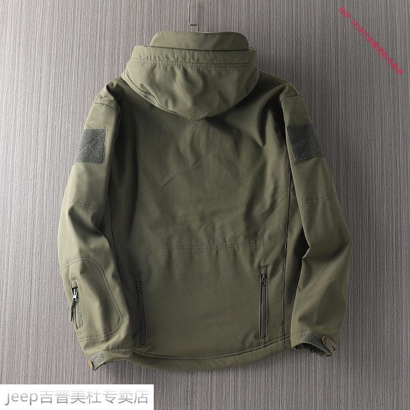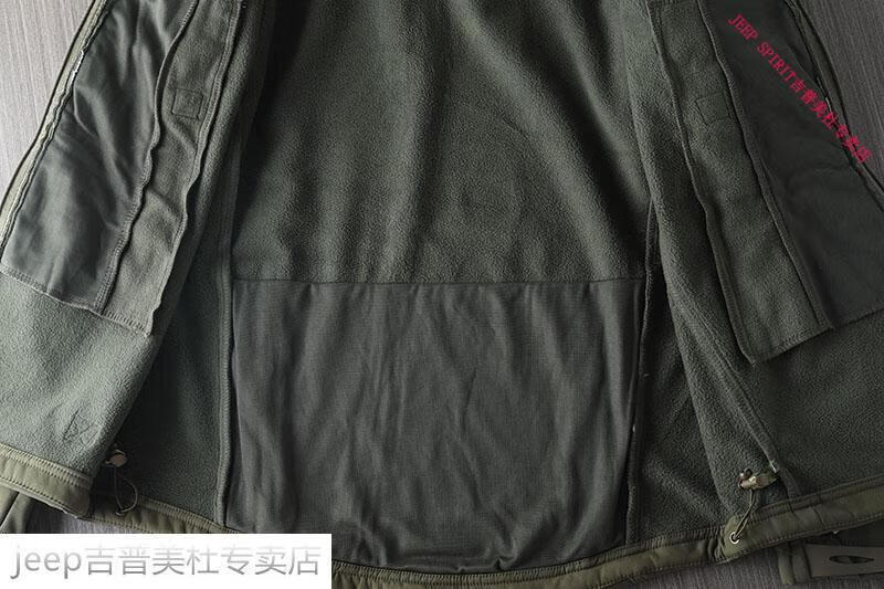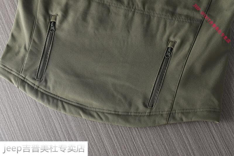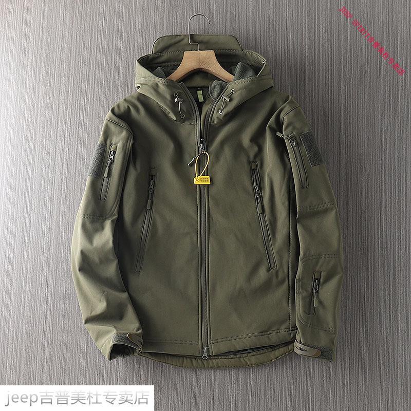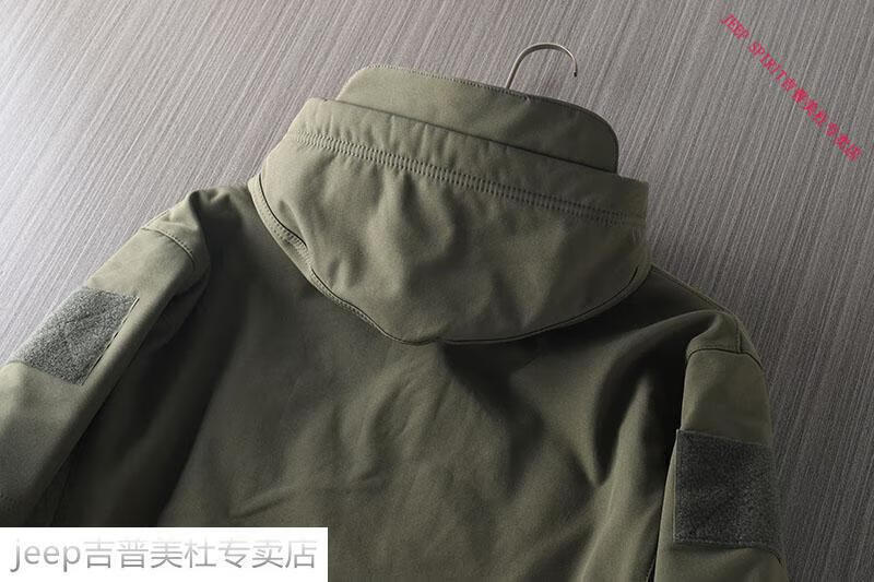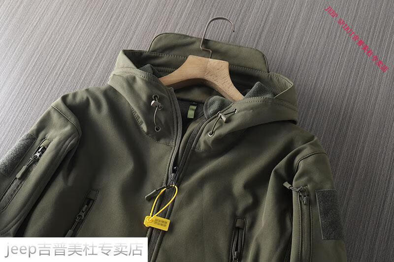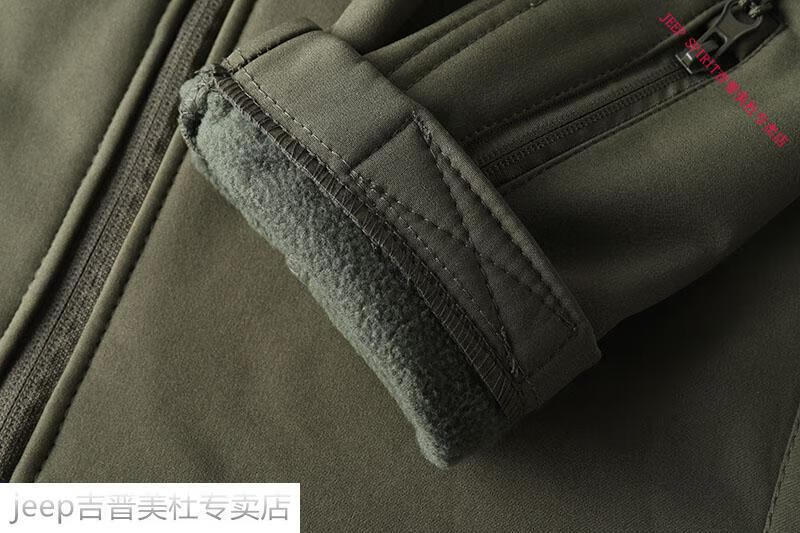 JEEP SPIRIT Jeep Brand Wall Crack Outdoor Tactical Soft Shell Jacket Men's Spring, Autumn and Winter Plus Velvet Windproof and Waterproof Jacket Military Green BAB02 S (80-100 catties)