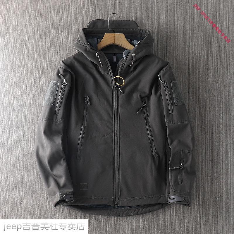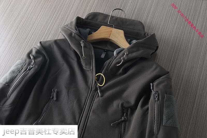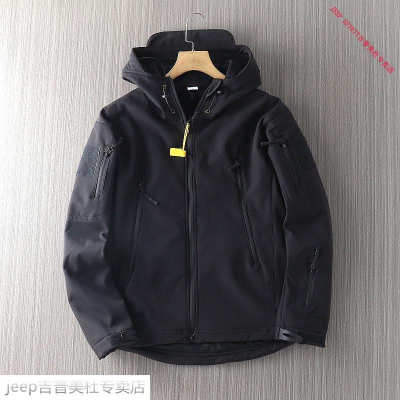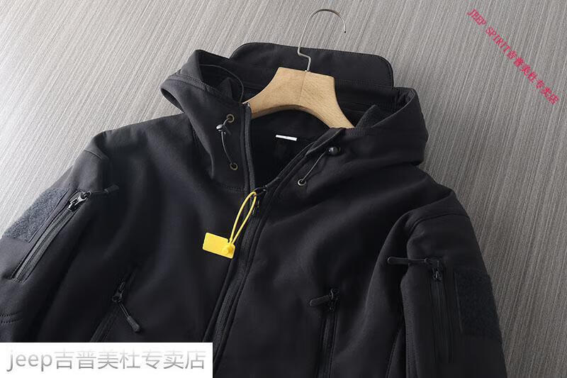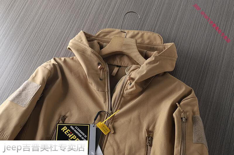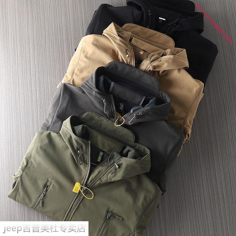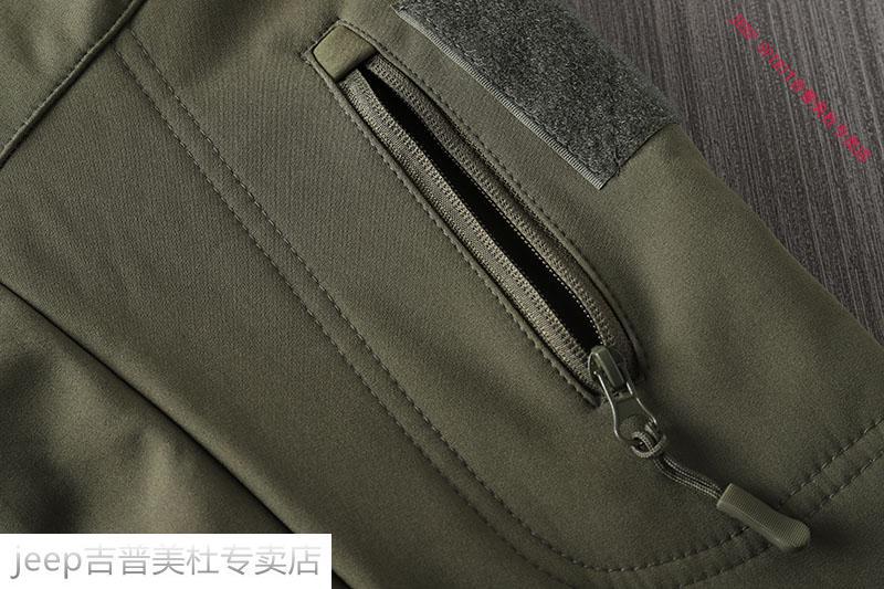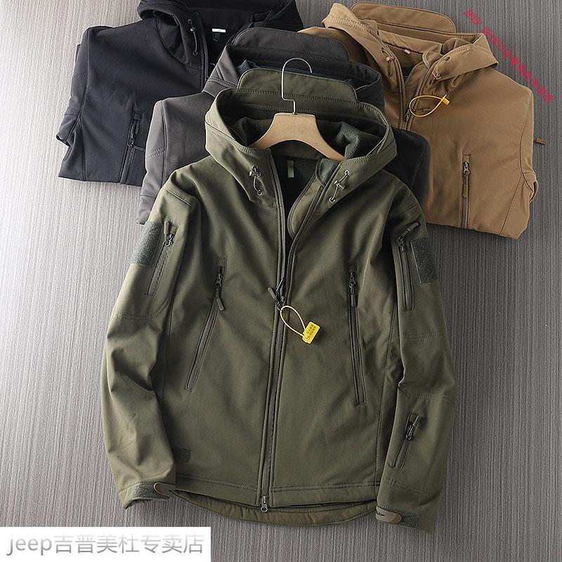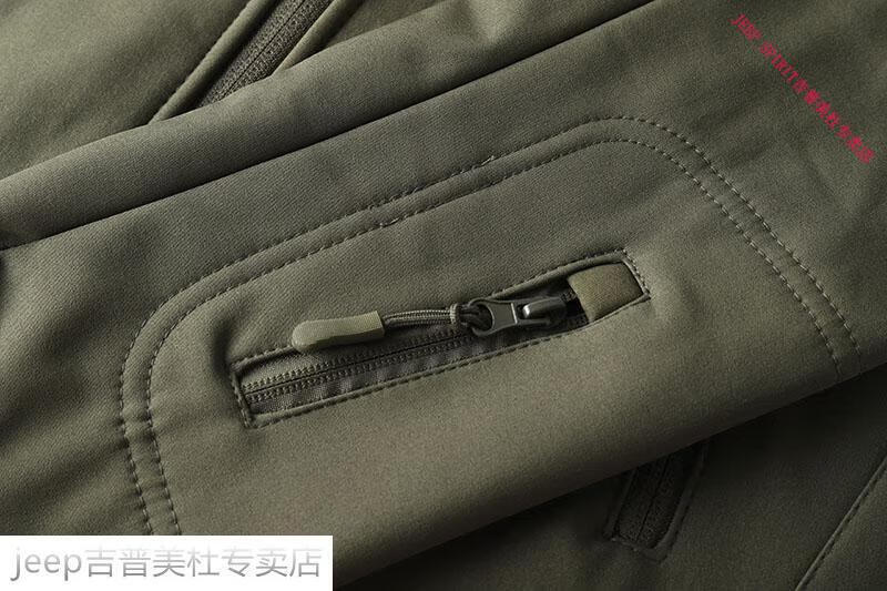 JEEP SPIRIT Jeep Brand Wall Crack Outdoor Tactical Soft Shell Jacket Men's Spring, Autumn and Winter Plus Velvet Windproof and Waterproof Jacket Military Green BAB02 S (80-100 catties)