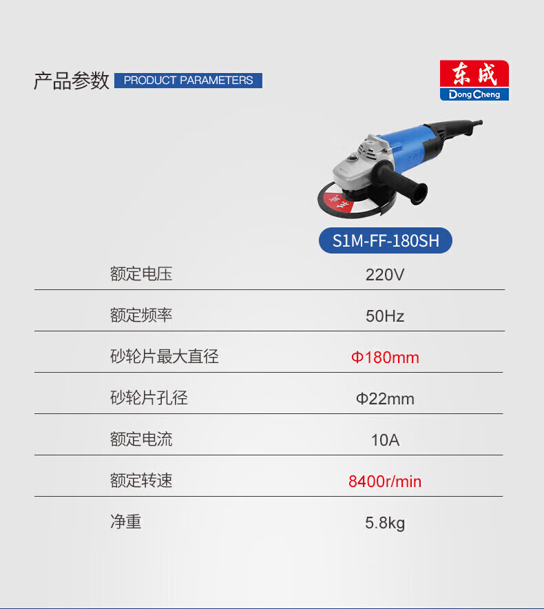 Dongcheng angle grinder S1M-FF-180SH angle grinder cutting machine grinder power tool