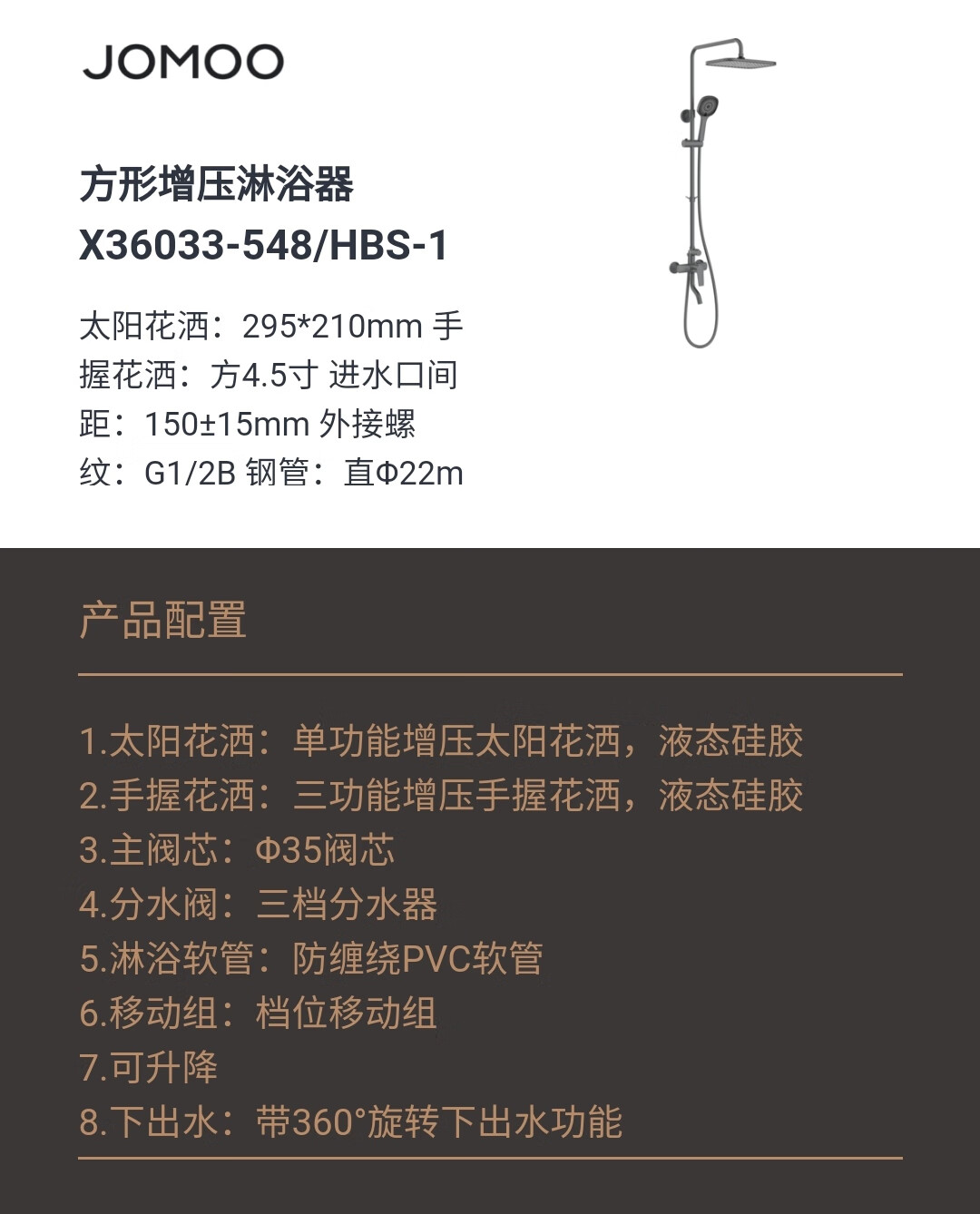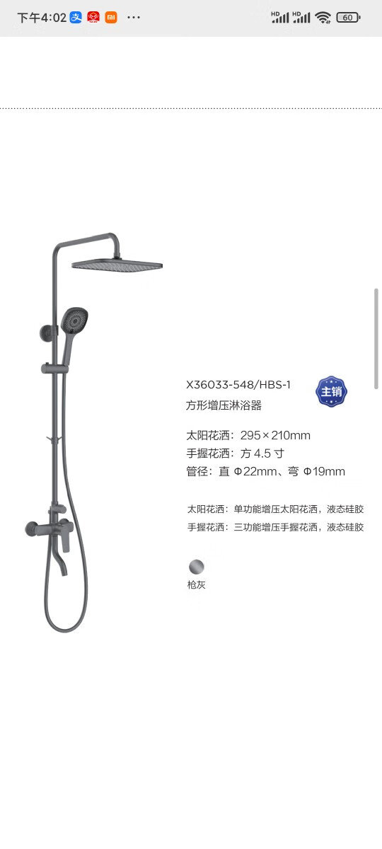 Jomoo Bathroom Offline Model Bathroom Offline Model X36033-54836033 Gun Gray Shower Chrome Plated Yabai Yahei Shower