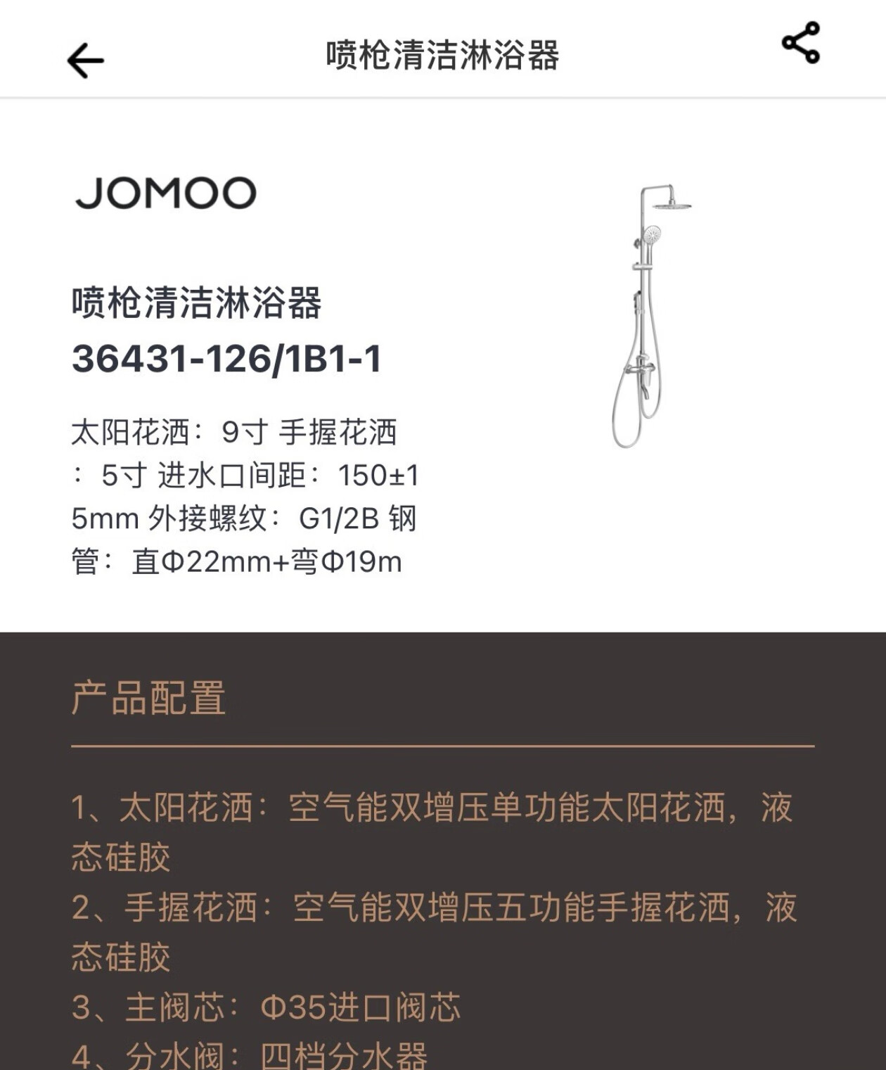 Jomoo bathroom offline model bathroom offline model 36431 with spray gun four-speed top spray water outlet shower head full copper dragon X36011