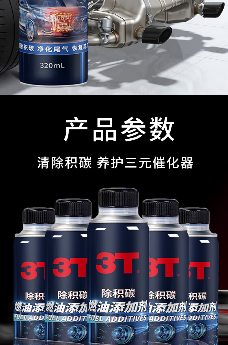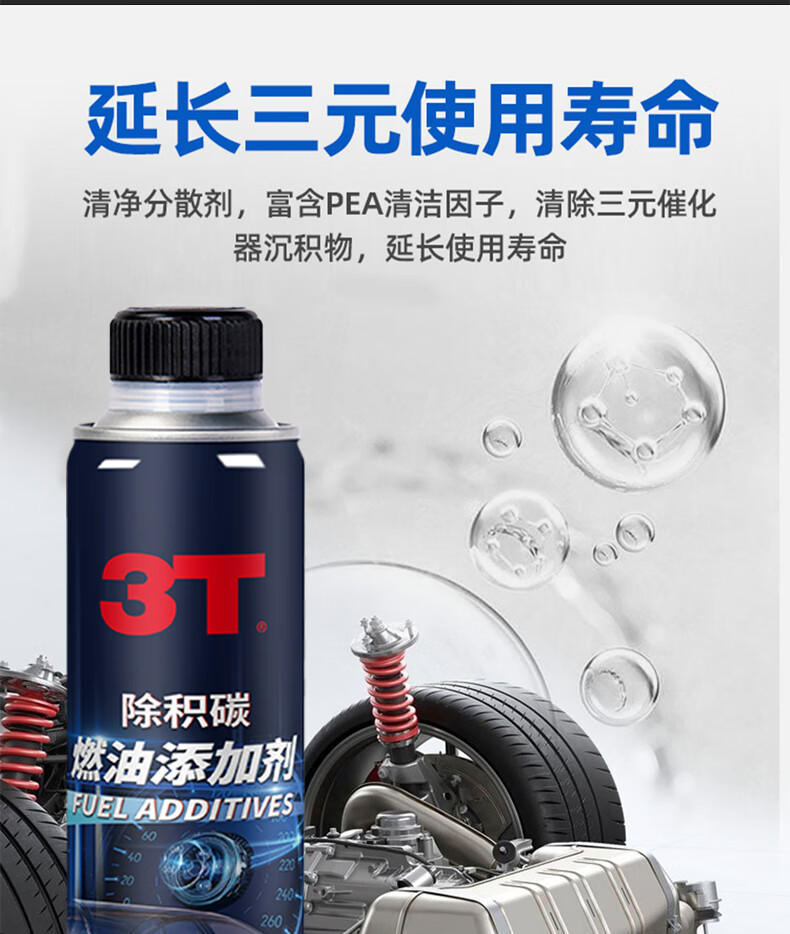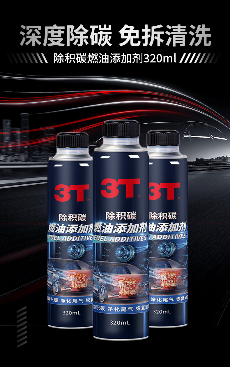 3T decarbonized fuel additive removes deep carbon deposits inside the engine, improves power, and purifies exhaust gas. 2 bottles of 320ml fuel additive