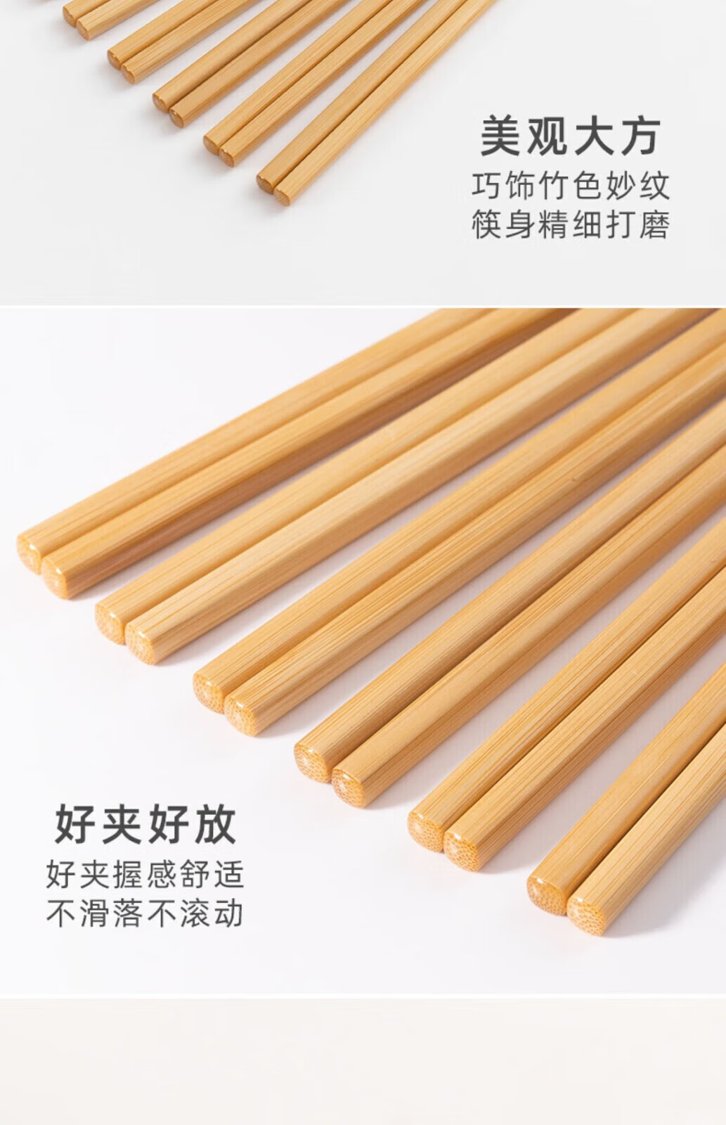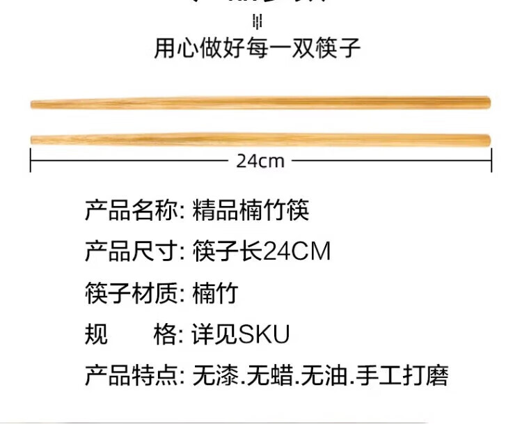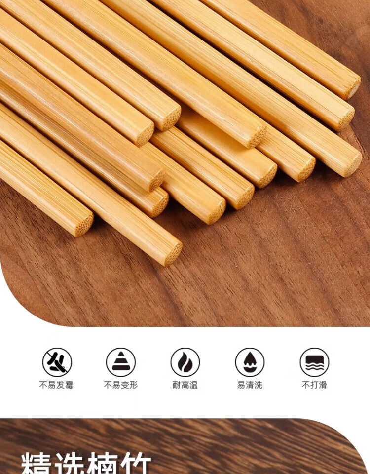 Jingdie chopsticks, non-slip and mildew-proof, household high-end, high-temperature-resistant bamboo chopsticks, paint-free and wax-free wooden chopsticks, natural chopsticks, natural wooden chopsticks, 10 pairs