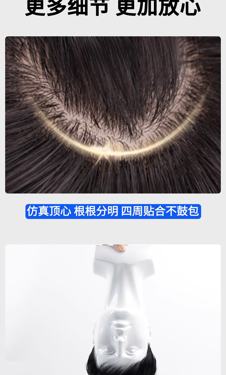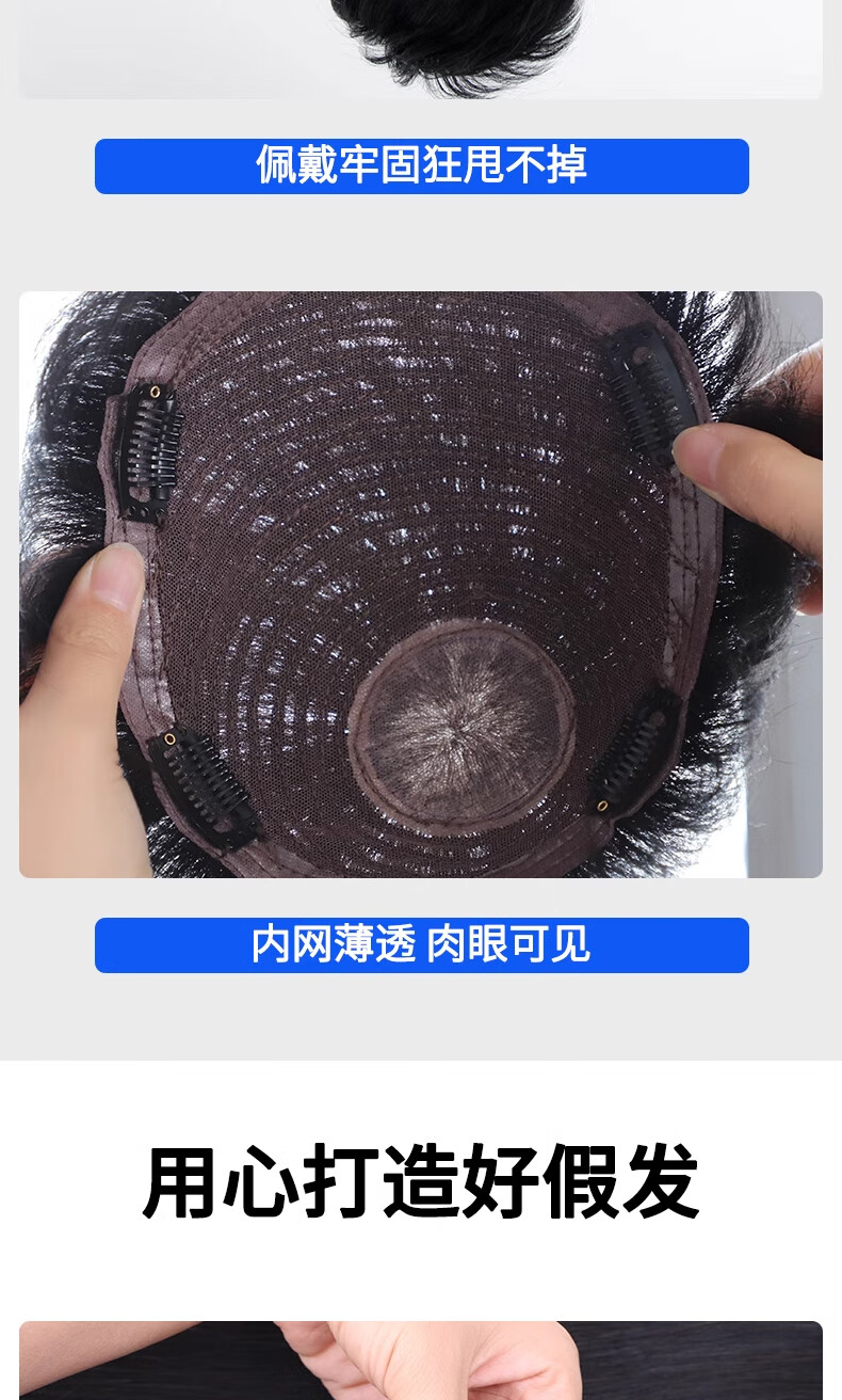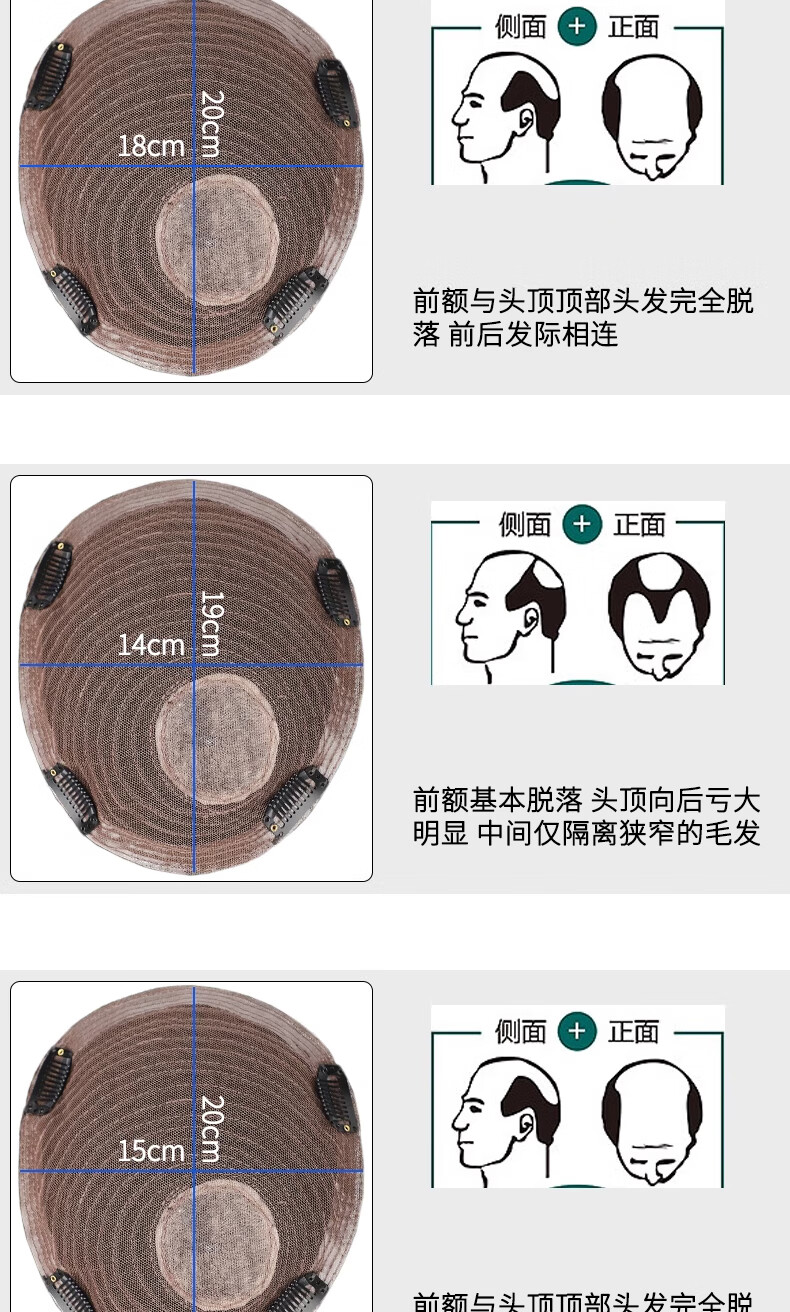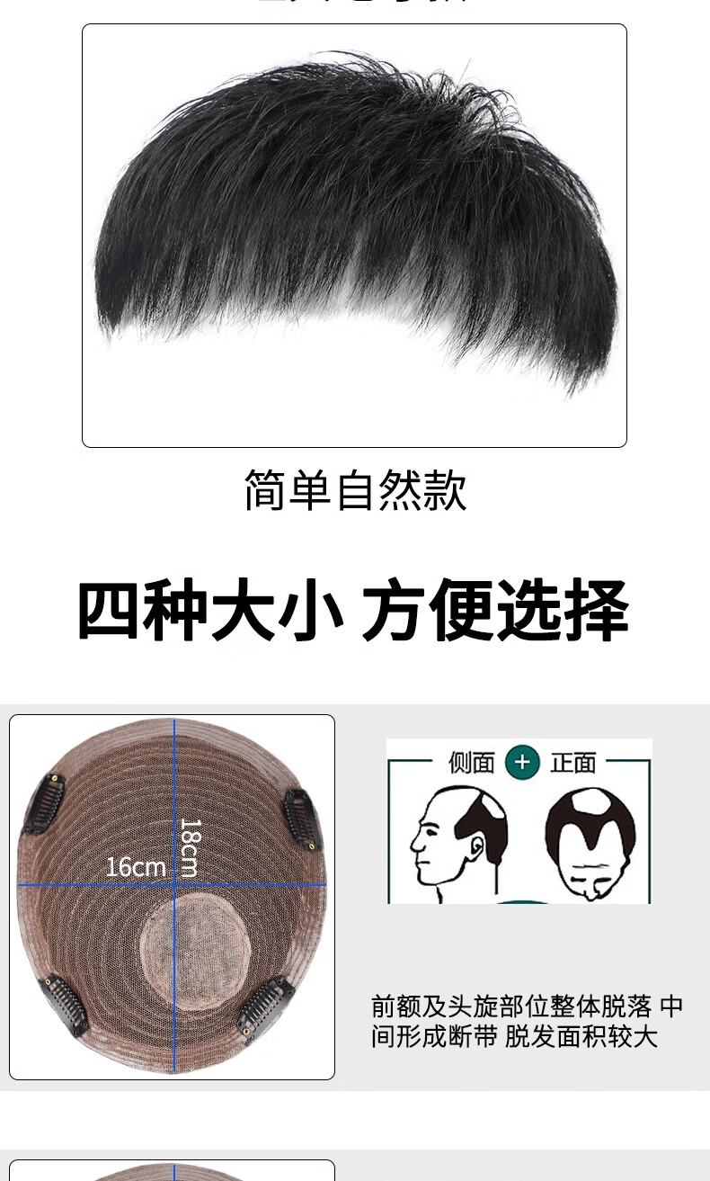 Yixin Men's Top Hair Replacement Piece Men's Top Hair Replacement Block Wig Piece Men's Real Hair Hairline Covers White Hair Natural Breathable Hair Size Model Skin Imitation Delivery Needle Full Real Hair 18*20