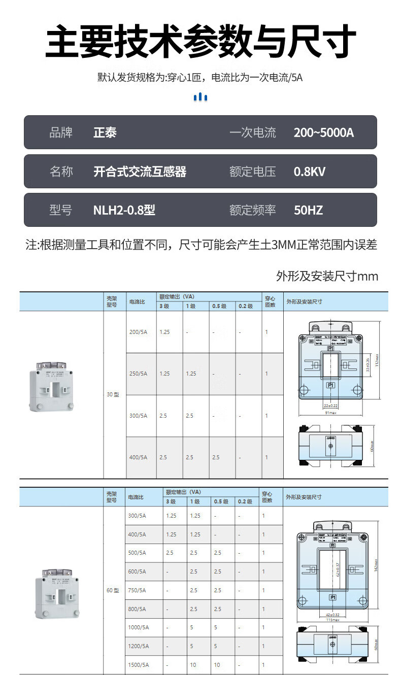 Chint (CHNT) opening and closing current transformer NLH2-0.8 open type current three-phase open type buckle low voltage AC measurement high precision and easy installation 60 type 1000/5A 0.5 level