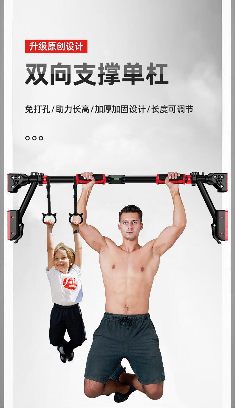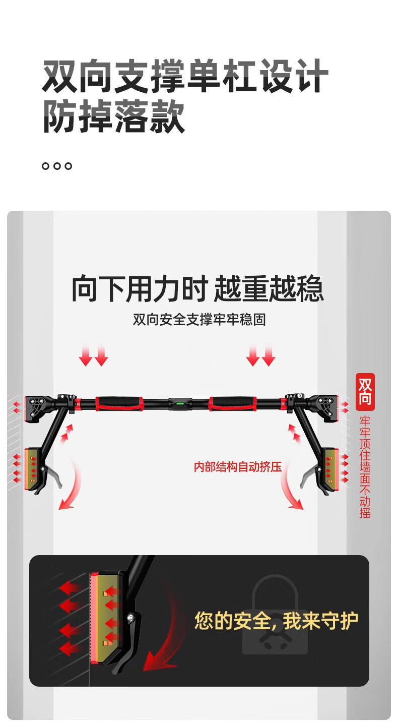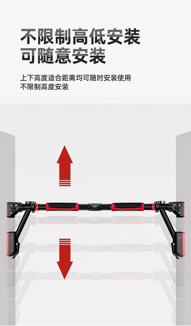 AOCTIK German brand horizontal bar indoor home pull-up device without punching door home wall single rod boom bar 134-163cm + level black tube red support ring