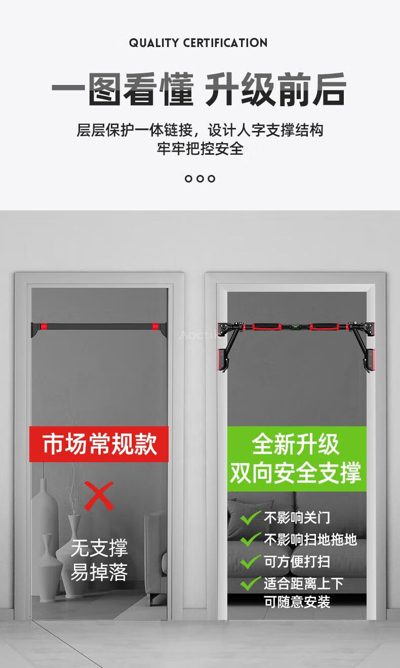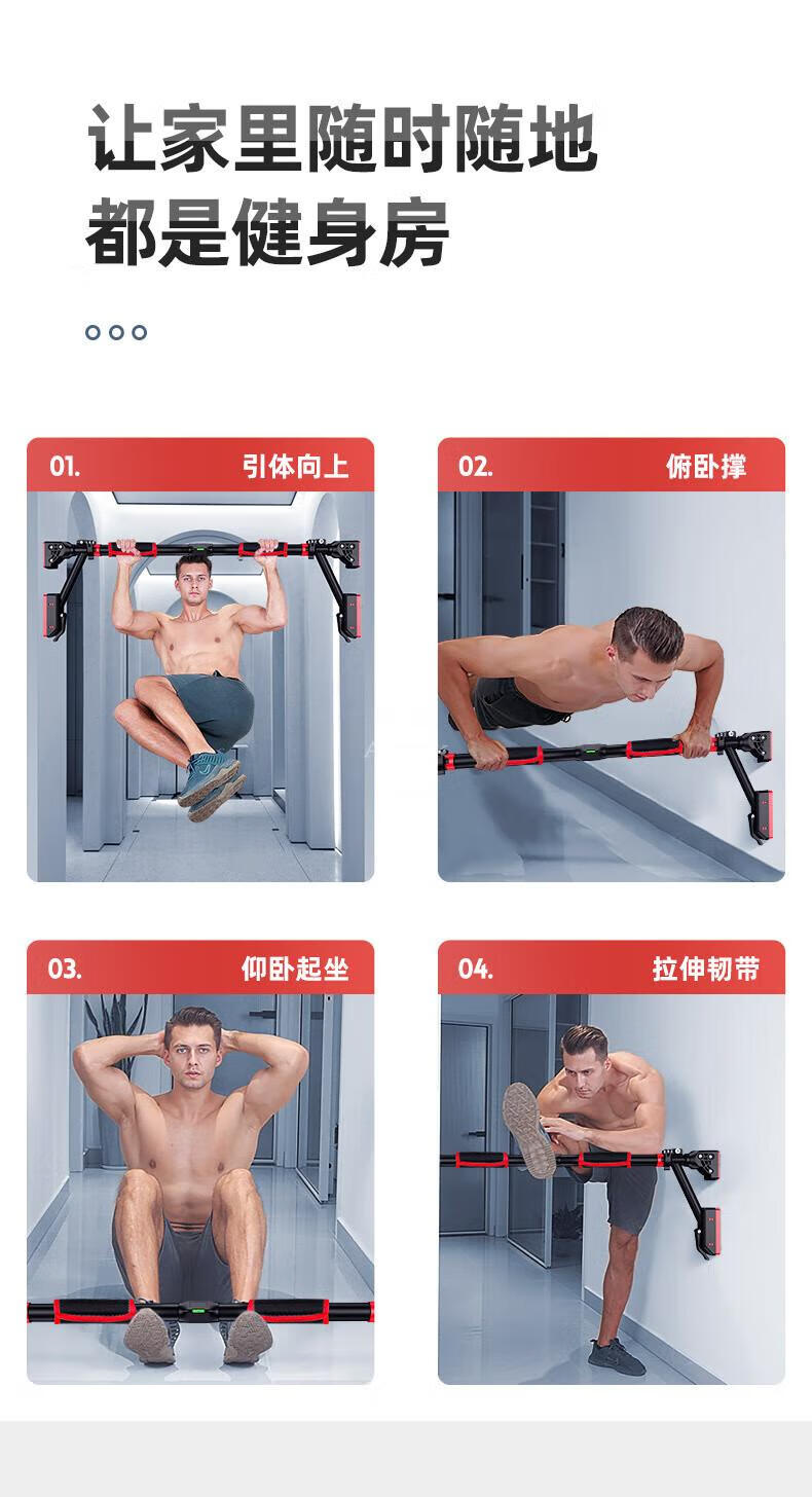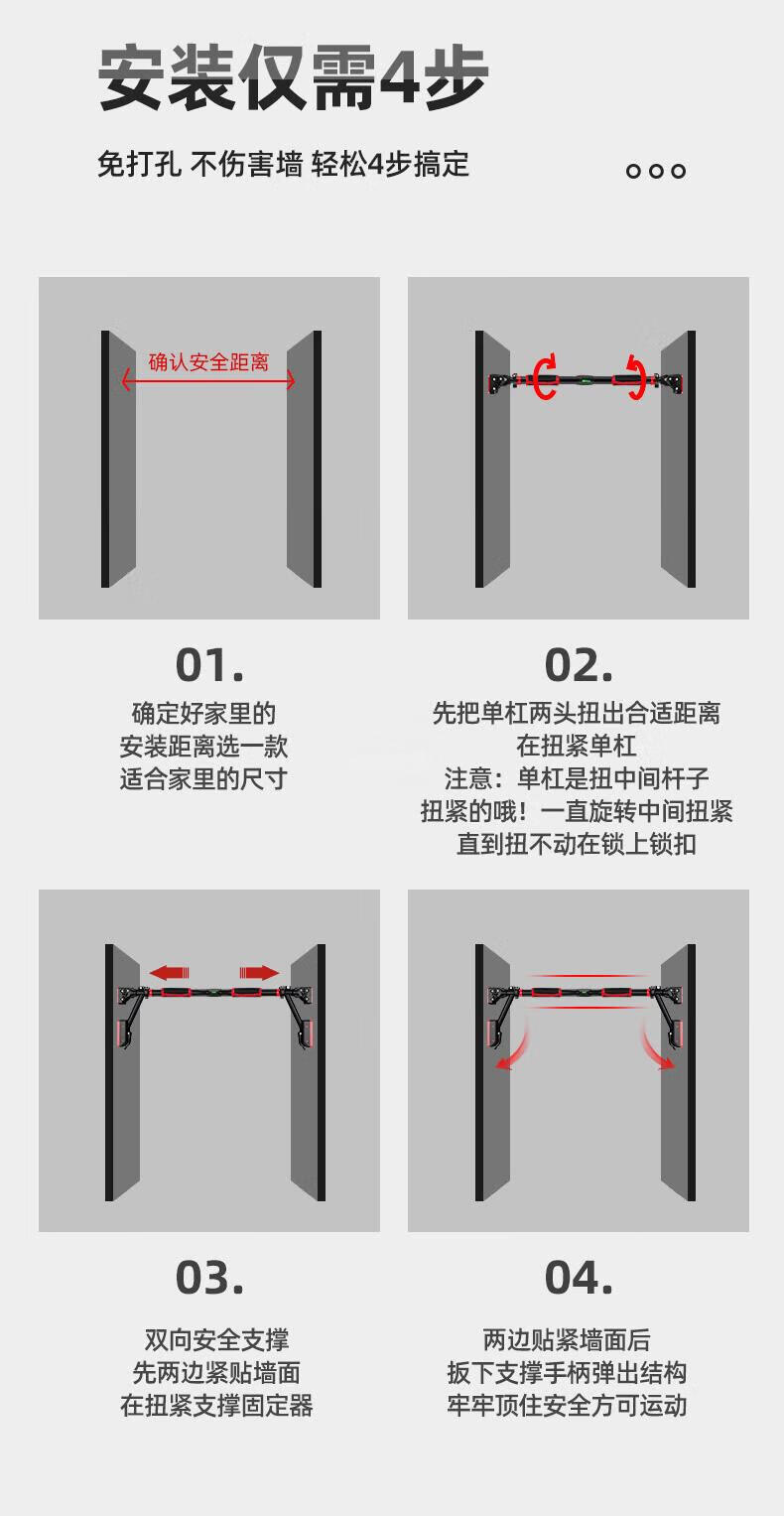 AOCTIK German brand horizontal bar indoor home pull-up device without punching door home wall single rod boom bar 134-163cm + level black tube red support ring