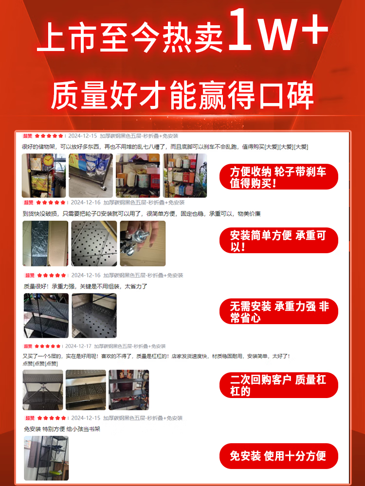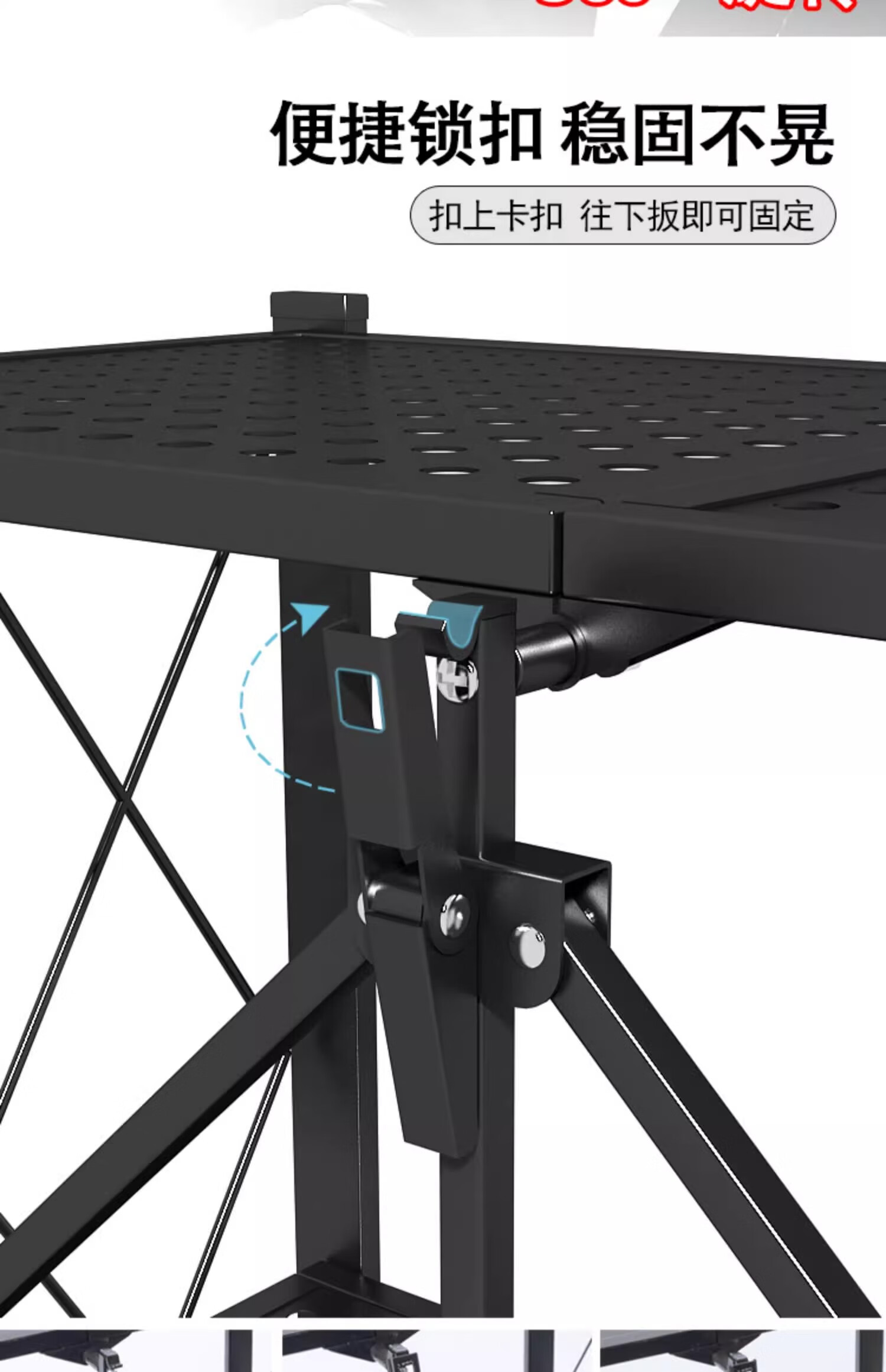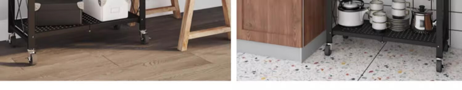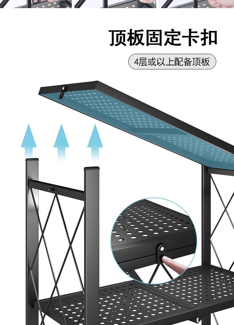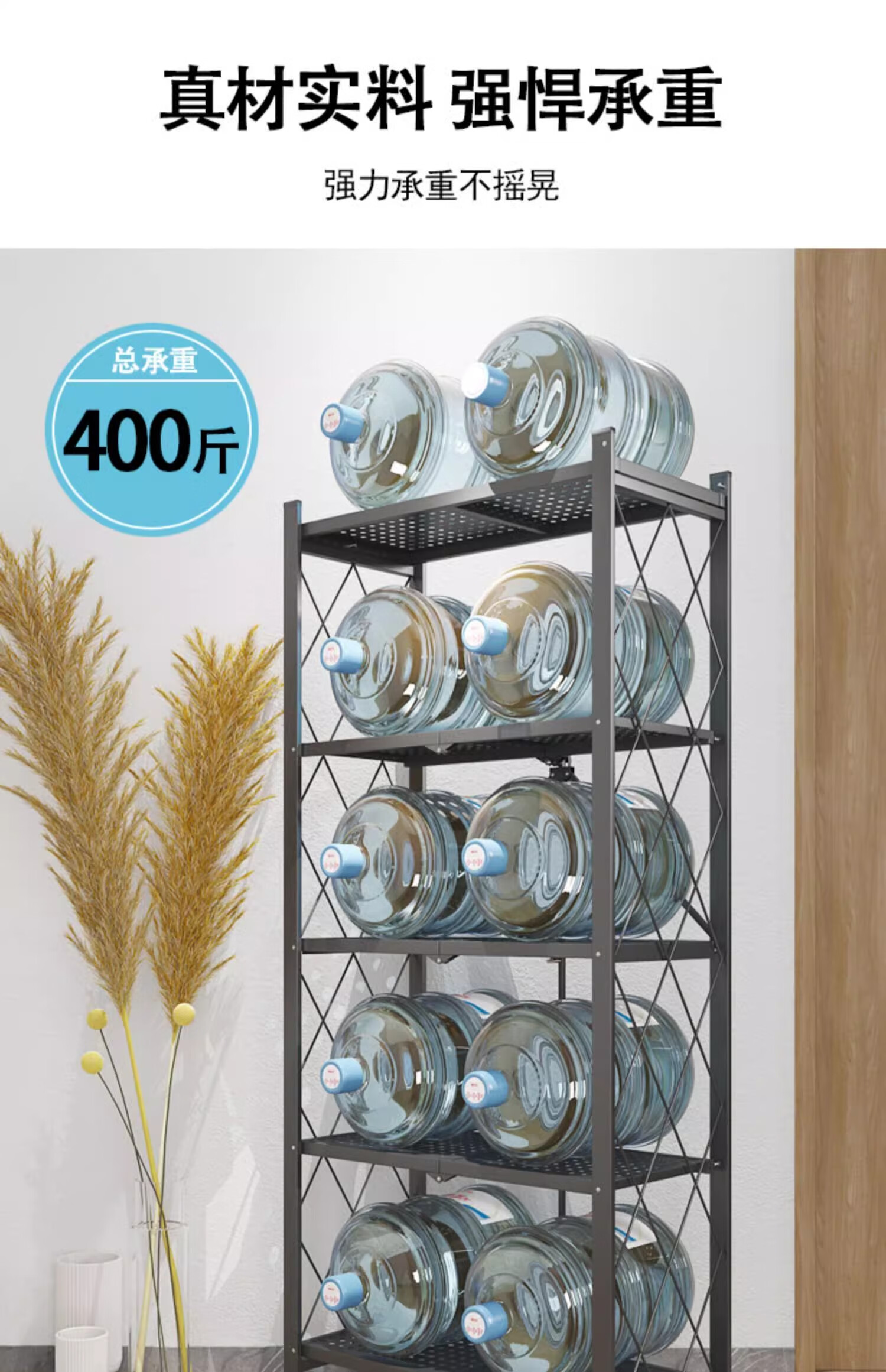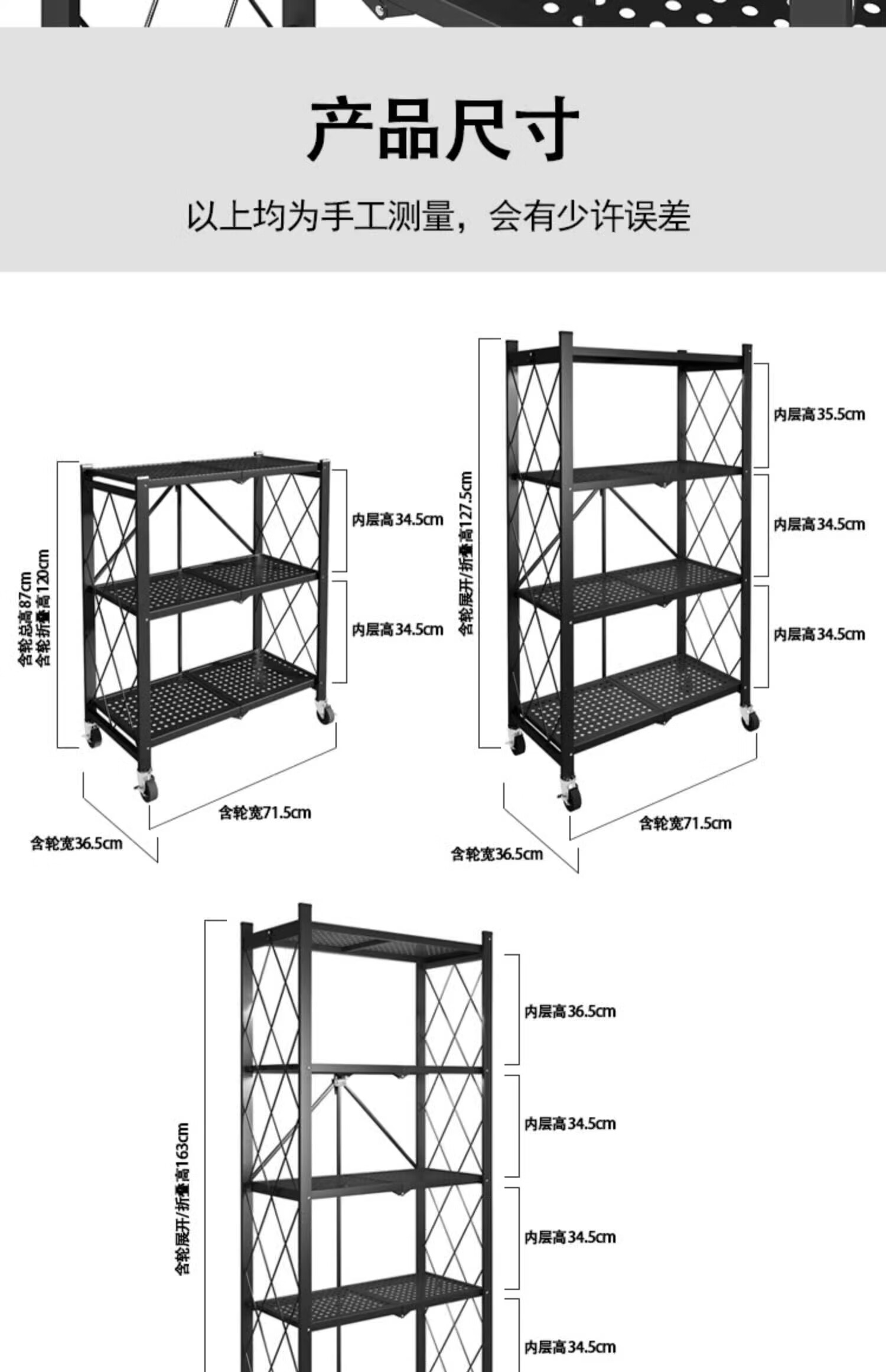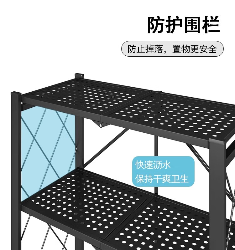 Installation-free floor-standing folding storage rack storage rack microwave oven rack living room kitchen multi-layer storage trolley pot rack thickened carbon steel black five layers - second folding + no installation required