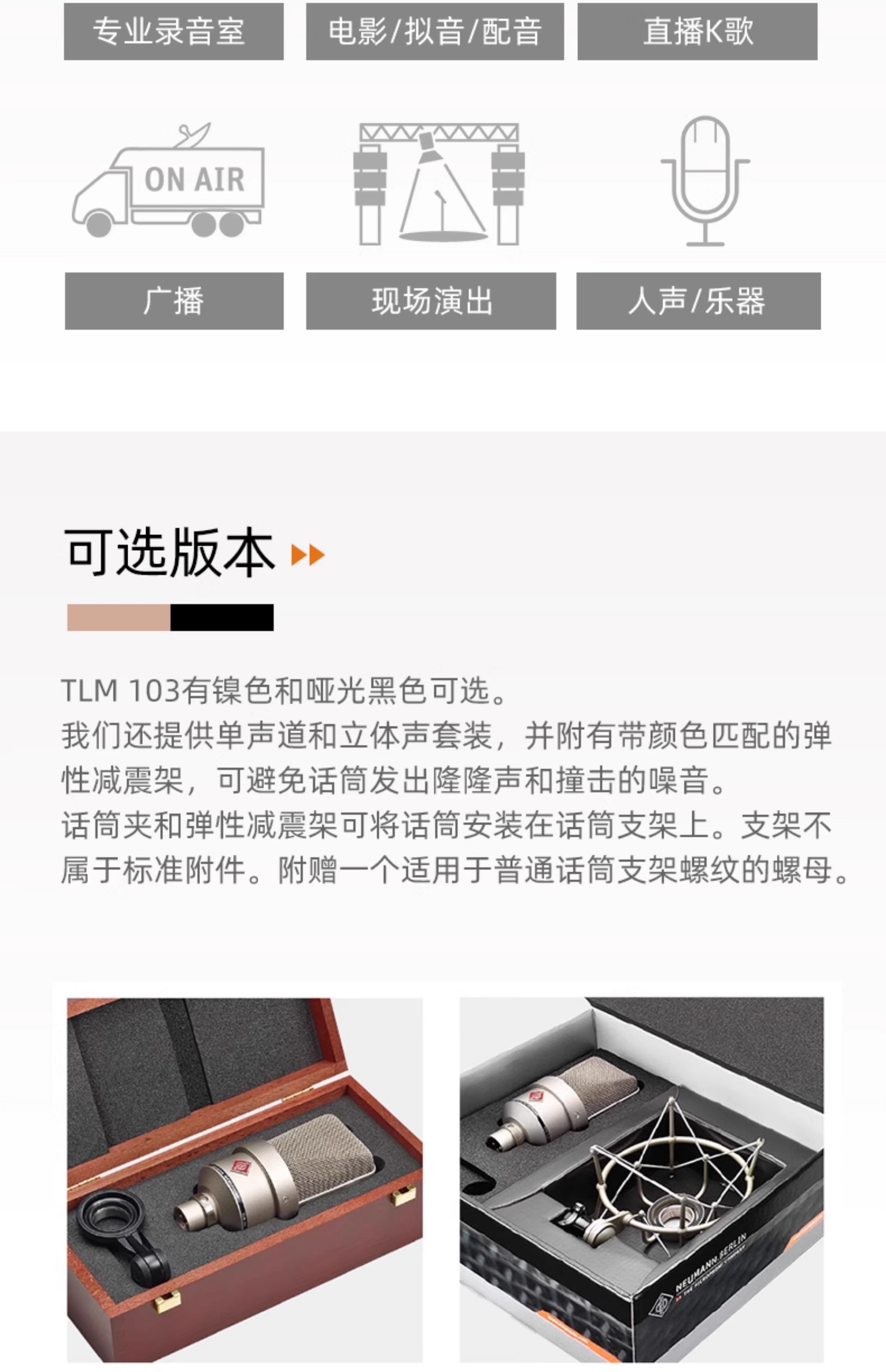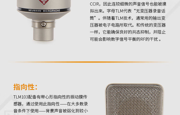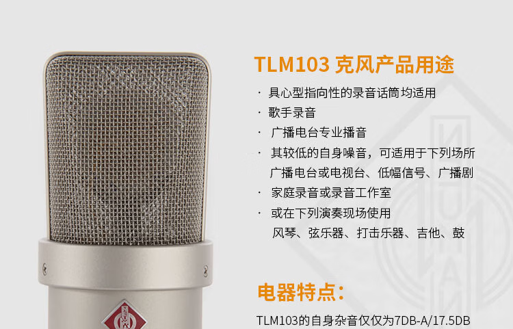 Newman NEUMANN TLM103 microphone microphone condenser recording large diaphragm network K live broadcast 48V TLM103 nickel color comes with original shock mount) large package