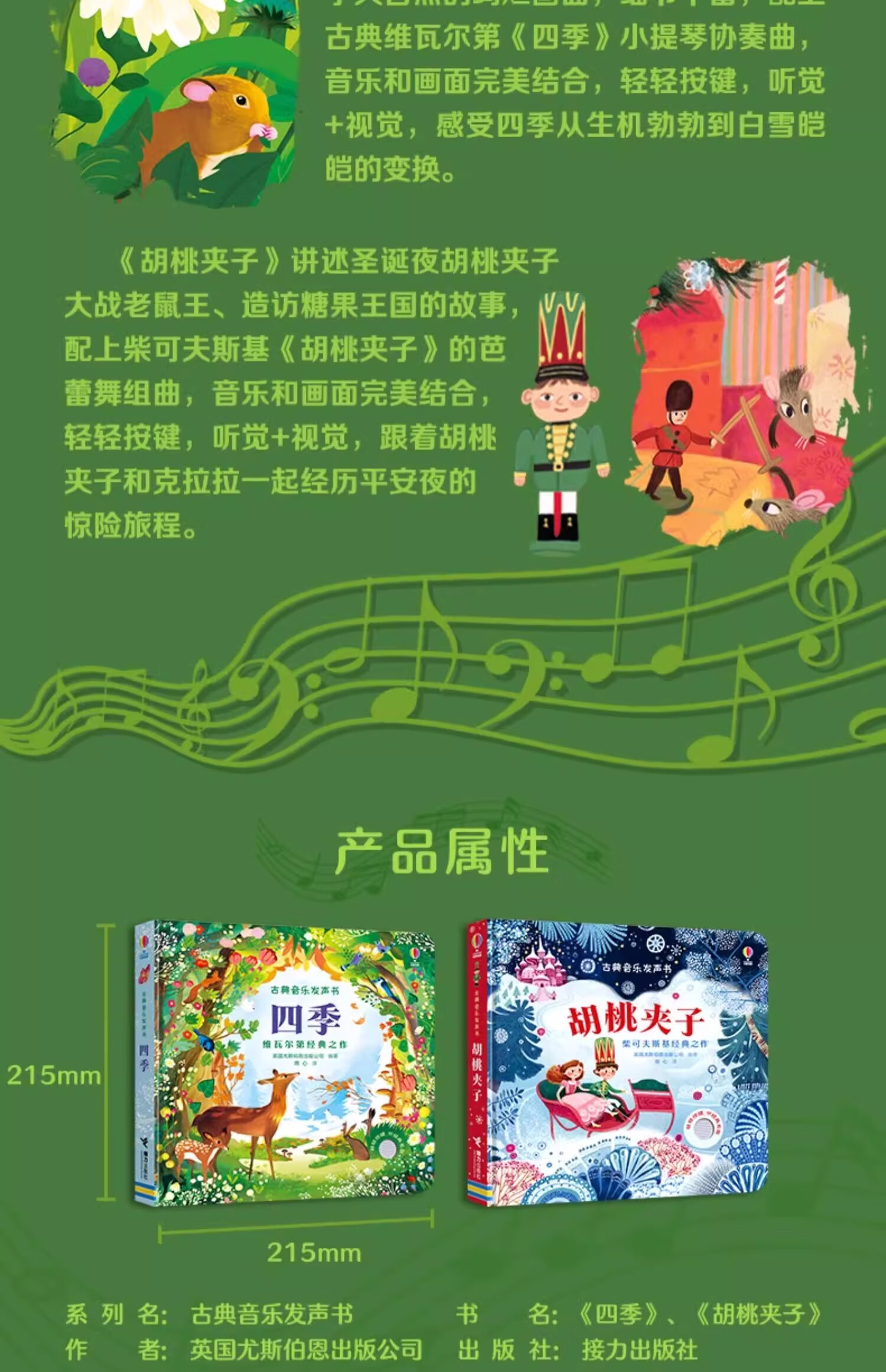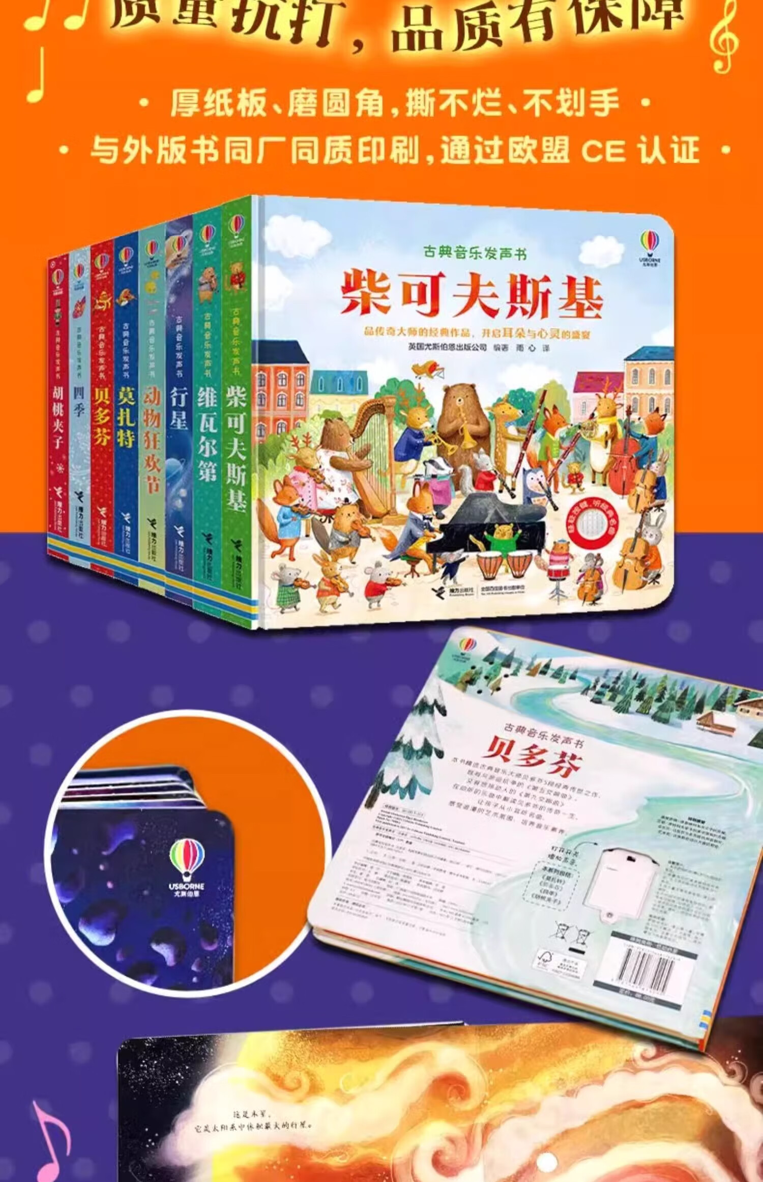 Xinhua Bookstore Official Genuine Usborne Classical Music Sound Book The Nutcracker Beethoven Mozart Four Seasons Vivaldi Children's Music Enlightenment 2-3-6 Years Old Baby Touch Your Finger to Read Wonderful Sound Books Audio Children's Music Books Mozart + Beethoven 2 volumes