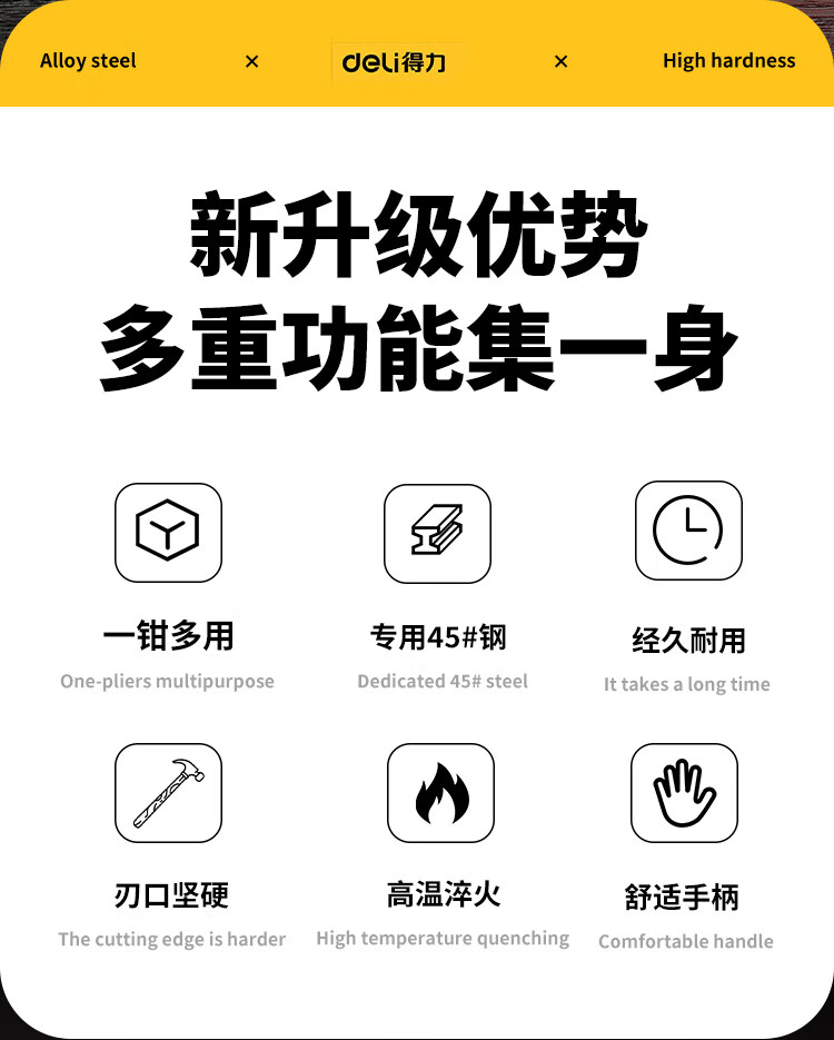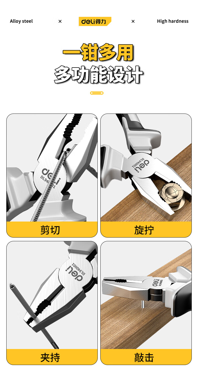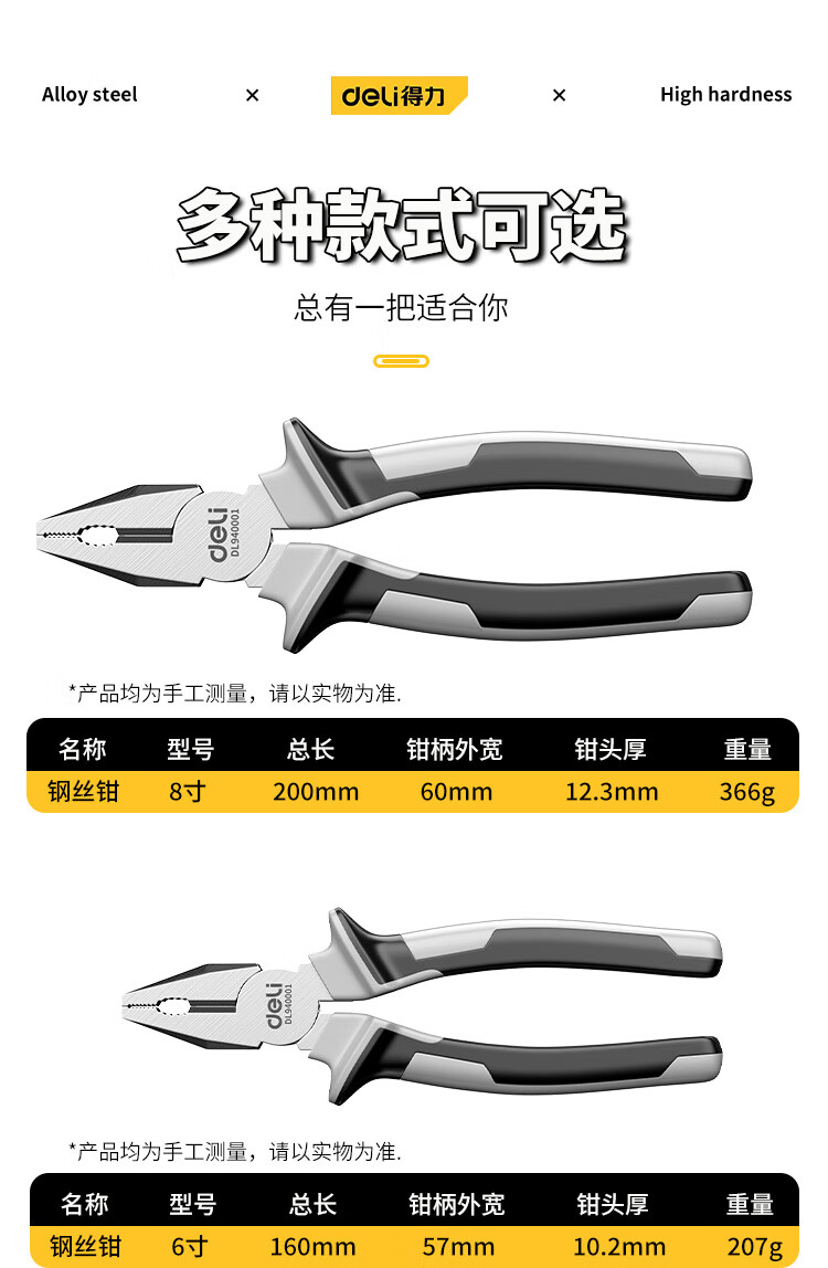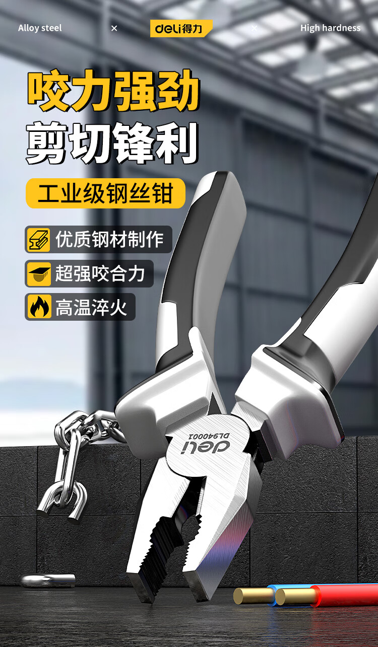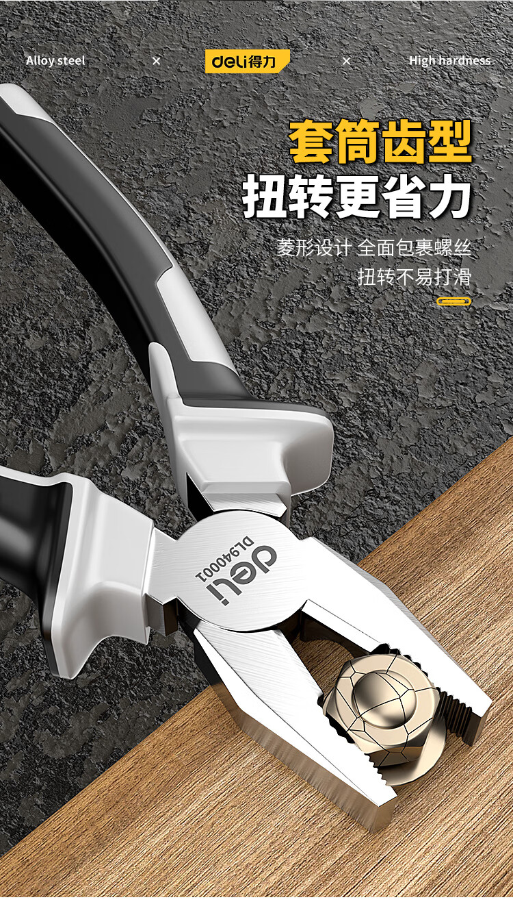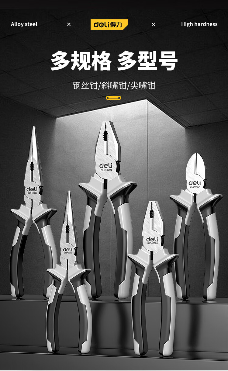 Deli vise pliers, needle nose pliers, industrial-grade wire cutters, electrician wire-cutting set, labor-saving wire cutting pliers, 8 steel + 6 tip + 6 oblique, three-piece set flagship model
