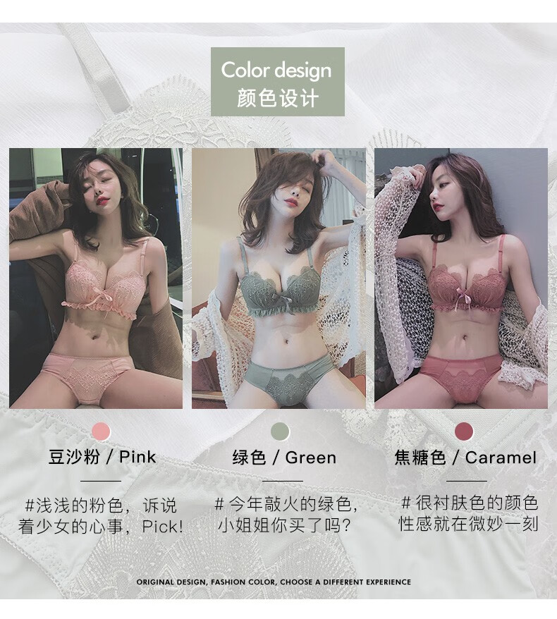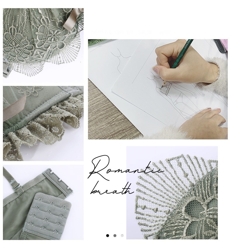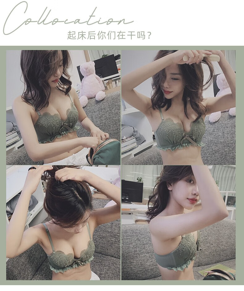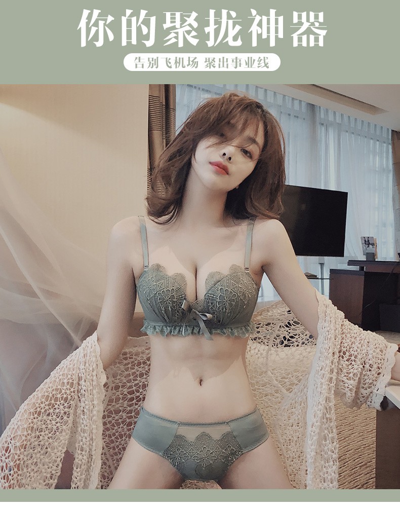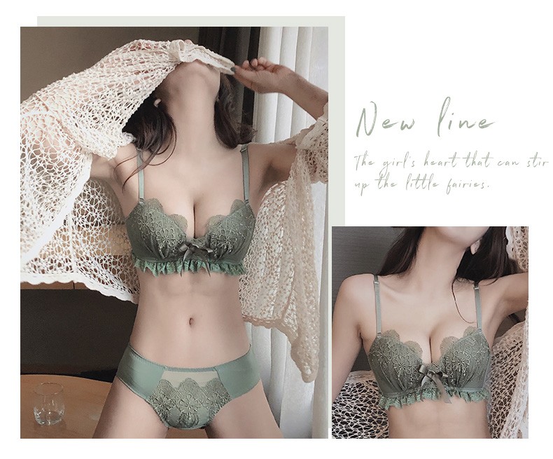 Daitianli push-up lace sexy underwear bra set, no wires, women's push-up adjustable anti-sagging small breast bra, green (single bra) 34A=75A