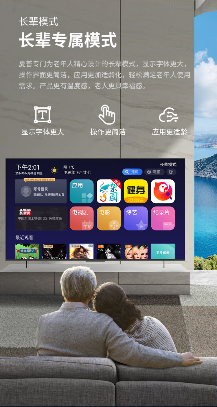 SHARP TV 55/65/75/86-inch 120Hz high-brush Dolby Vision MEMC HDR10 4K ultra-high-definition full-screen LCD TV GM6000A series 75-inch 120Hz high-brush Dolby Vision Atmos Door-to-door installation (including hanger)