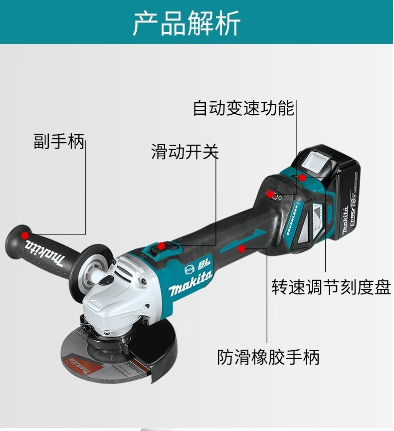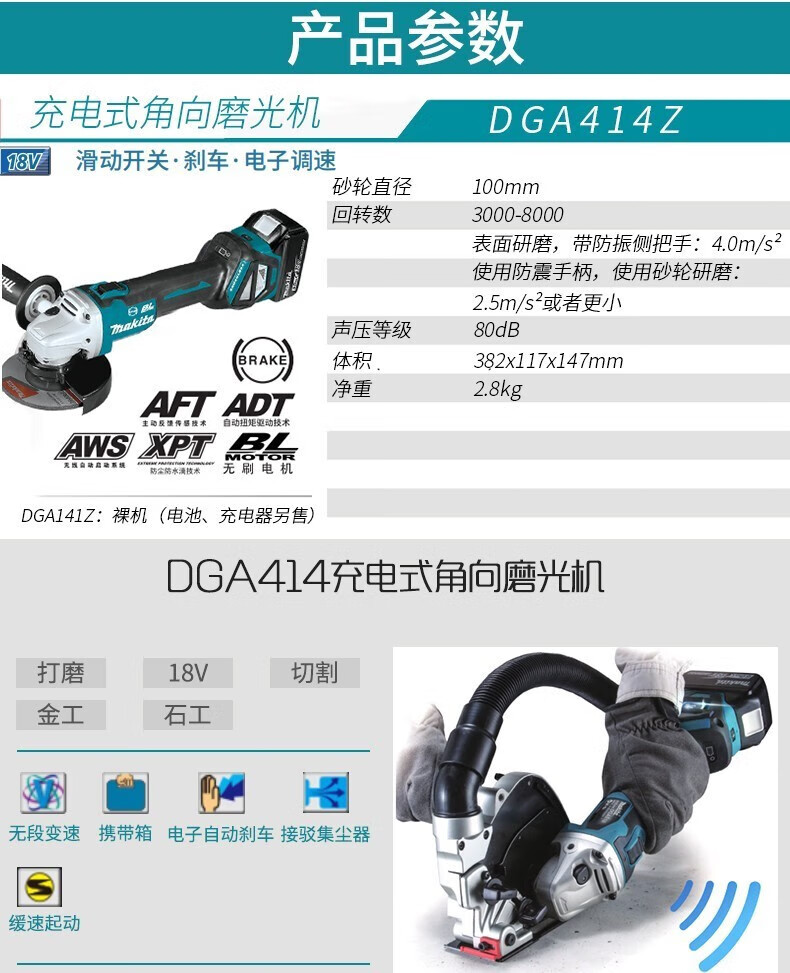 Makita rechargeable angle grinder brushless motor angle grinder DGA414 grinder cutting machine metal 18V lithium battery DGA414 4.0AH dual battery fast charge