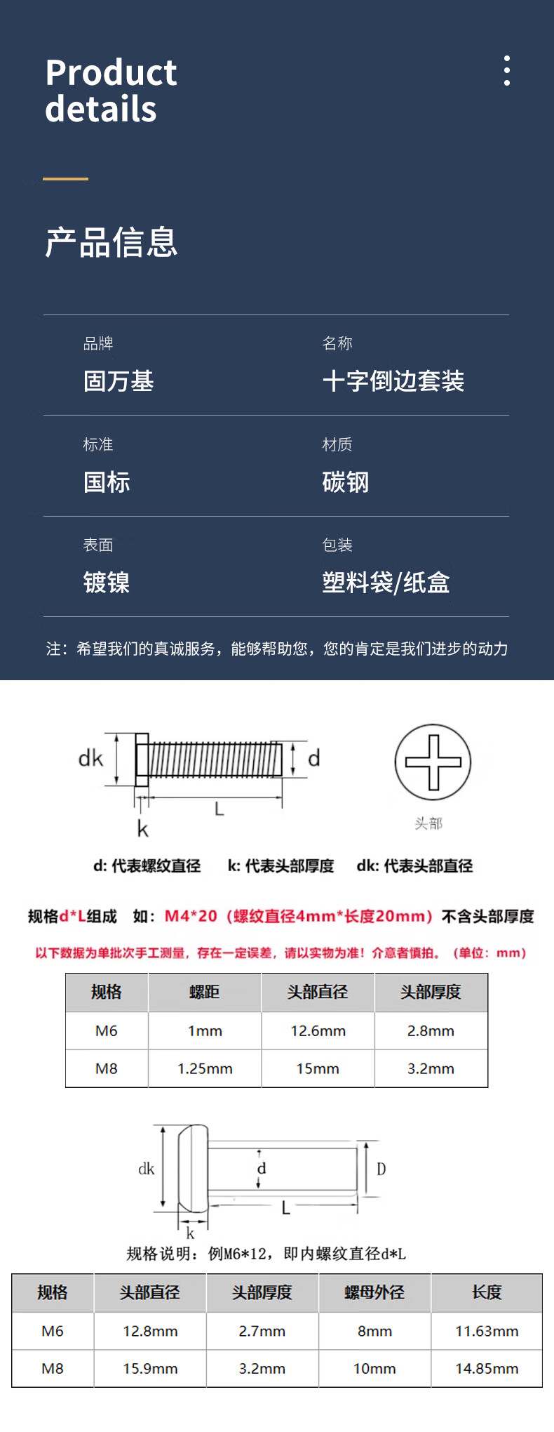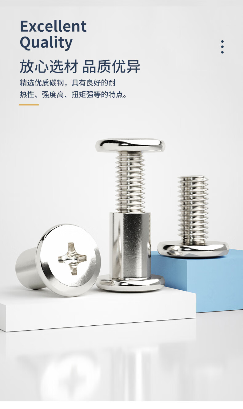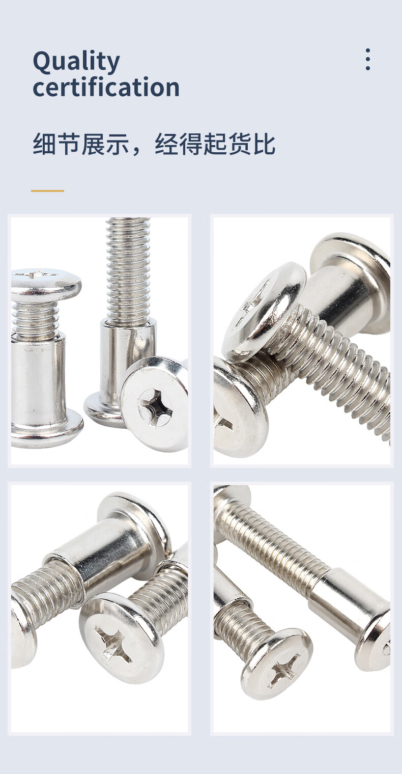 Guwanji iron nickel-plated chamfered flat head cross screw nut combination lock nut furniture connection plywood butt bolt 6x12 nut with 6x30 screw (20 sets)