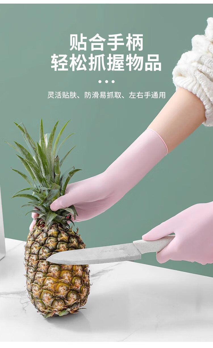 Disposable nitrile gloves food grade durable housework rubber latex kitchen cleaning dishwashing waterproof 12-inch flip-top nitrile gloves pink 30 pieces S size