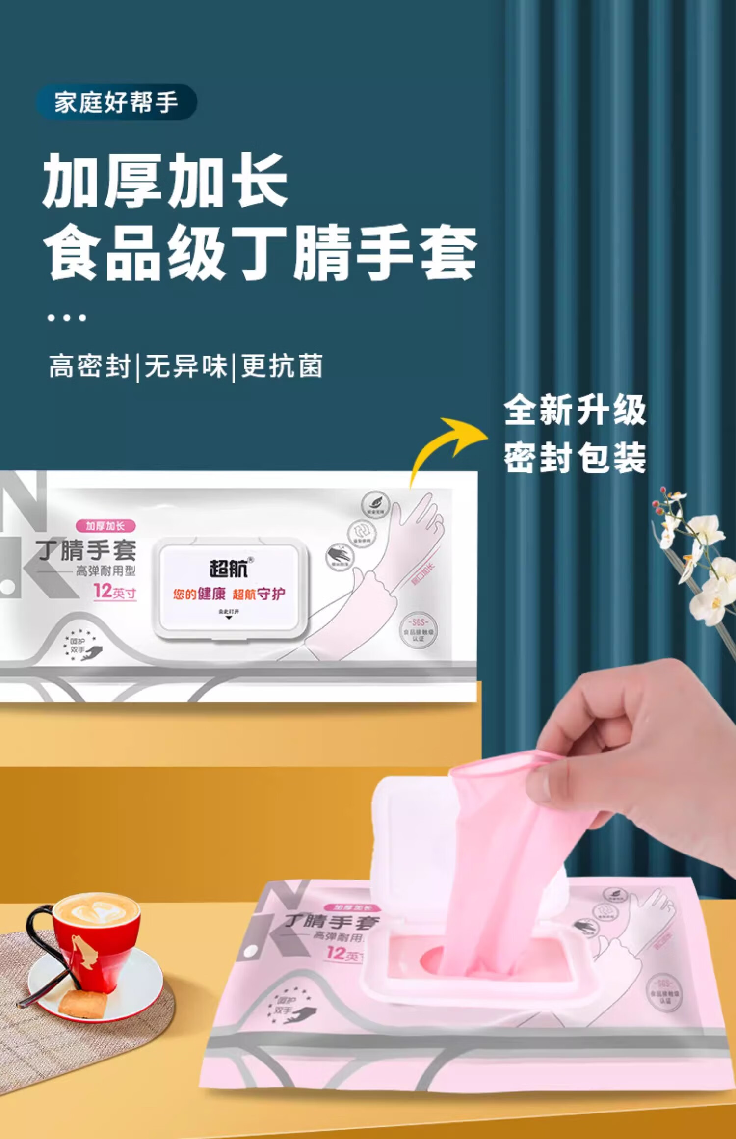 Nitrile gloves, extra long, durable, disposable dishwashing, thickened, oil-proof rubber, labor protection, housework, kitchen cleaning and cooking for women, 9-inch flip-top nitrile gloves, pink, 30 pieces, size S