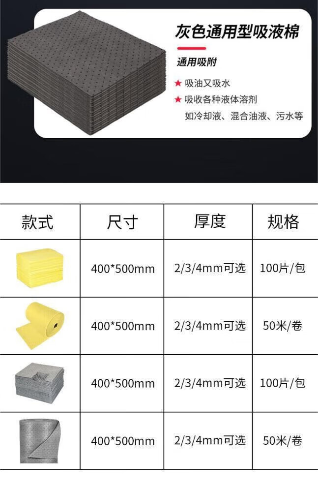 CreClean industrial oil-absorbing cotton pads, oil-absorbing felt, absorbent cotton oil spills, oil leakage oil-absorbing pads, pressure point models 400*500*3mm 100 pieces - gray