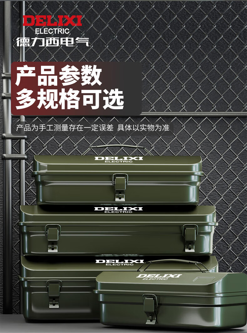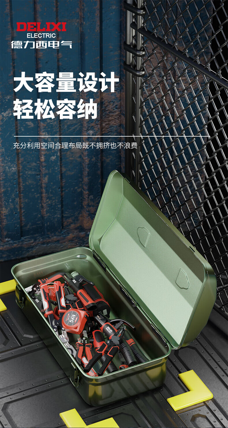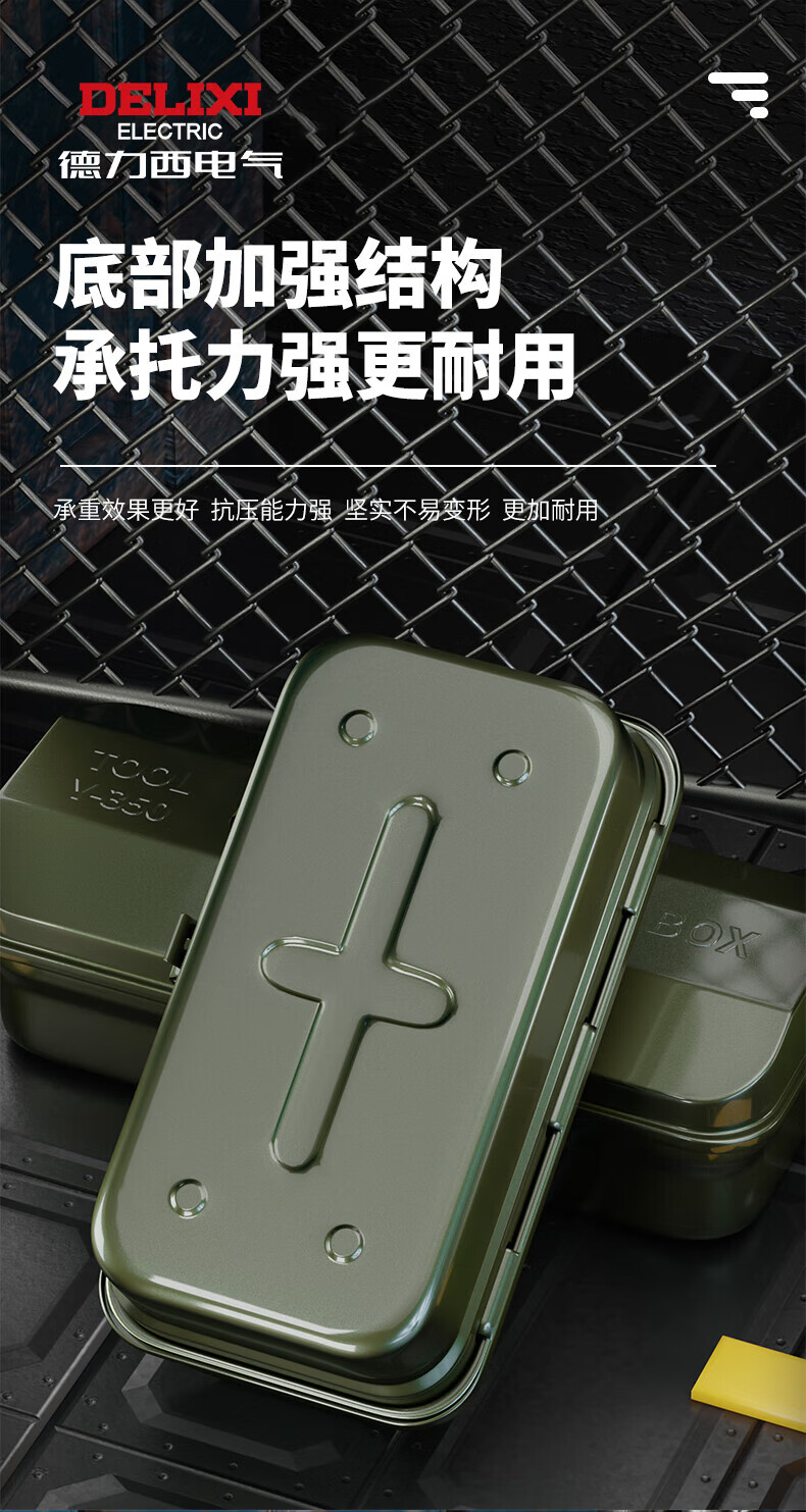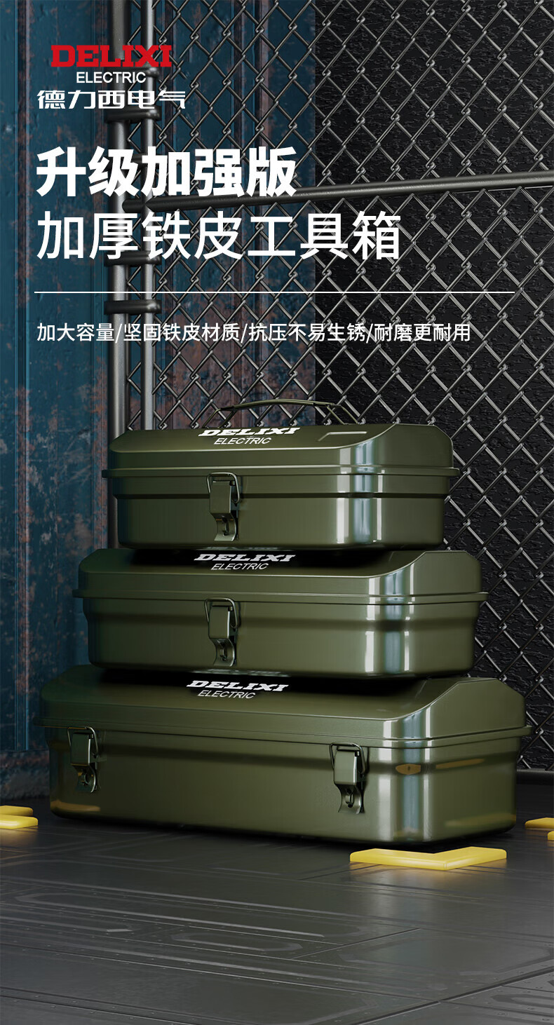 Delixi multifunctional household hardware tool box industrial-grade storage box thickened metal auto repair iron car box anti-collision enlarged and thickened huge size 430*220*165 single layer
