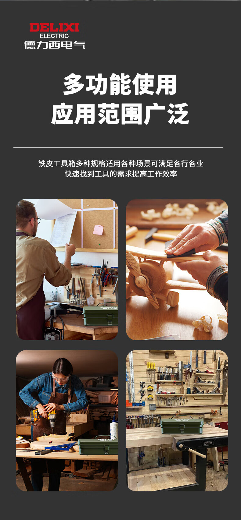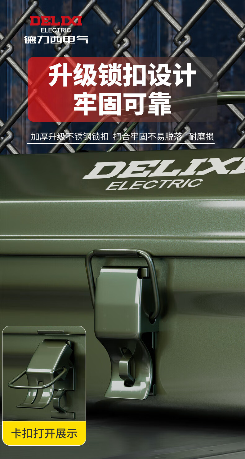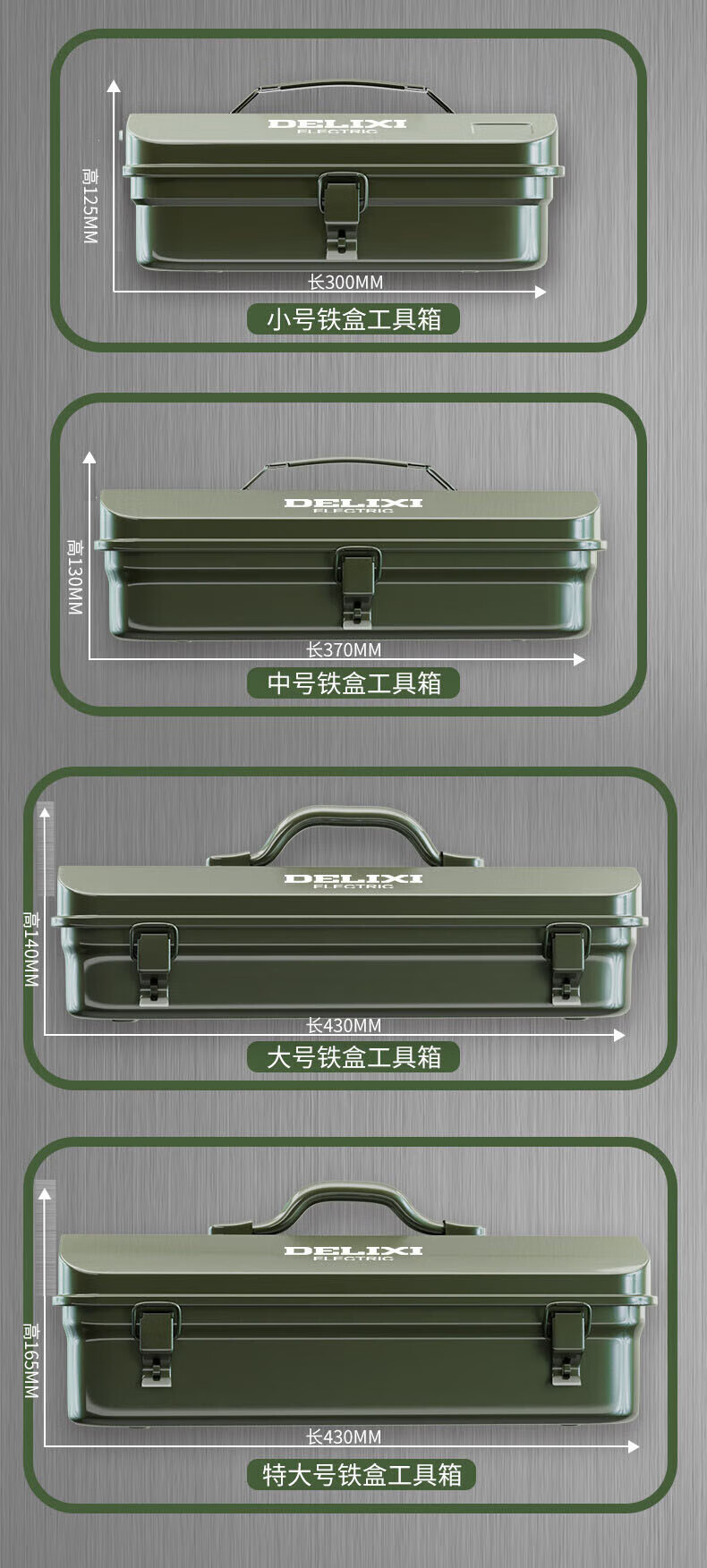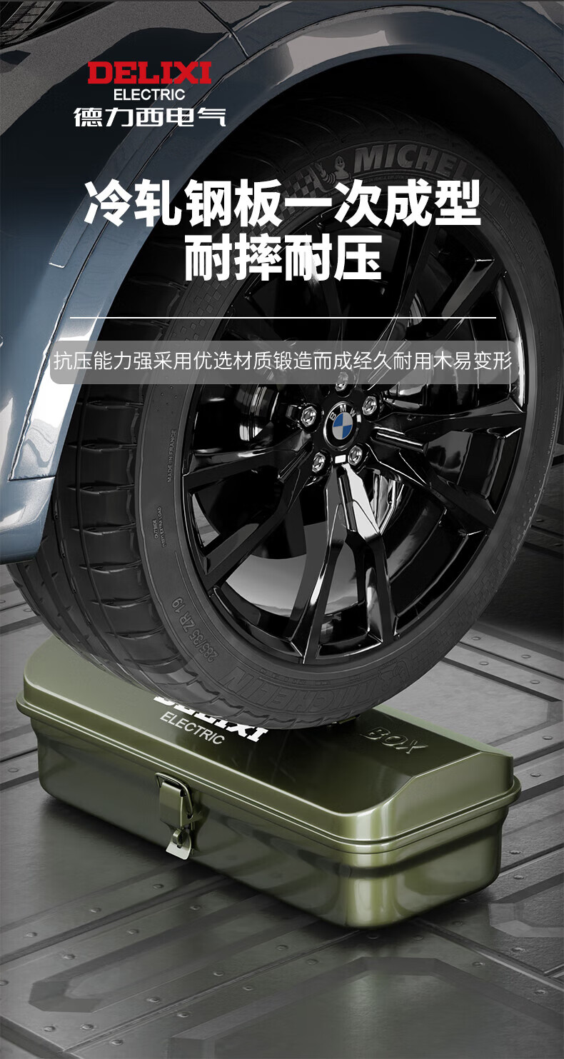 Delixi multifunctional household hardware tool box industrial-grade storage box thickened metal auto repair iron car box anti-collision enlarged and thickened huge size 430*220*165 single layer