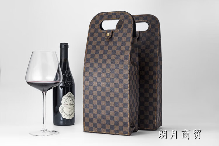 Xingyuechen red wine bag double wine box packaging bag gift box leather box red wine packaging box red wine bag double checkered leather bag
