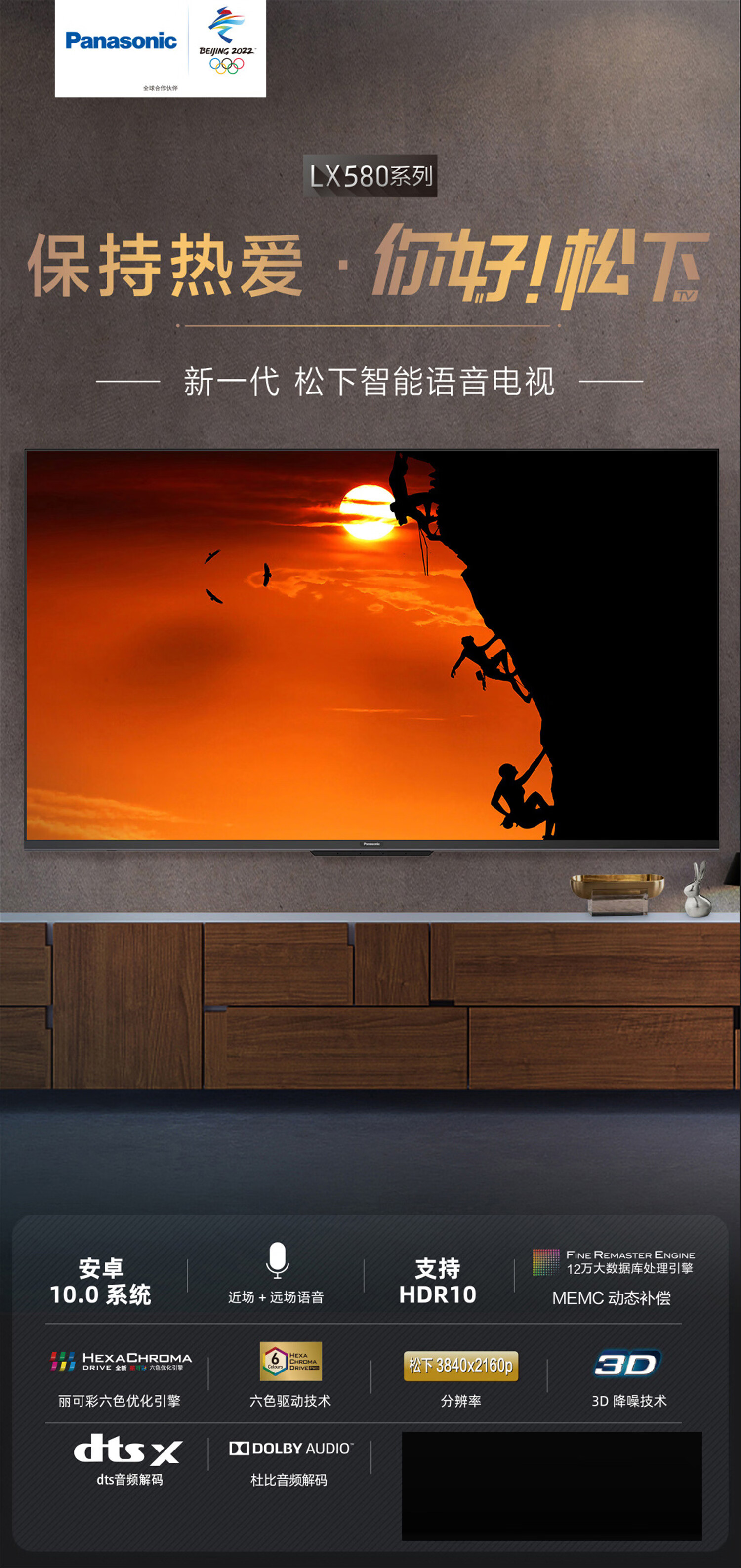 Panasonic TV LX580C 4K High Definition Full Screen AI Voice Intelligent Network Tablet Color TV Screen Projection Thin Color TV Subsidy 75-inch TH-75LX580C Free Installation Home Installation Rack Debugging Rack Included