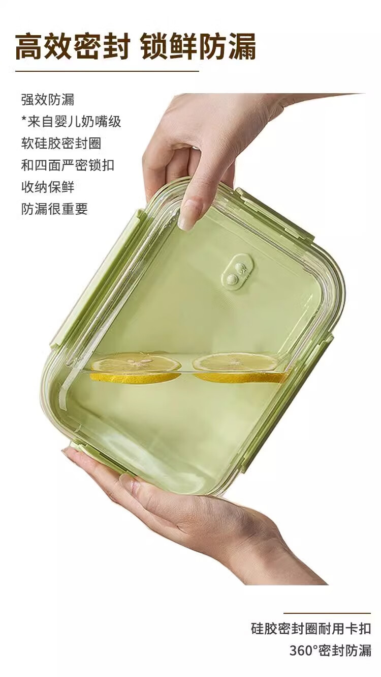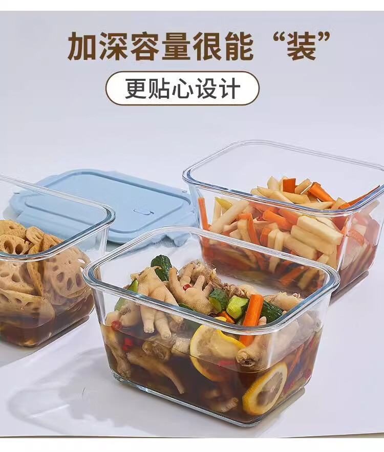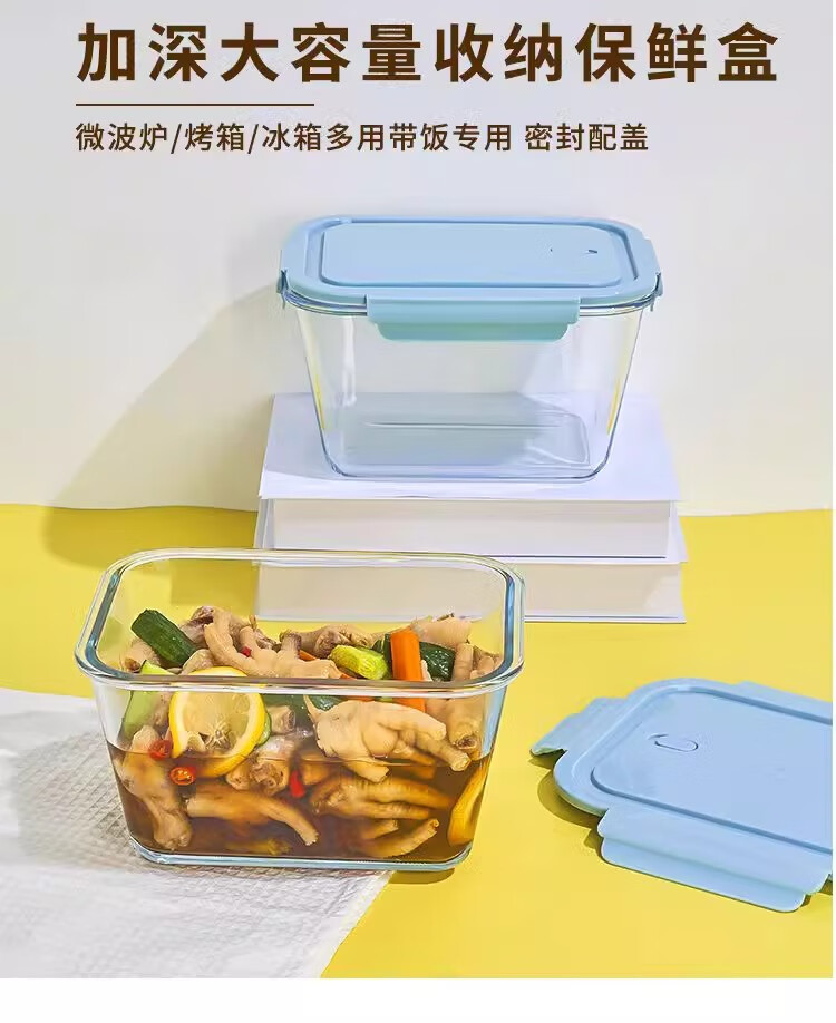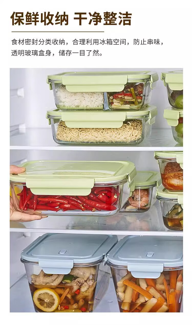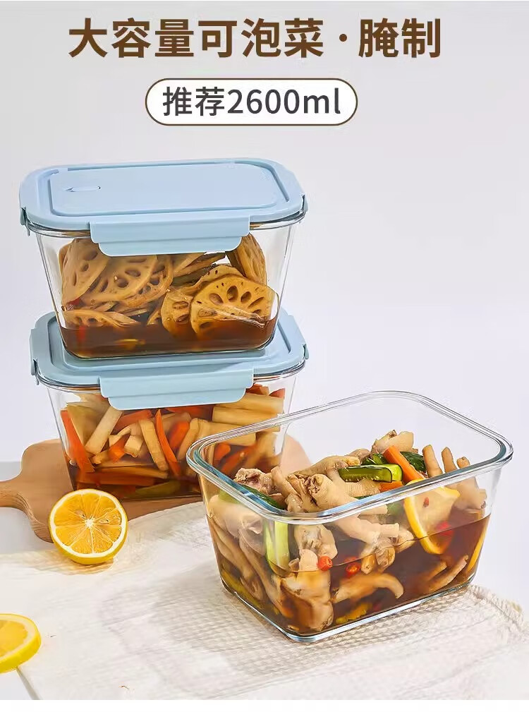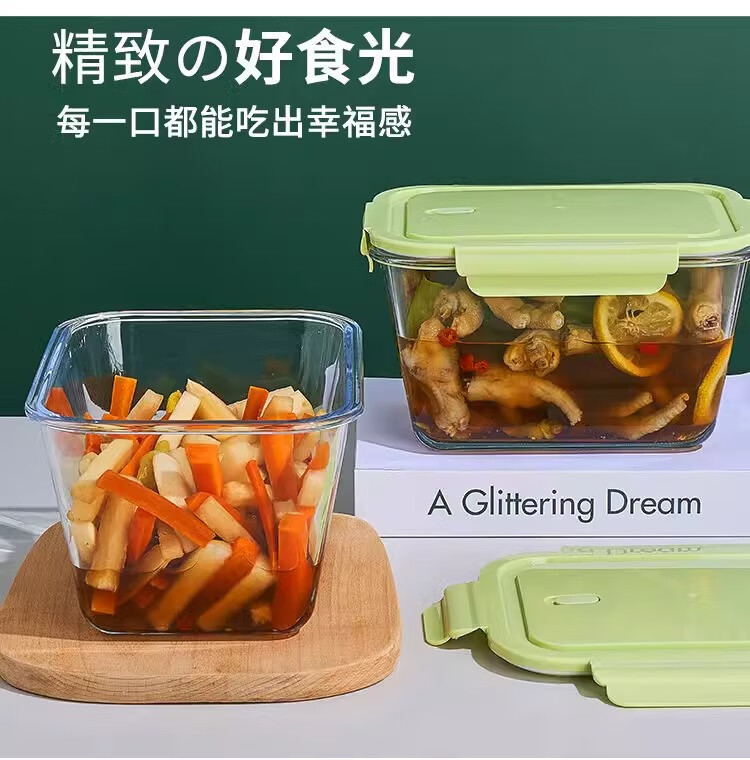 Xinmeiya high borosilicate glass crisper refrigerator lunch box pickled pickles chicken feet kimchi sealed jar taller and thicker large capacity matcha green square 1 piece 2600ml