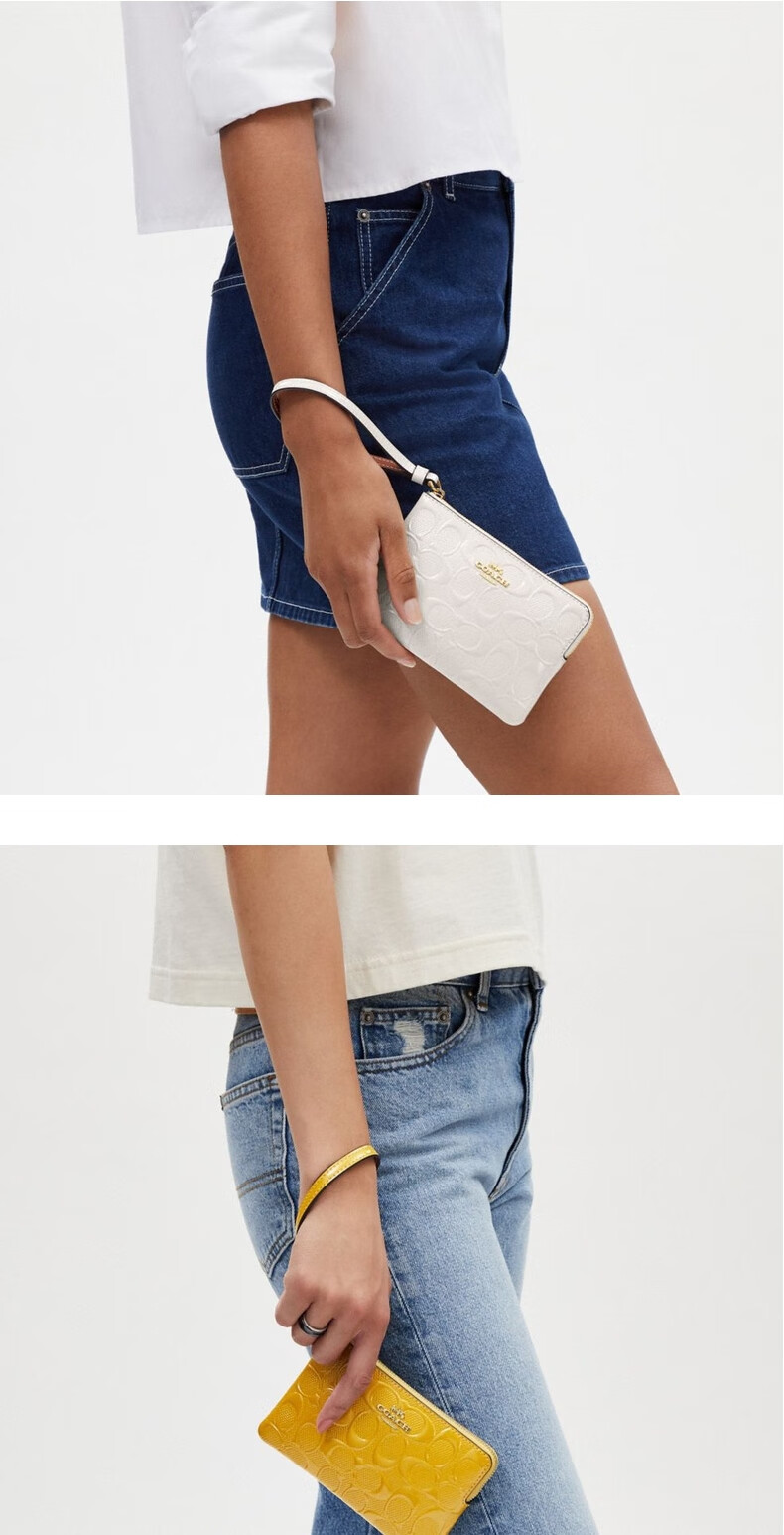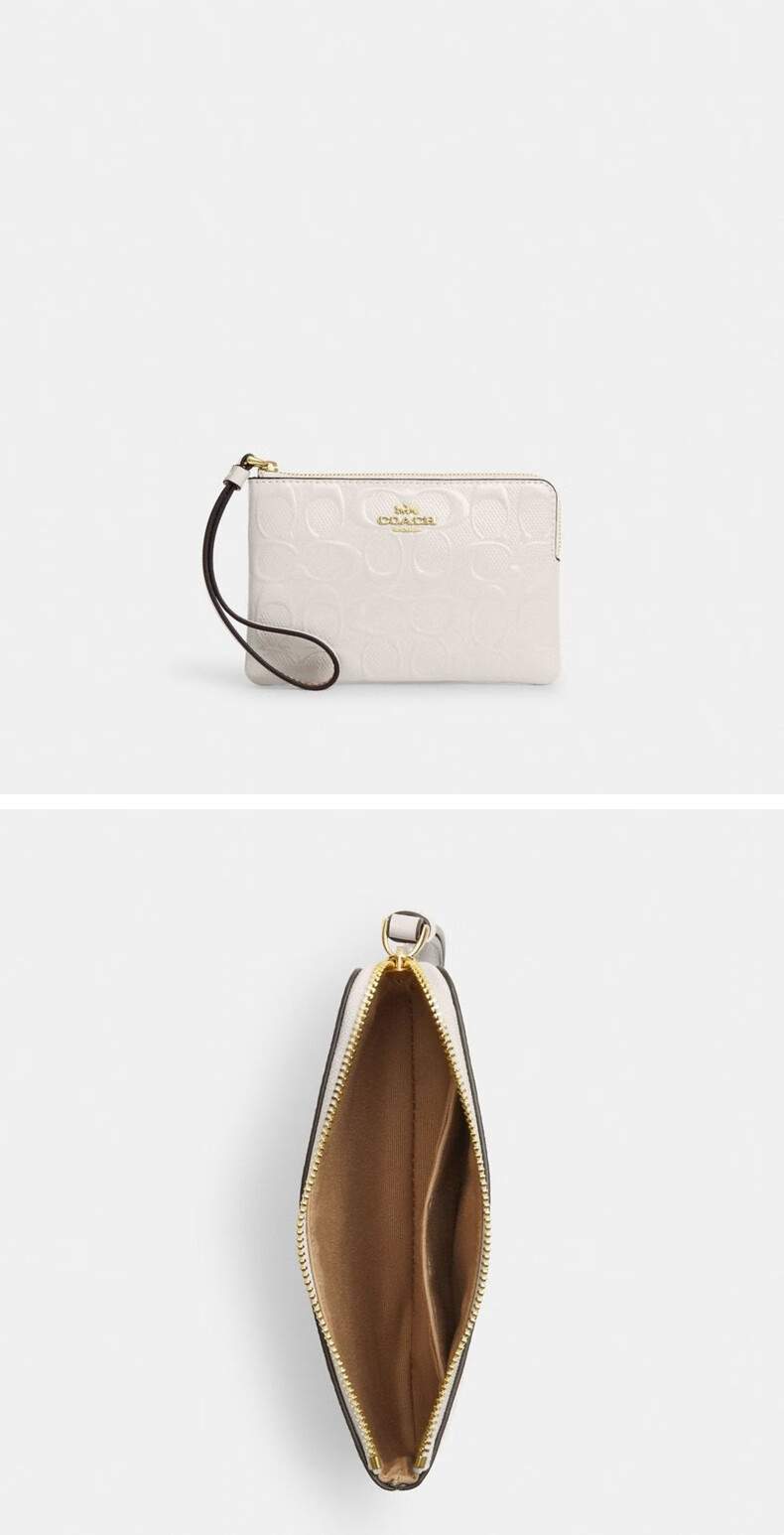 COACH new product COACH/Coach Outlet Women's Classic Logo Presbyopic Short Leather Corner Zipper Wallet Card Holder IM/Chalk White
