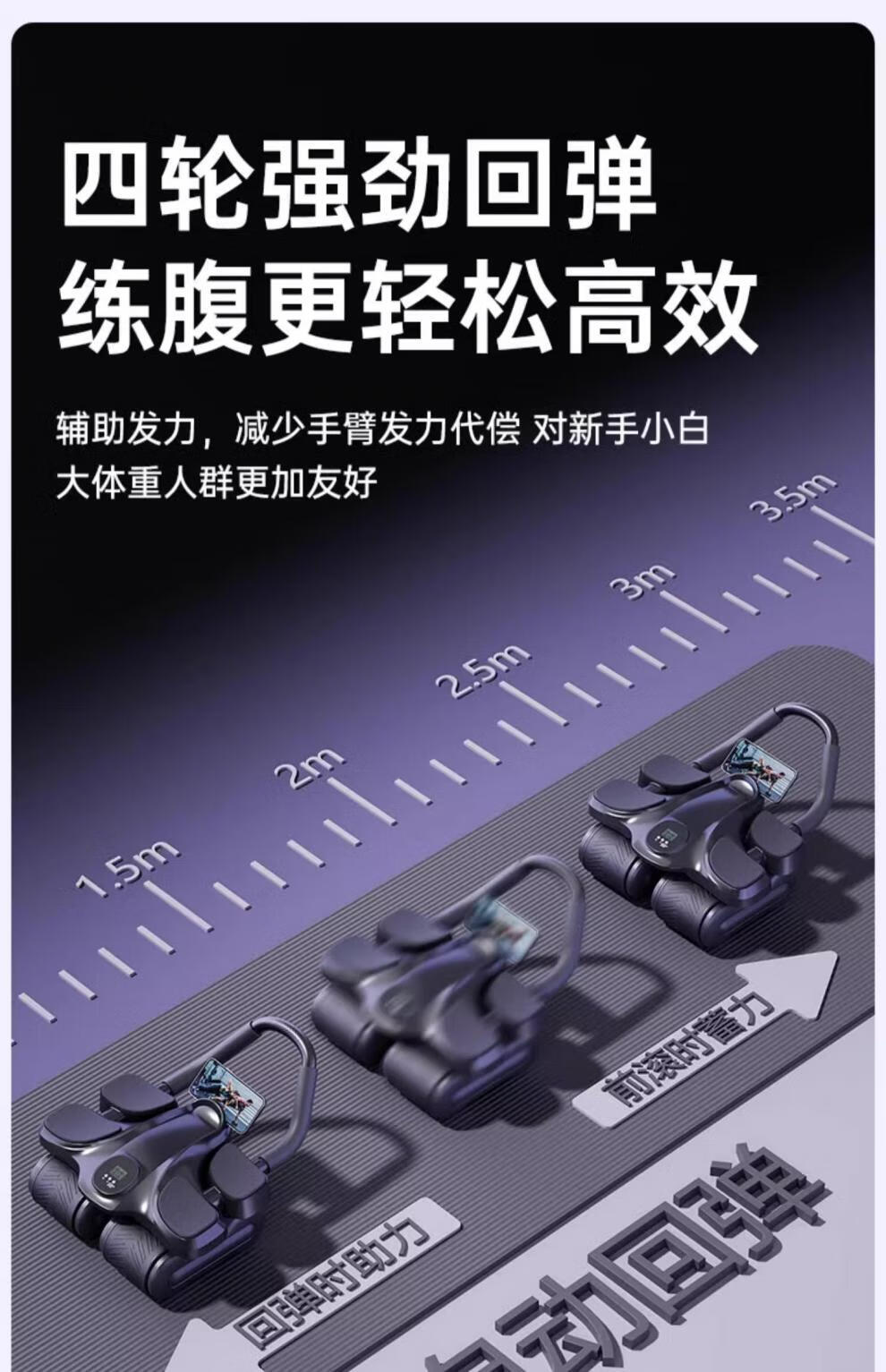 FAV MARTHA Germany four-wheel abdominal fitness wheel automatic rebound abdominal curling abdominal muscle magic tool men's fitness elbow support type limited edition - black four-wheel four elbow support smart APP