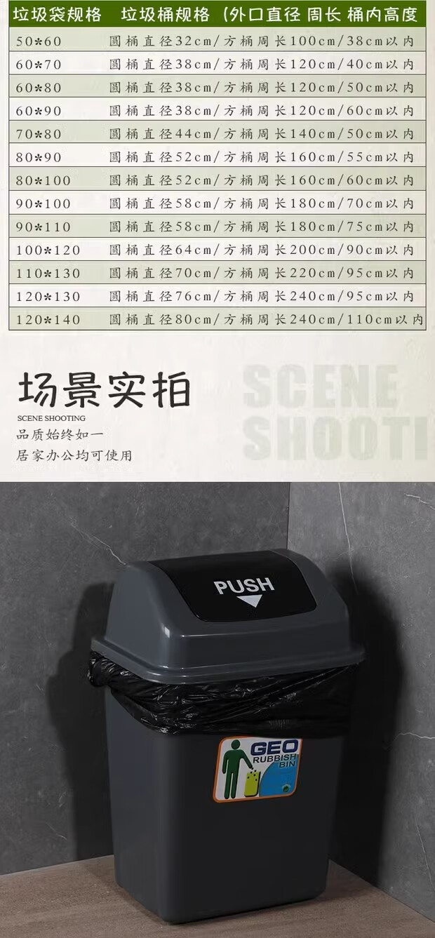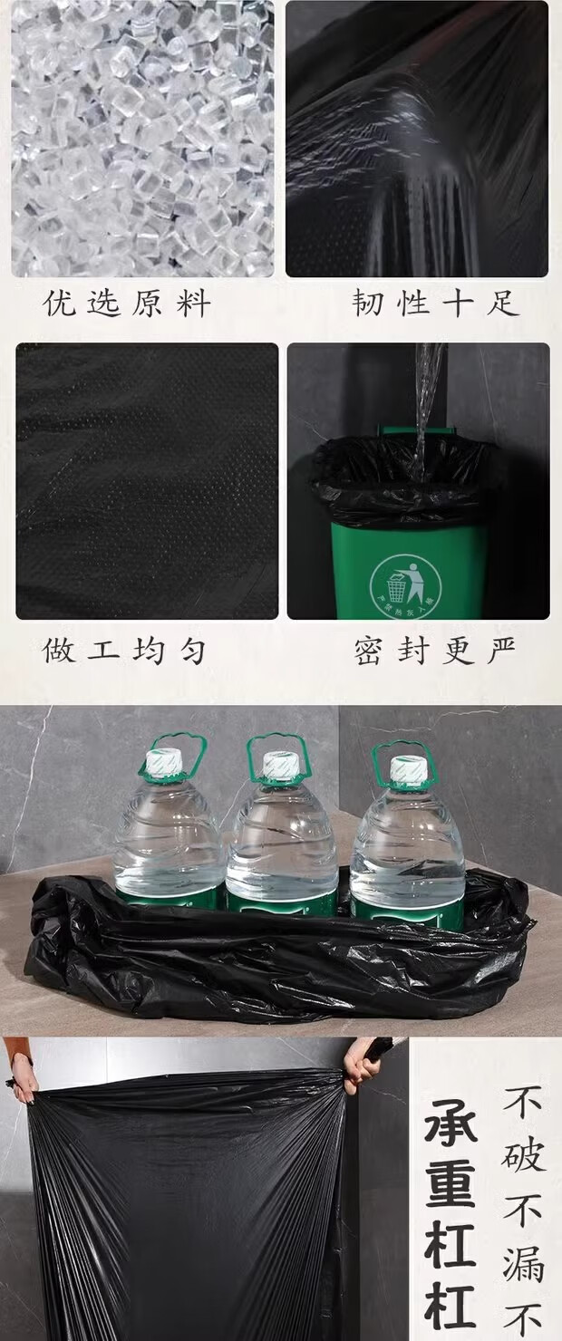 Runkai large thickened black garbage bag hotel property sanitation household 60 medium size 80 plastic 100 large commercial 50 pack/2.8 silk/90*110