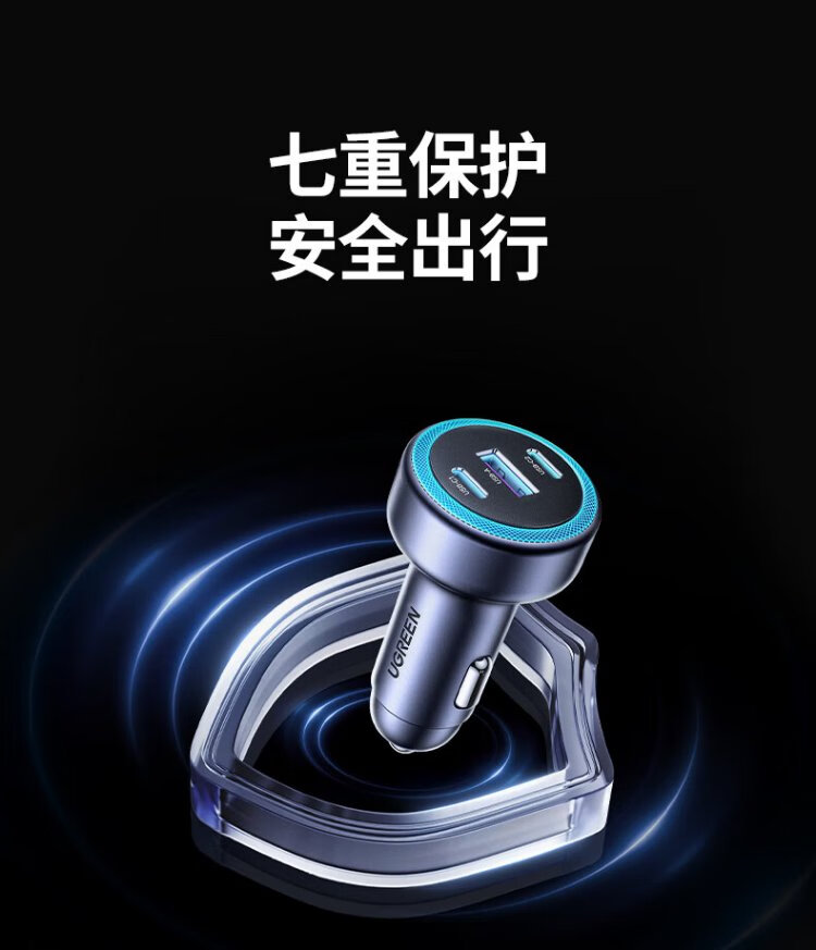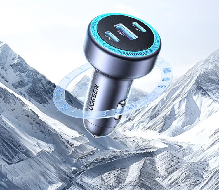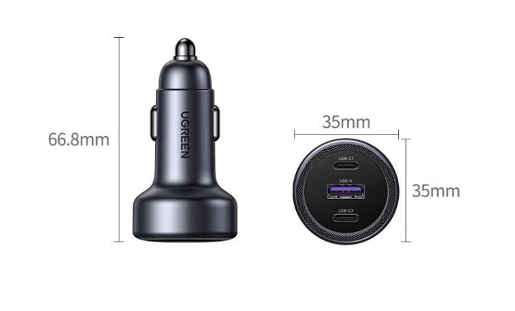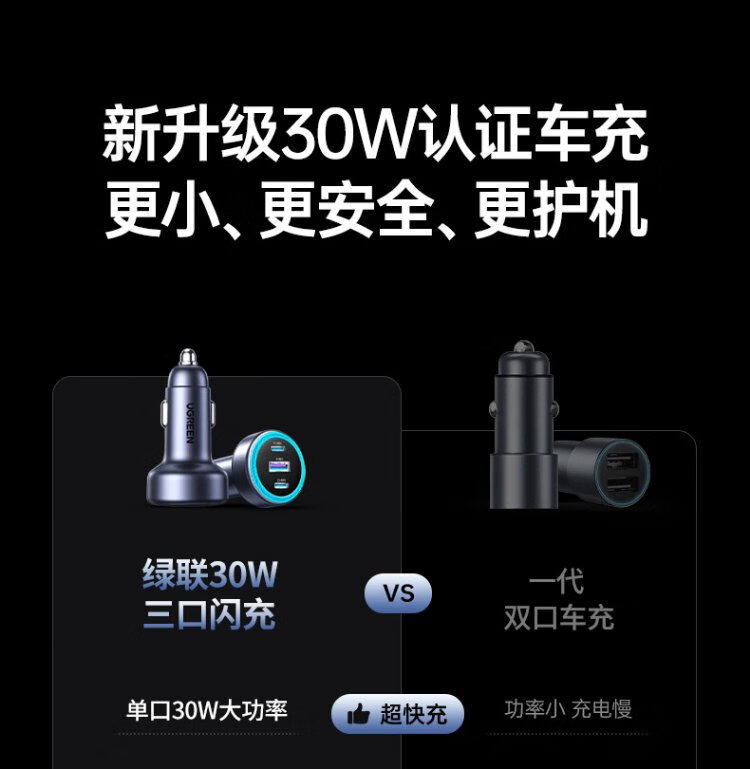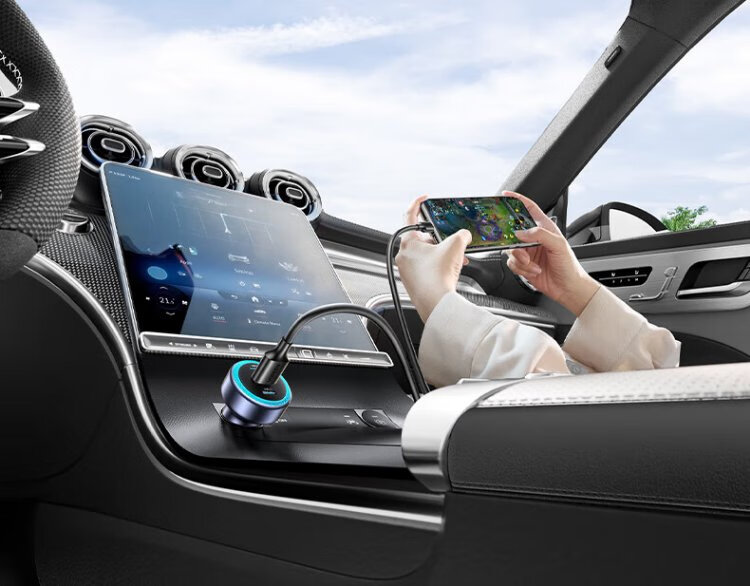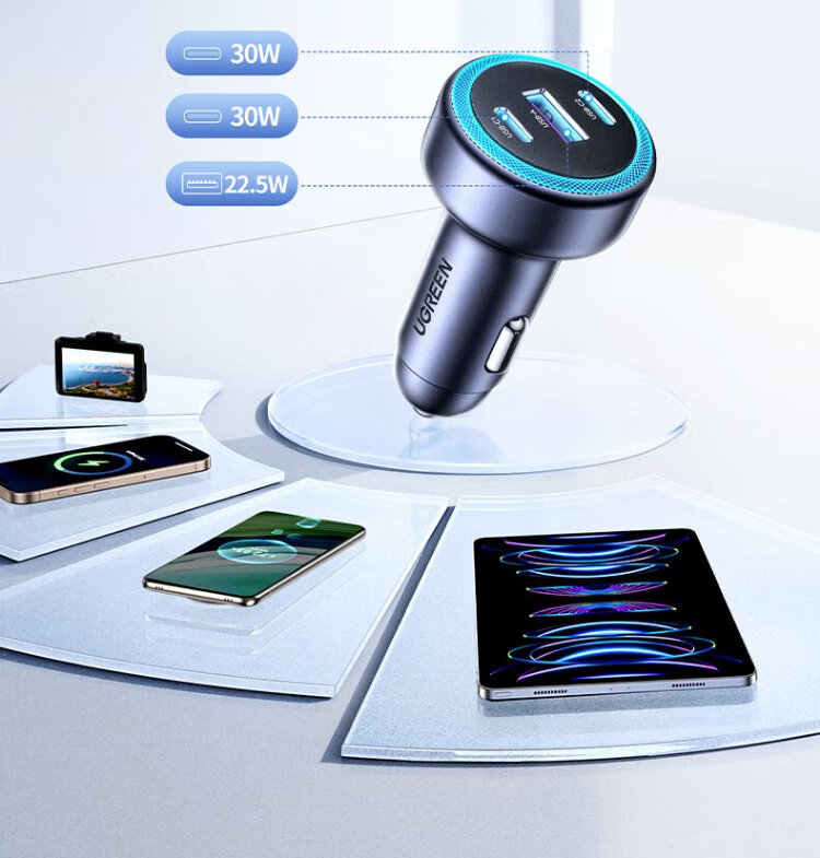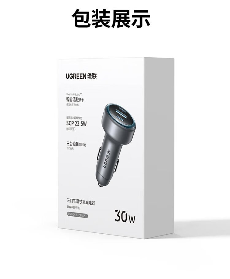 Greenlink car charger cigarette lighter PD30W fast charging head super fast charging one-to-three converter Type-C*2+USB three-port flash charging
