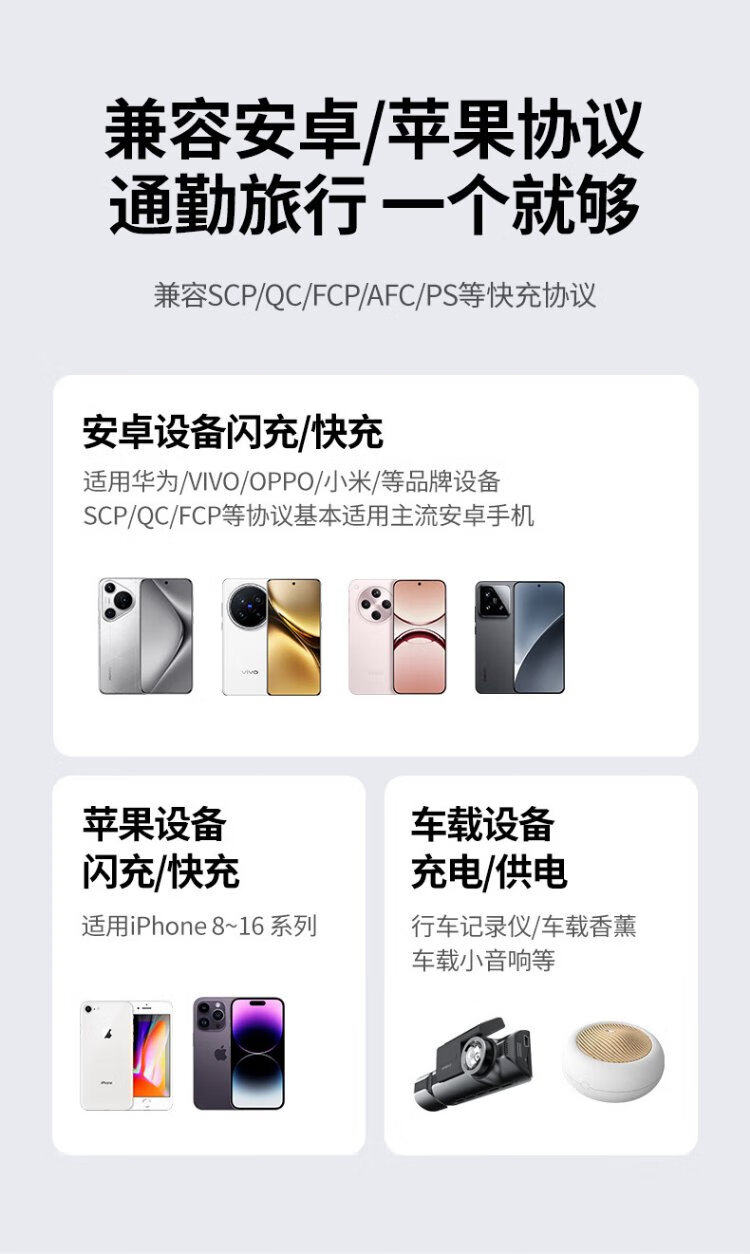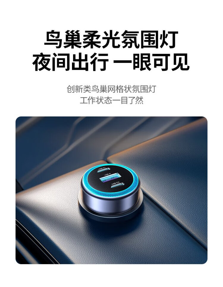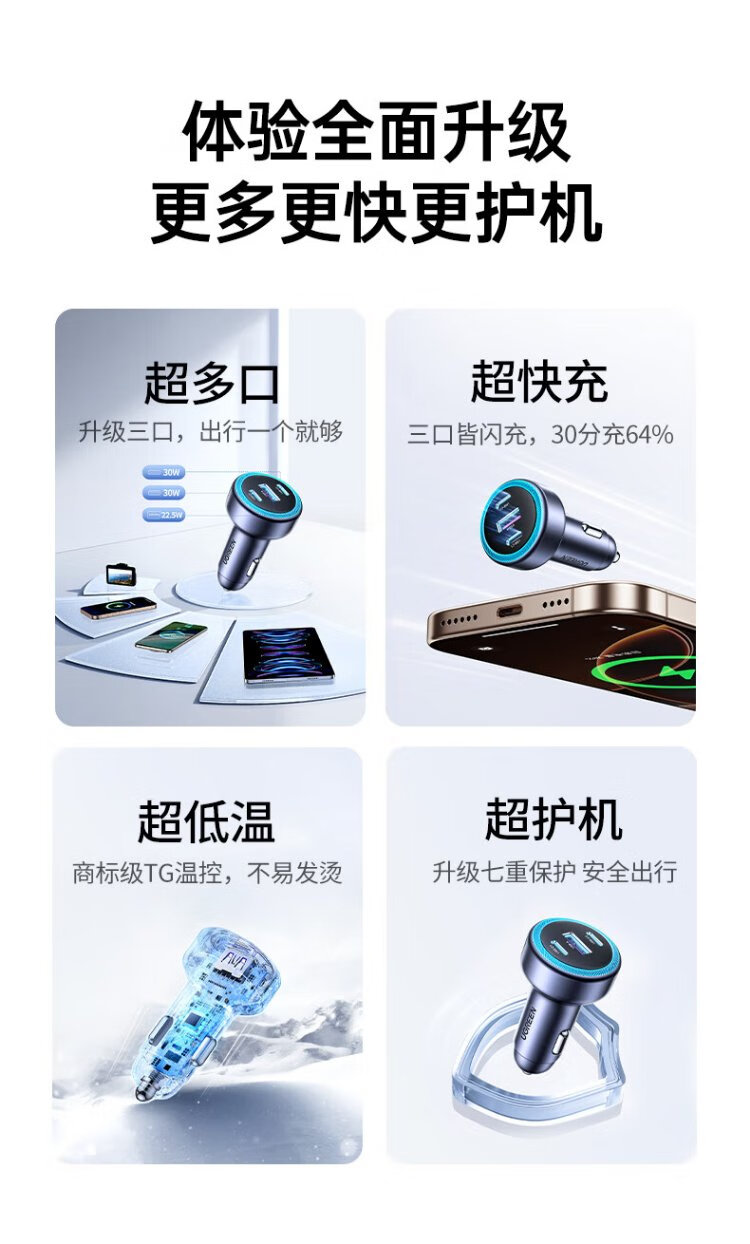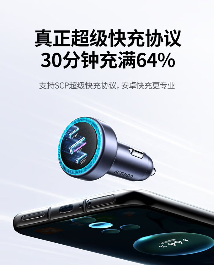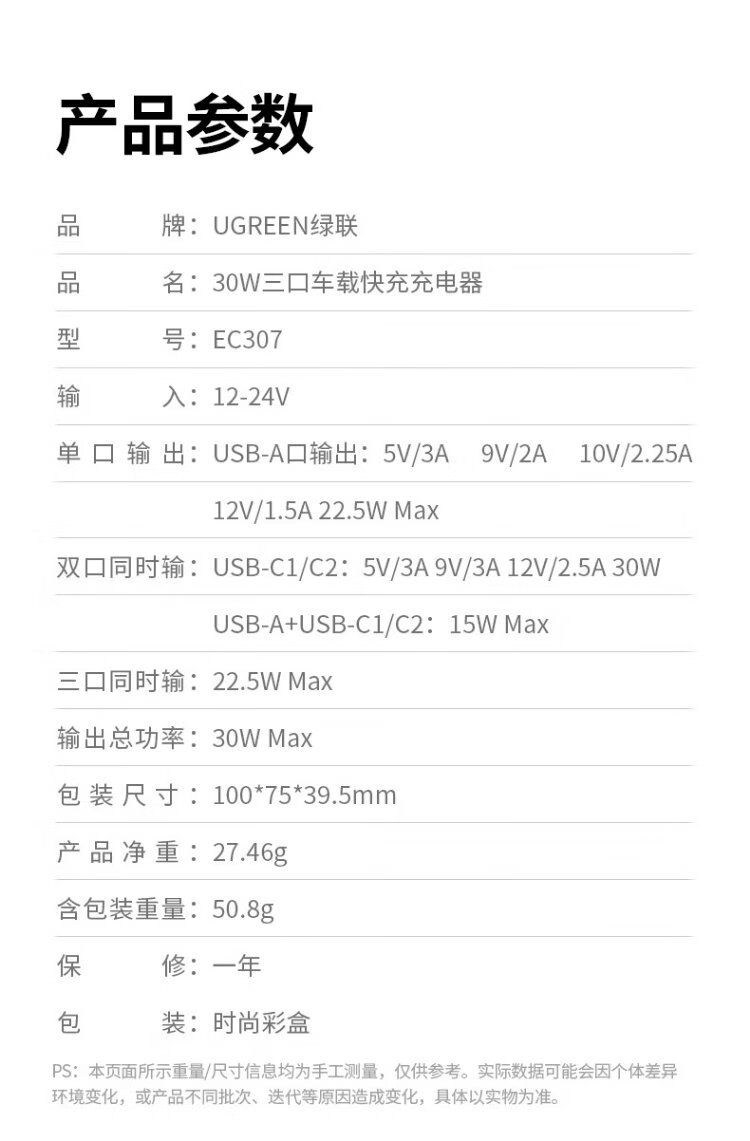 Greenlink car charger cigarette lighter PD30W fast charging head super fast charging one-to-three converter Type-C*2+USB three-port flash charging