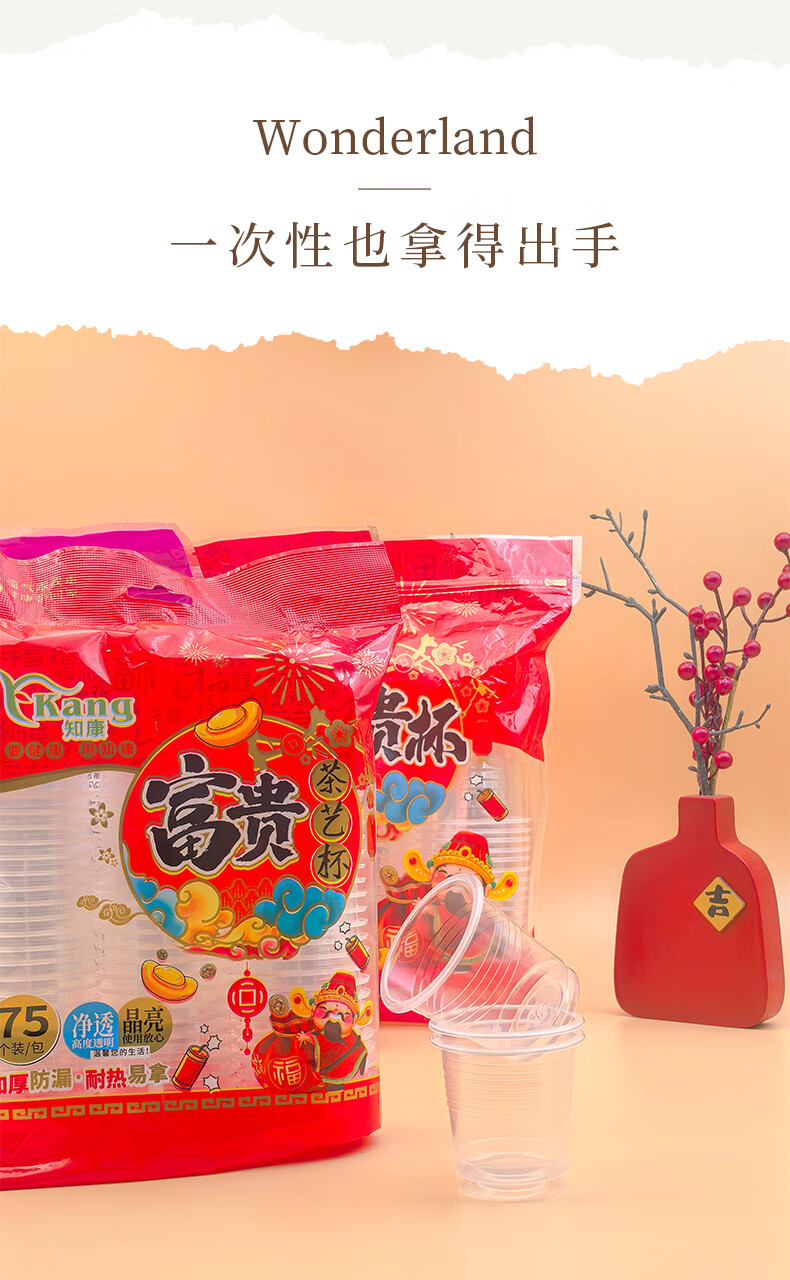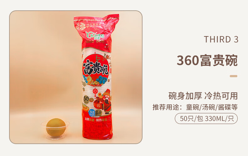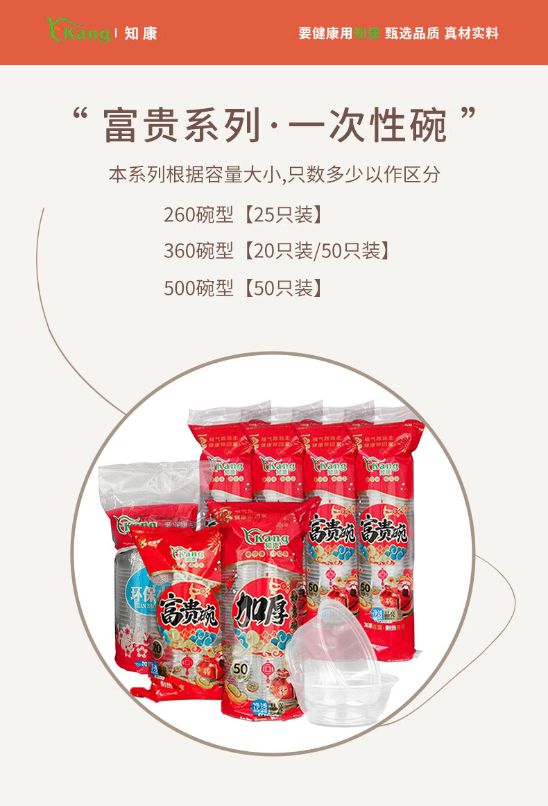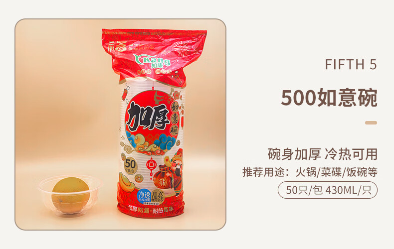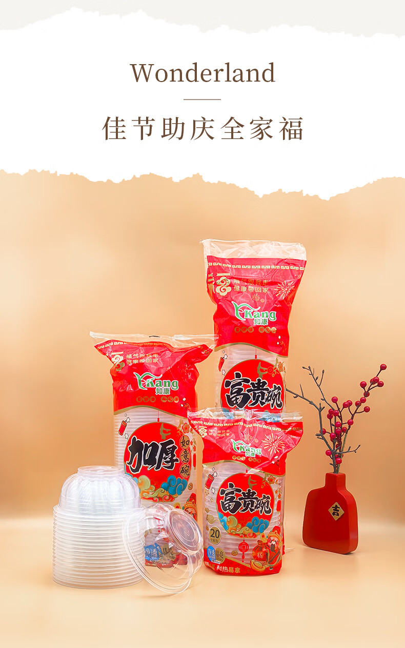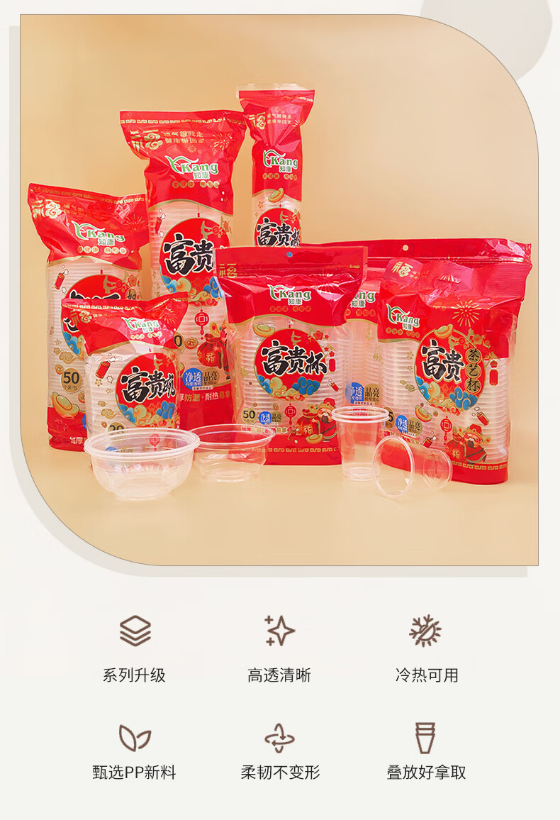 Zhikang Kang Disposable Bowl Cup Plastic Bowl Happy Wealth Series Disposable Tableware Set Thickened Dinner Plate Household <360 Type> Happy Wealth Bowl 50 pieces 2 packs