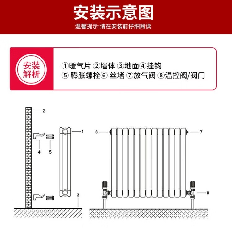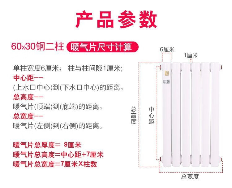 An Junsheng radiator household water heating radiator wall-mounted central heating gas wall-mounted furnace steel radiator heating center distance 600-6 columns a set of thickened (2.0 thick)