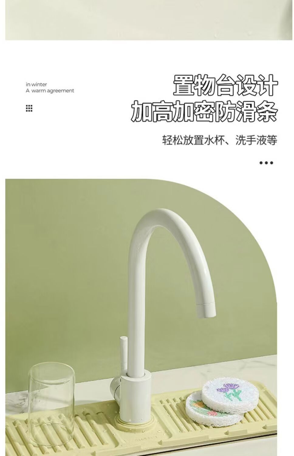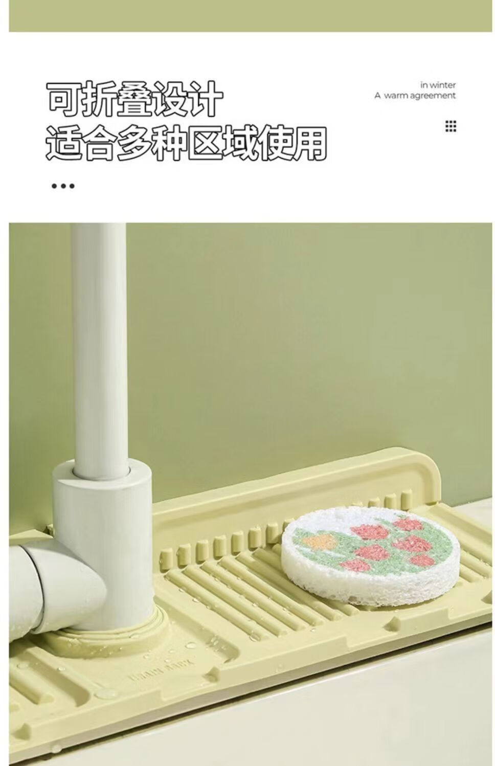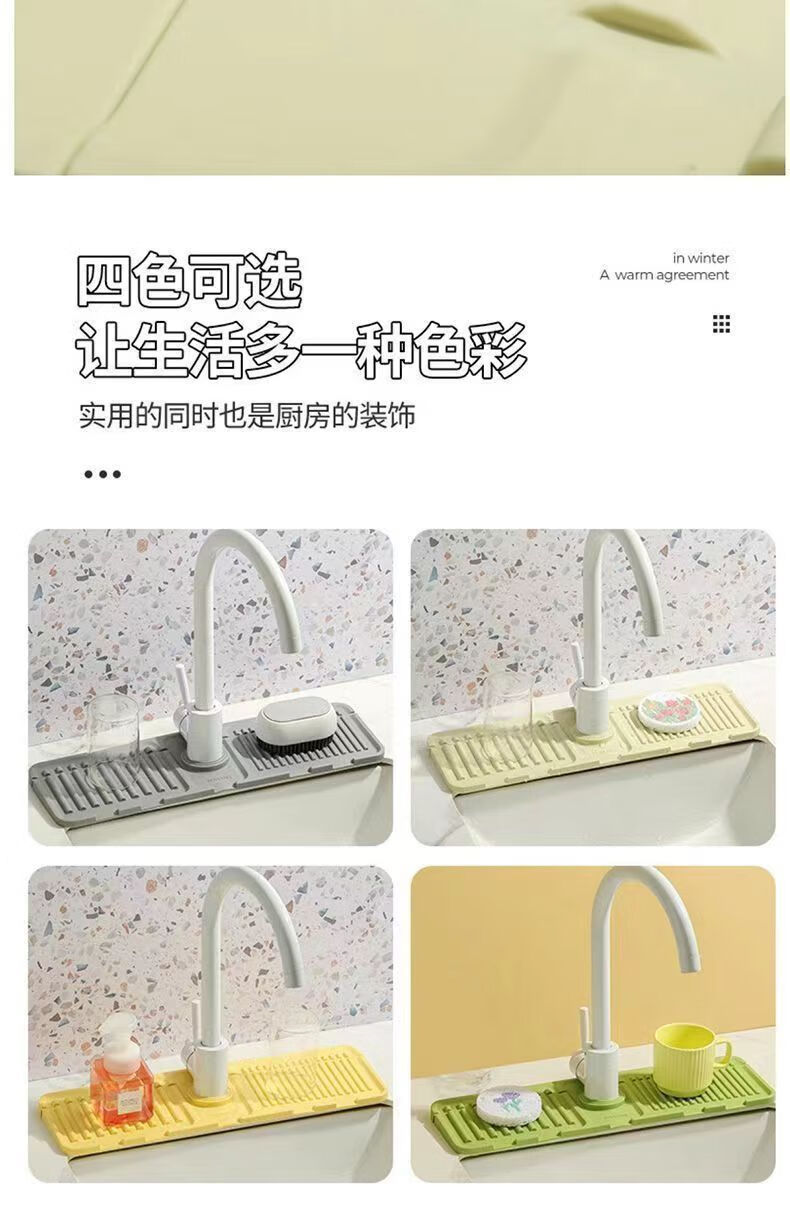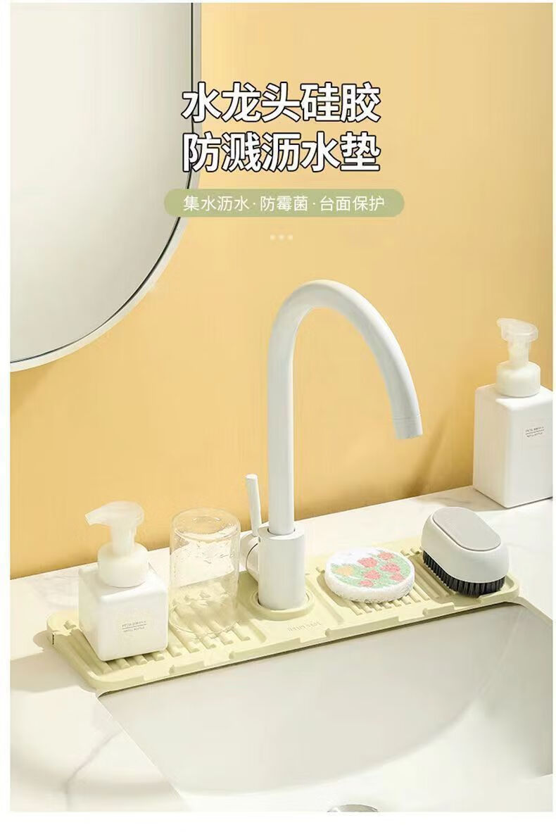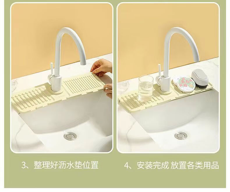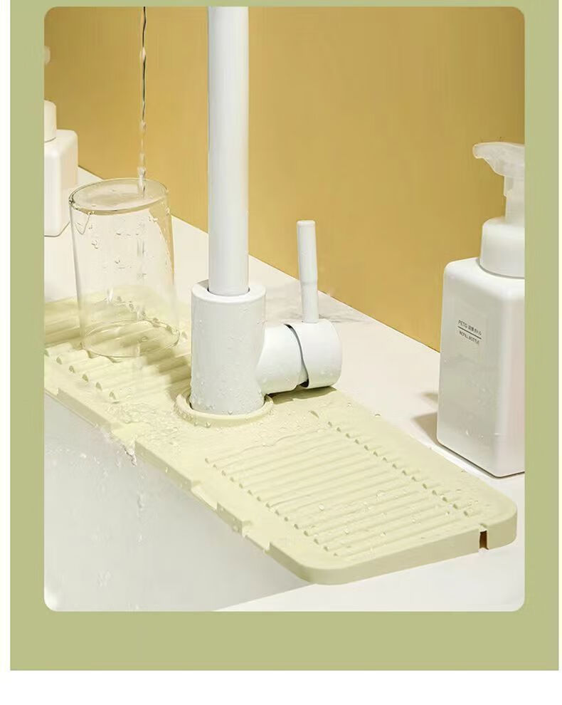 JD Logistics Kitchen Sink Drain Rack Wash Basin Storage Rack Pool Countertop Faucet Sponge Drain Pad Grass Green 1 pc