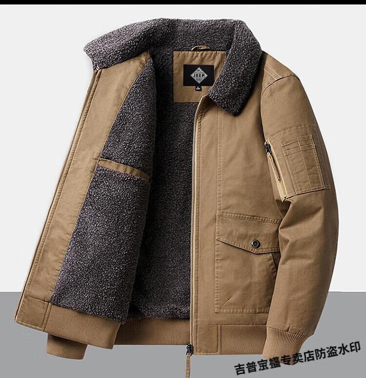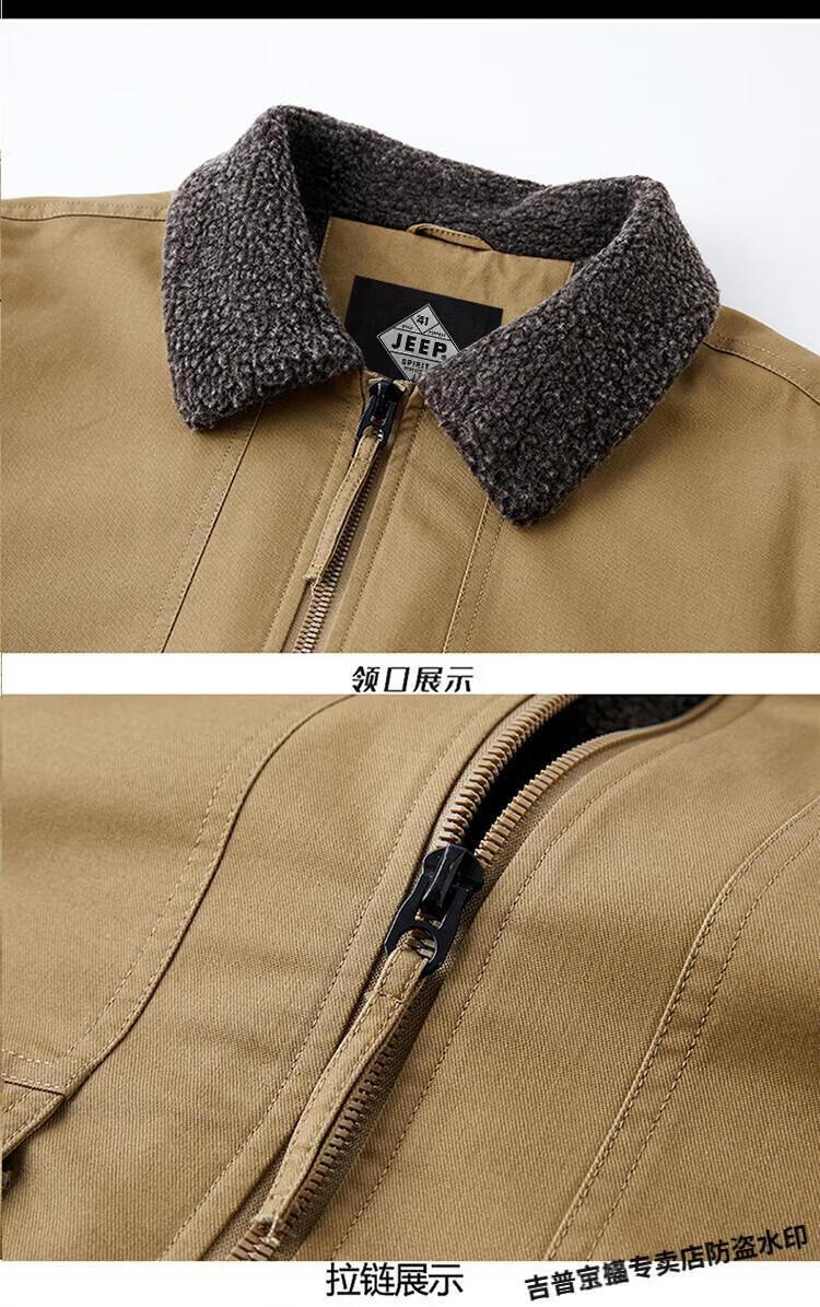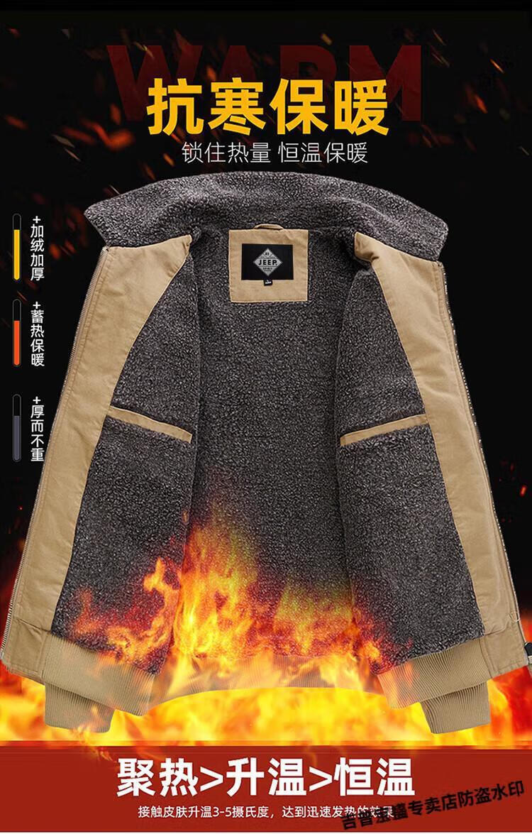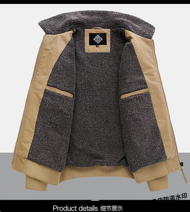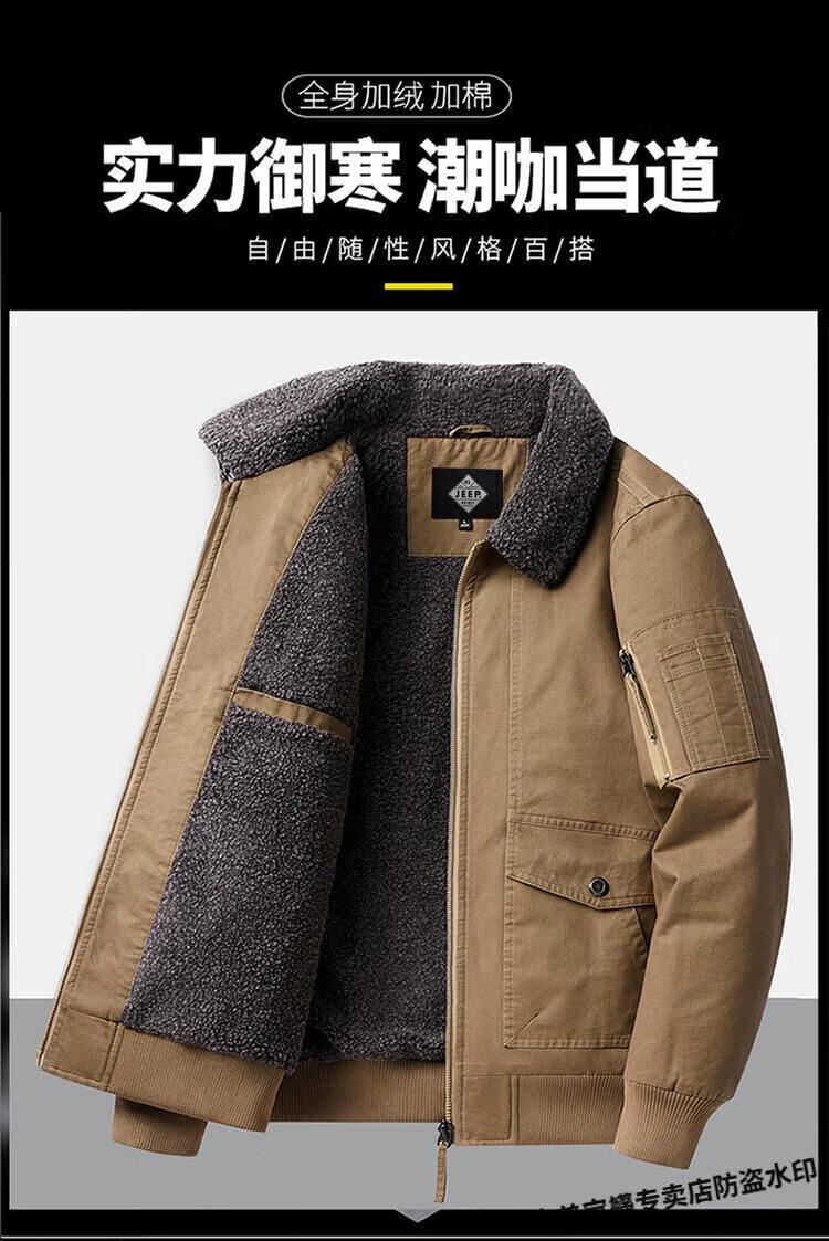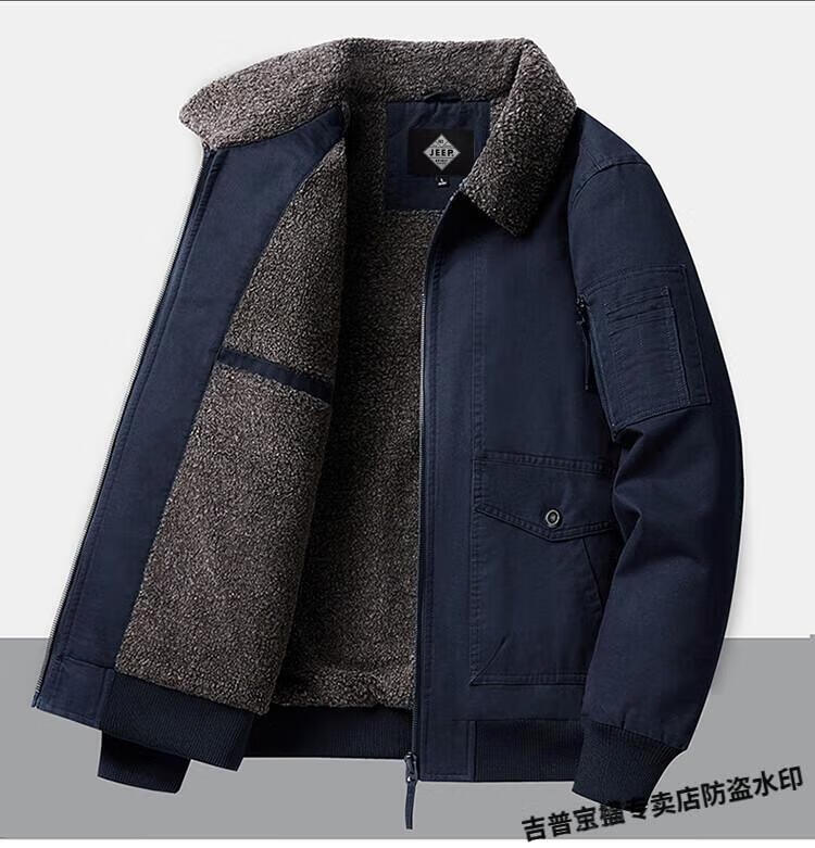 JEEP SPIRIT Jeep winter cotton coat men's pure cotton lapel plus velvet thickened warm workwear cotton jacket lambswool jacket dark blue XL