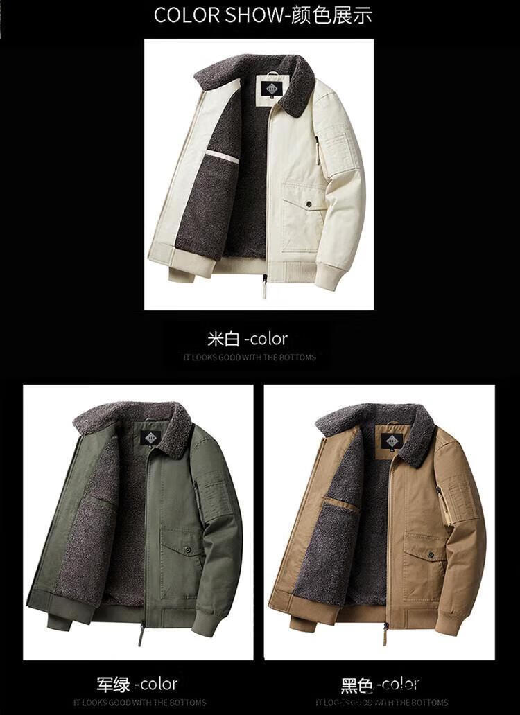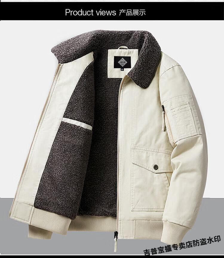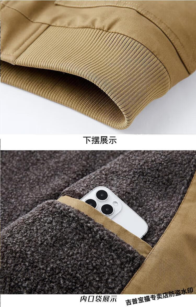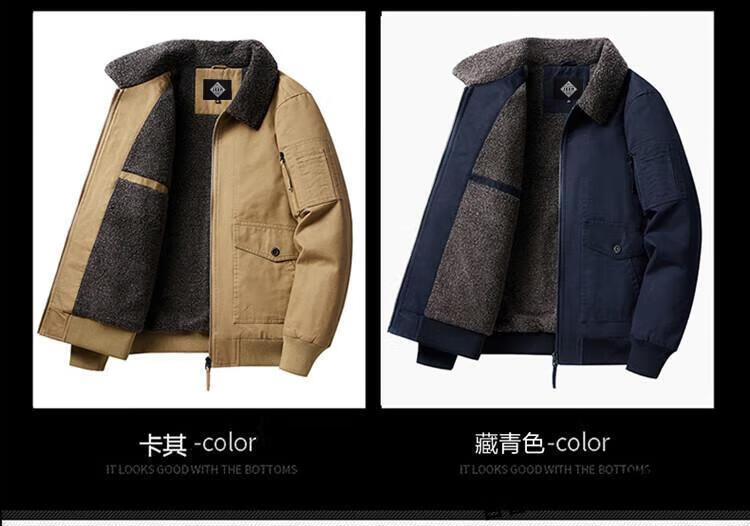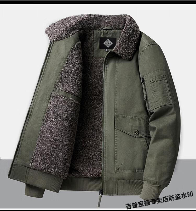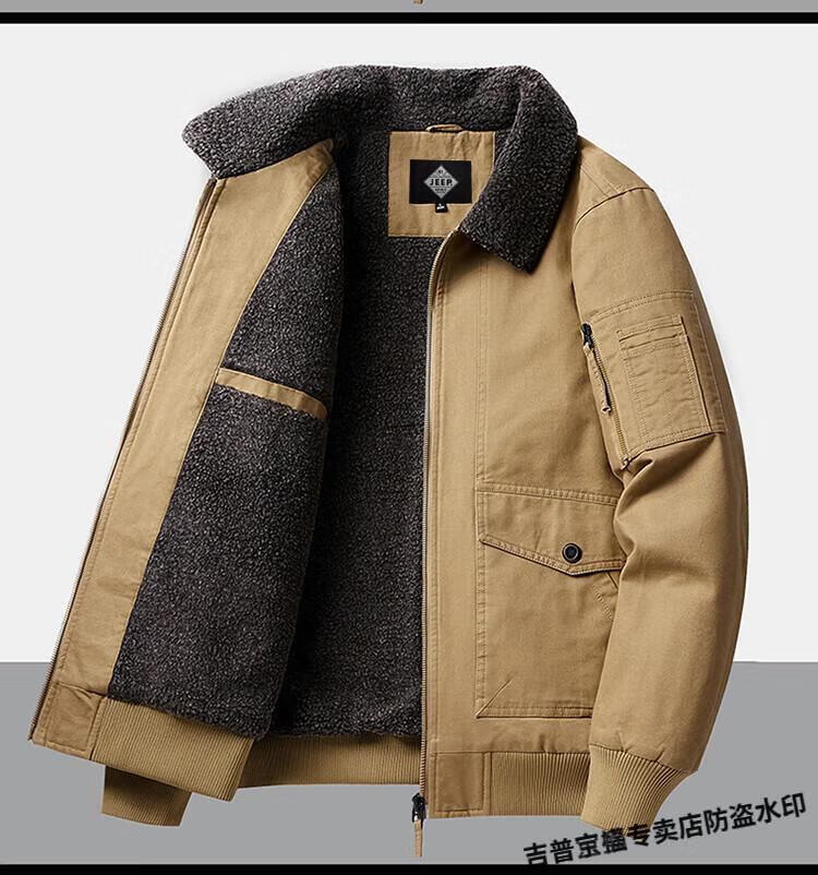 JEEP SPIRIT Jeep winter cotton coat men's pure cotton lapel plus velvet thickened warm workwear cotton jacket lambswool jacket dark blue XL