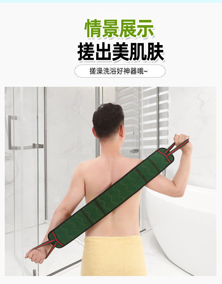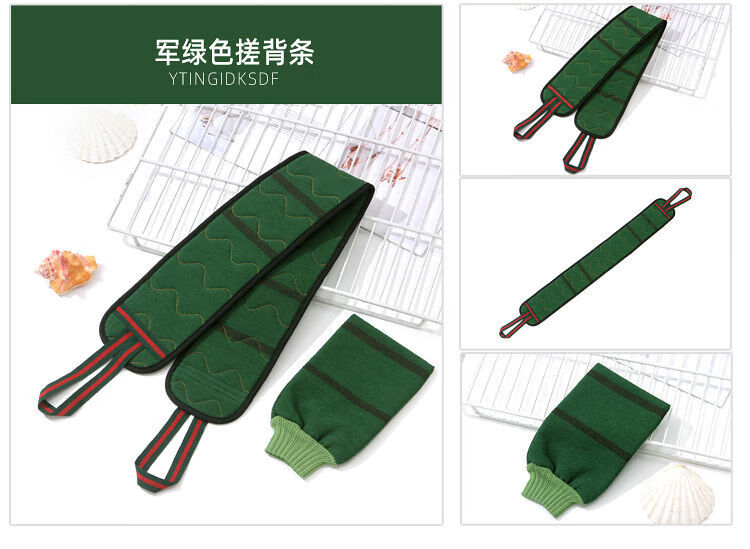 Extra coarse sling sling long bath towel double-sided adult back rub magic bath towel strong mud wiping sling extra thick 550D-pull sling + gloves dark green