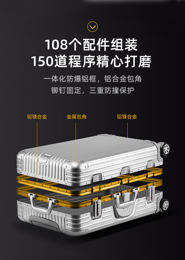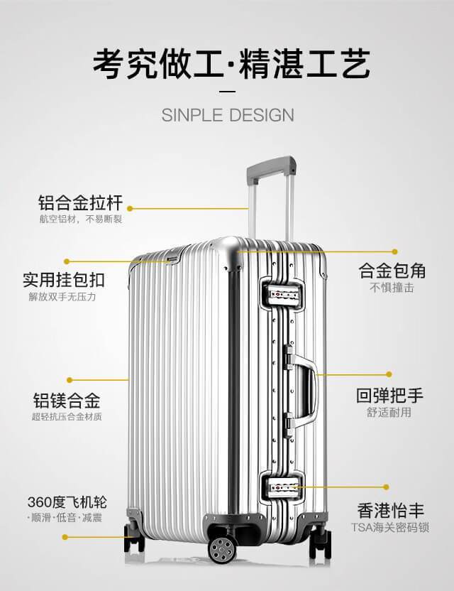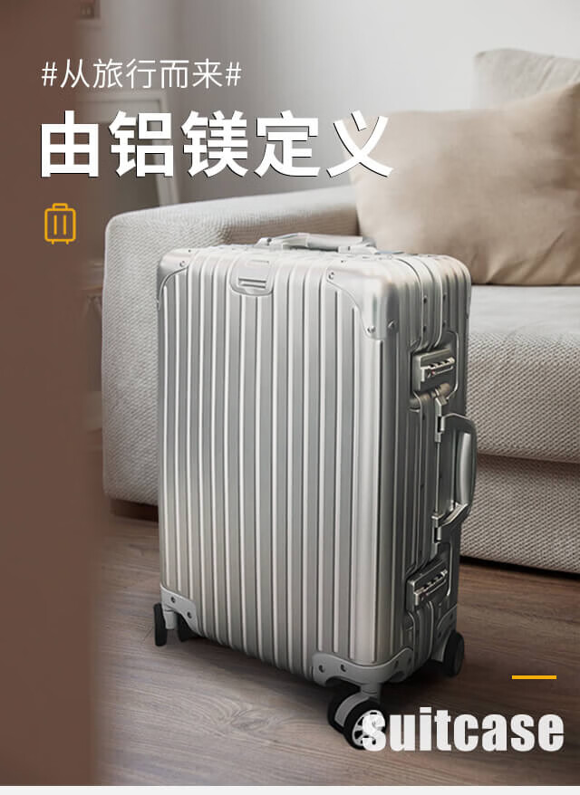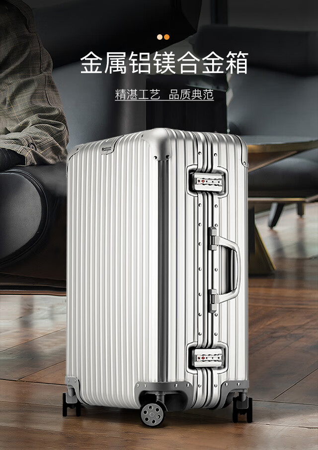EAZZ all-aluminum magnesium alloy aluminum-magnesium trolley case aluminum frame men's and women's suitcase universal wheel boarding case travel suitcase all-aluminum magnesium alloy silver 22 inches for short and medium distance travel