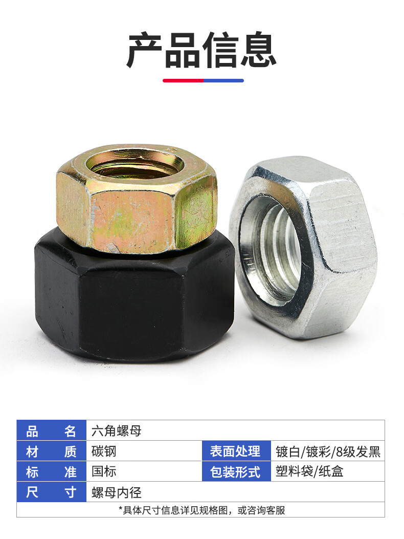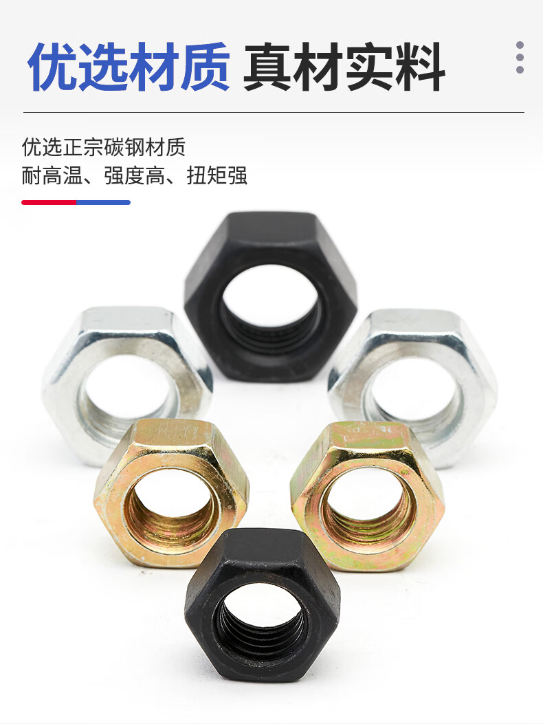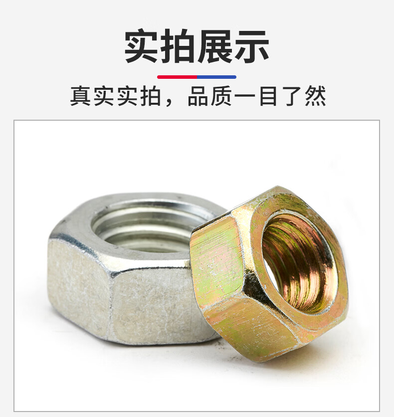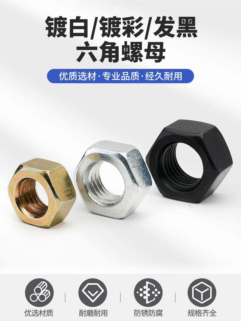 Jinggong carbon steel hexagonal nut hexagonal nut outer hexagonal nut iron galvanized hexagonal nut m3m4m5m6m8 M16 nickel plated (20 pcs)