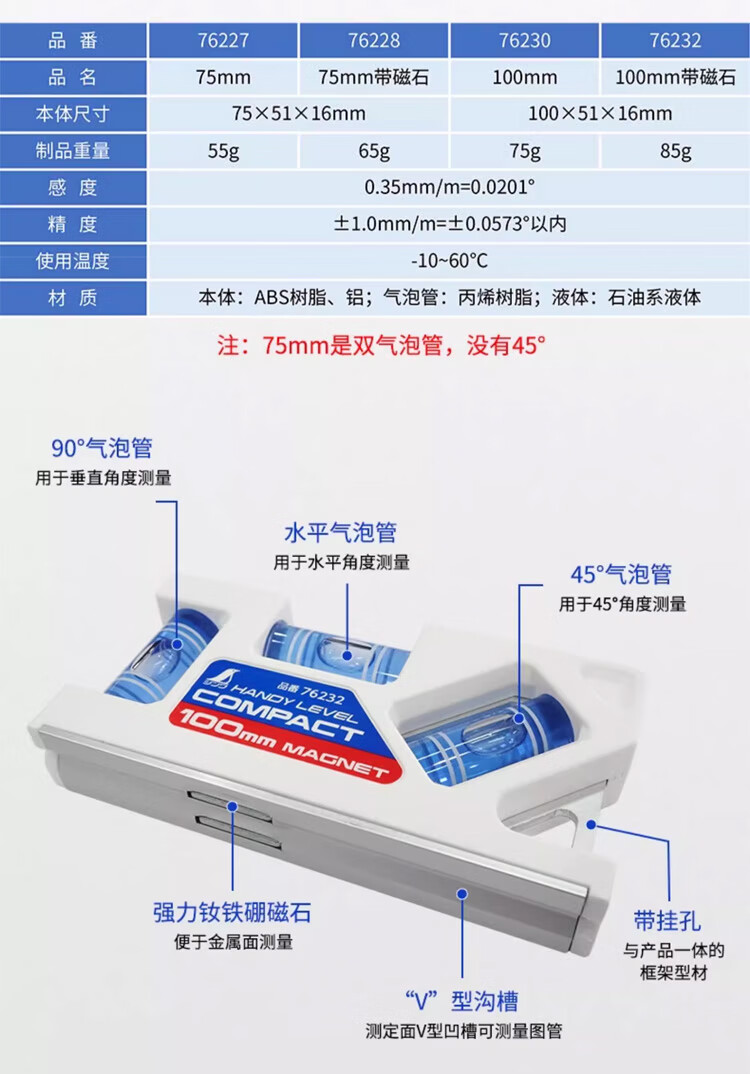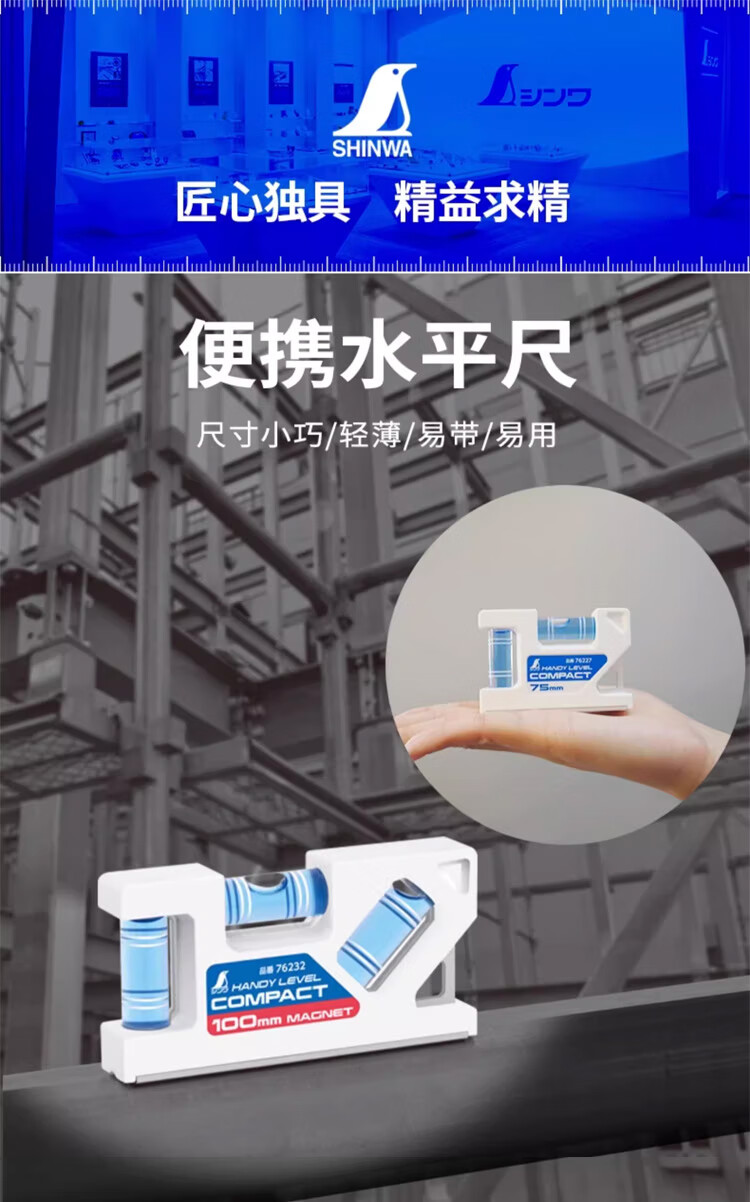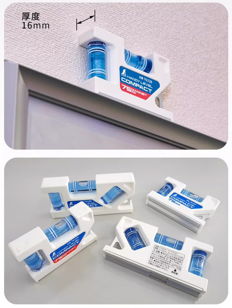 SHINWA friendly portable level for small magnetic/non-magnetic workplaces with high-precision ultra-thin three-tube measurement DIY 76228 level 75mm with magnet
